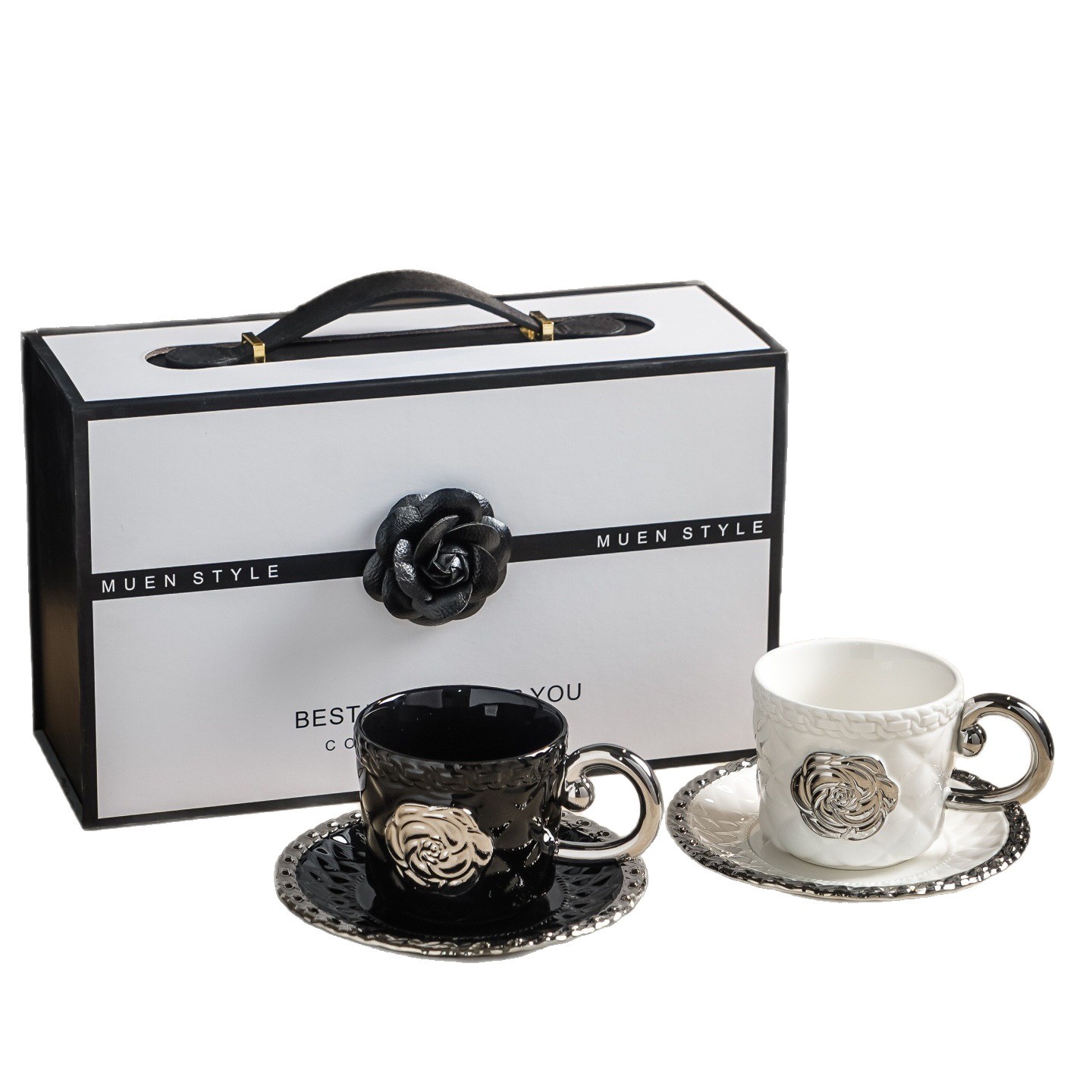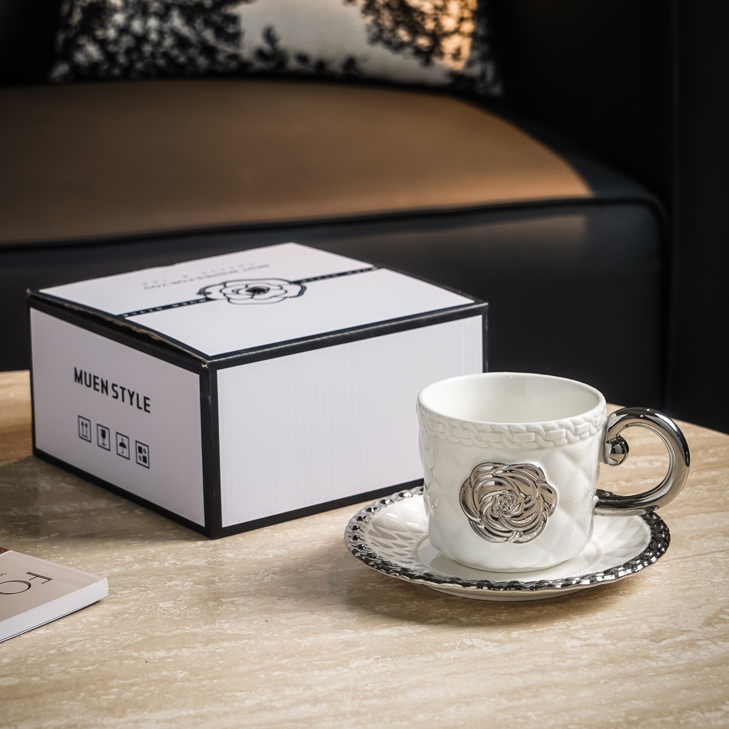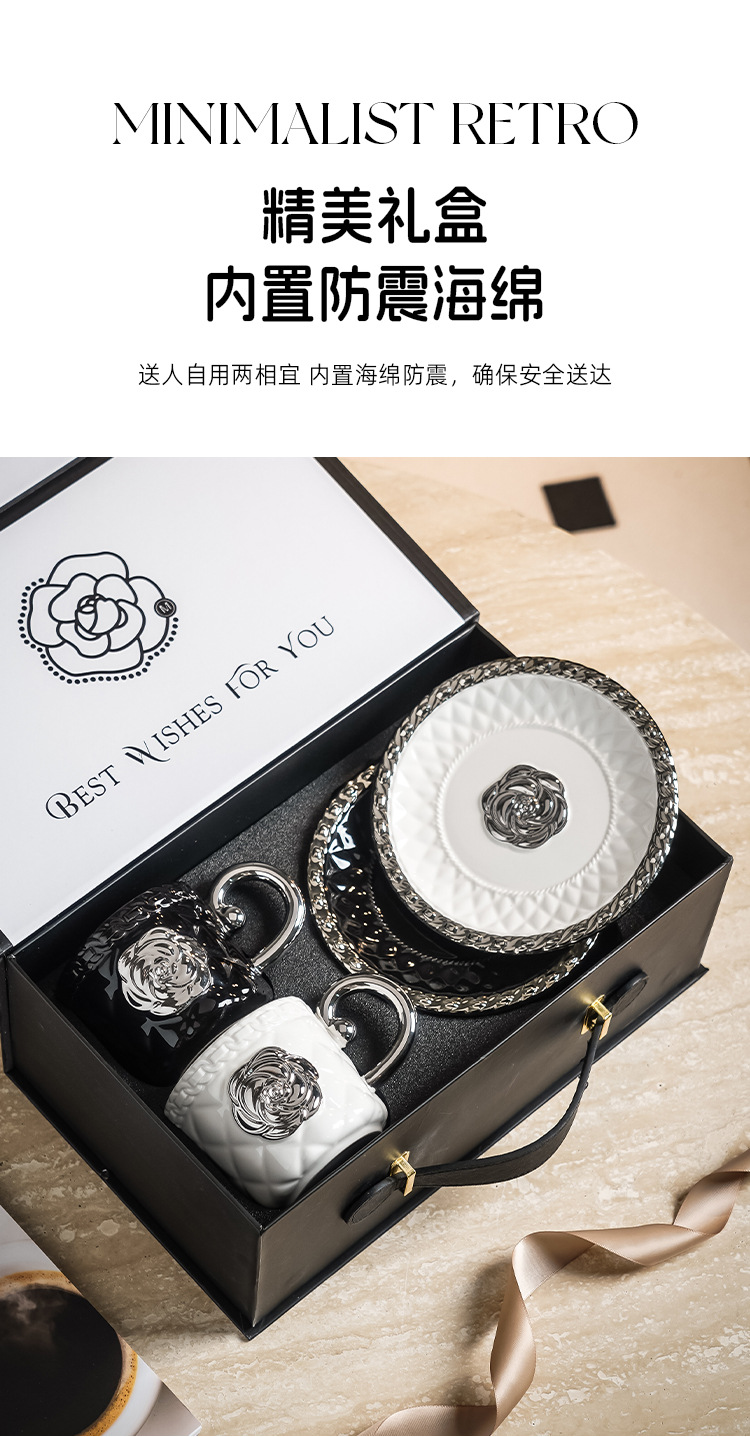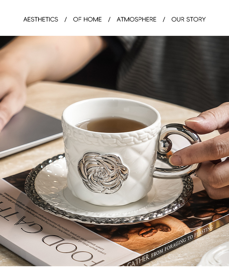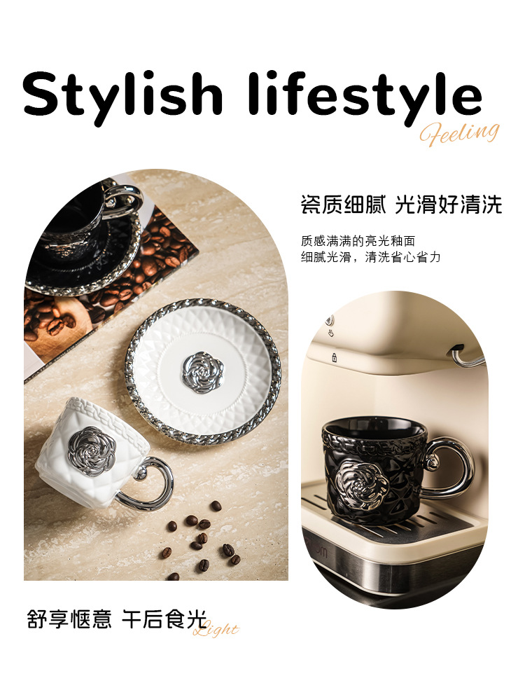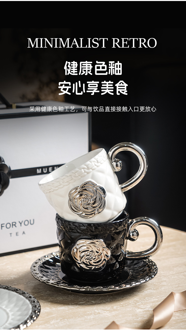 家用陶瓷咖啡杯碟套装浮雕轻奢高级感法式欧式咖啡杯伴手礼批发