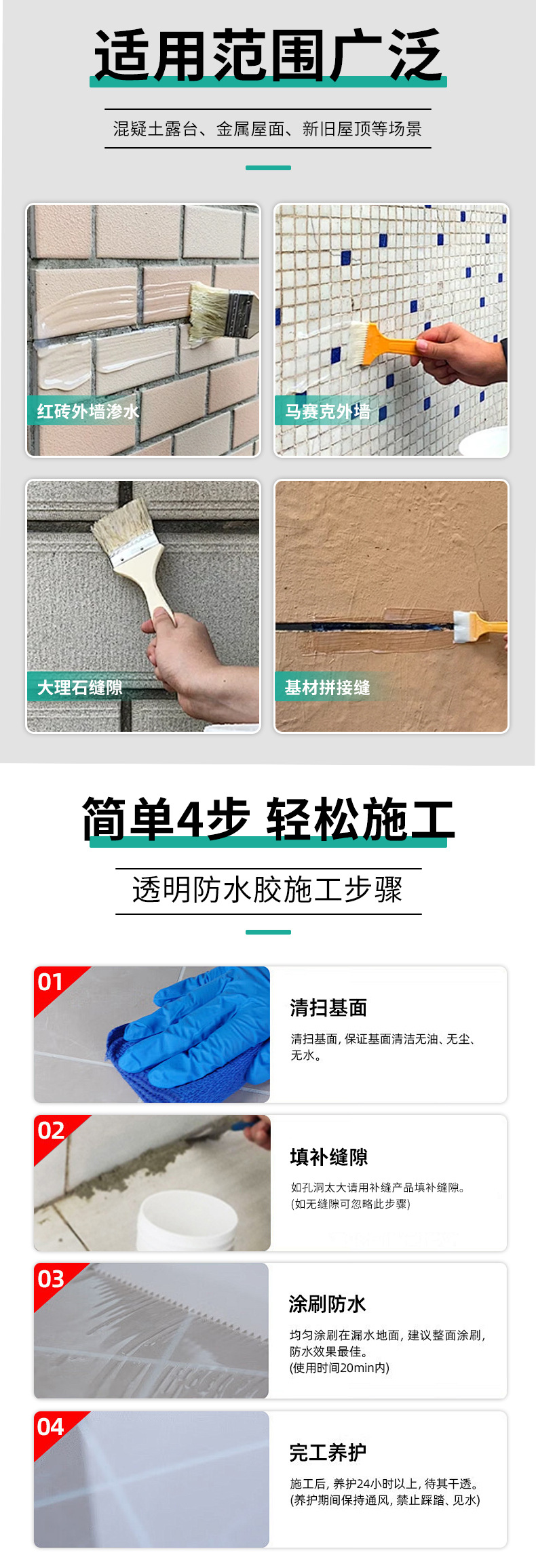 康曼丝豪华型透明防水胶内外墙屋顶卫生间窗台阳台免砸砖防水材料
