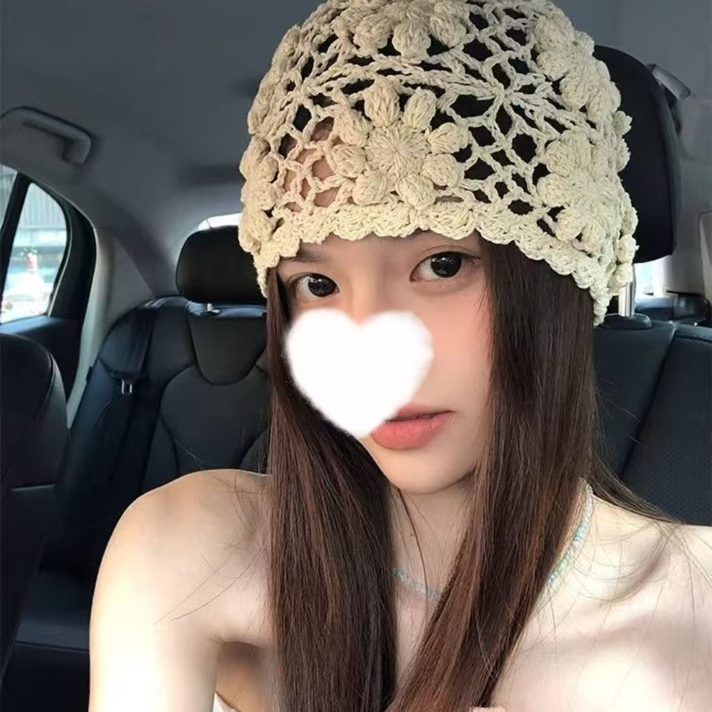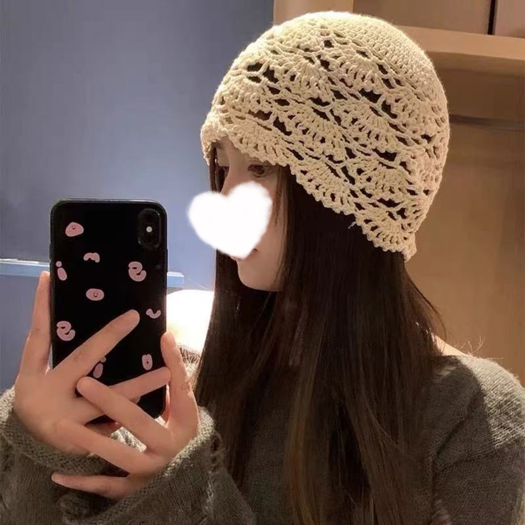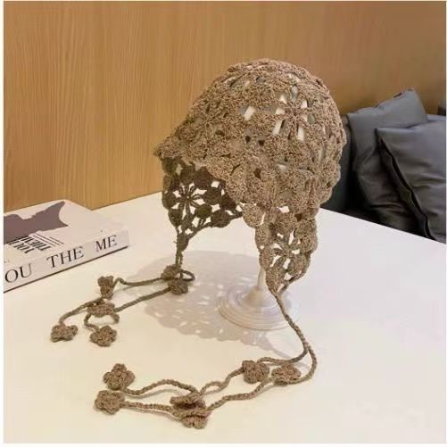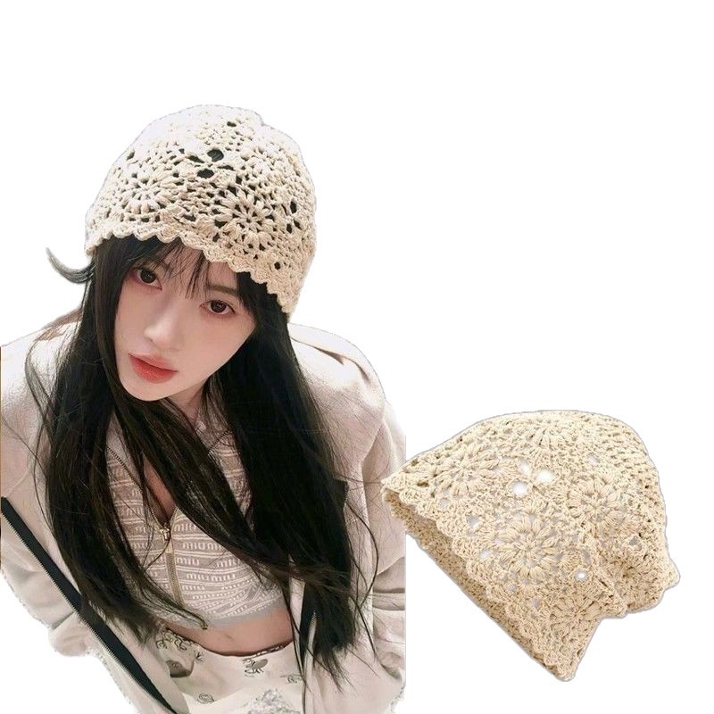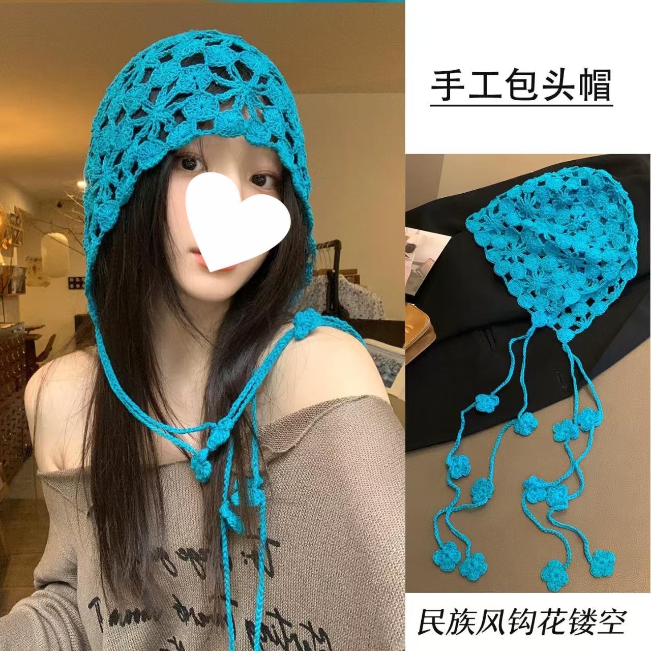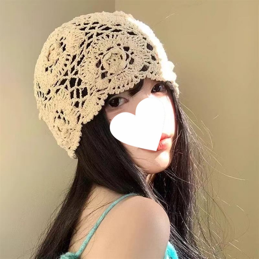 日系手工帽子堆堆薄款新款编织镂空复古针织文艺包头毛线帽帽女