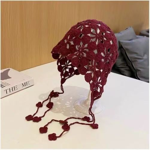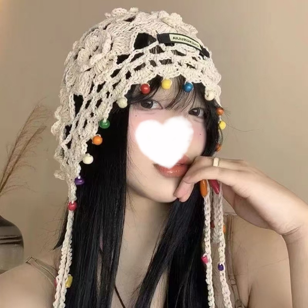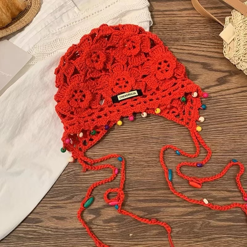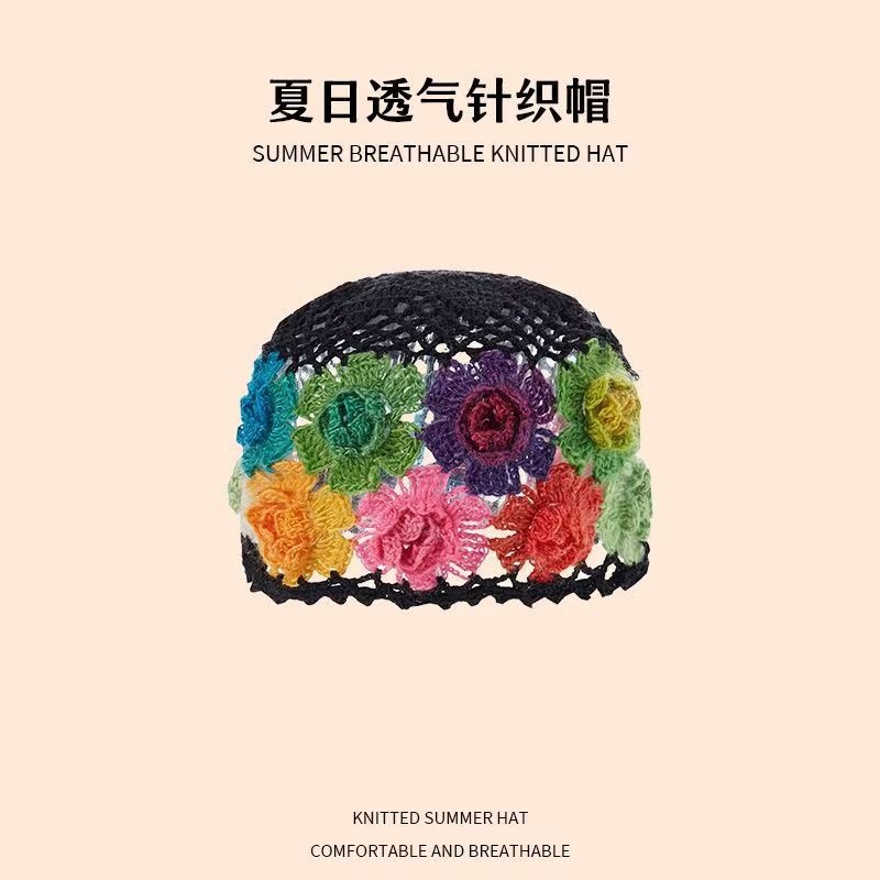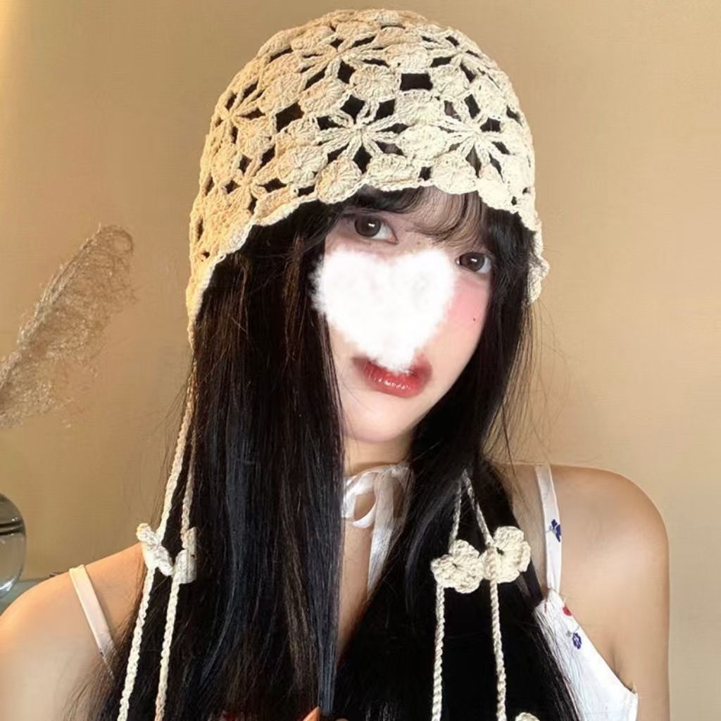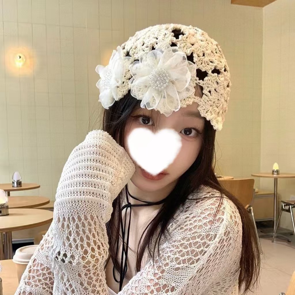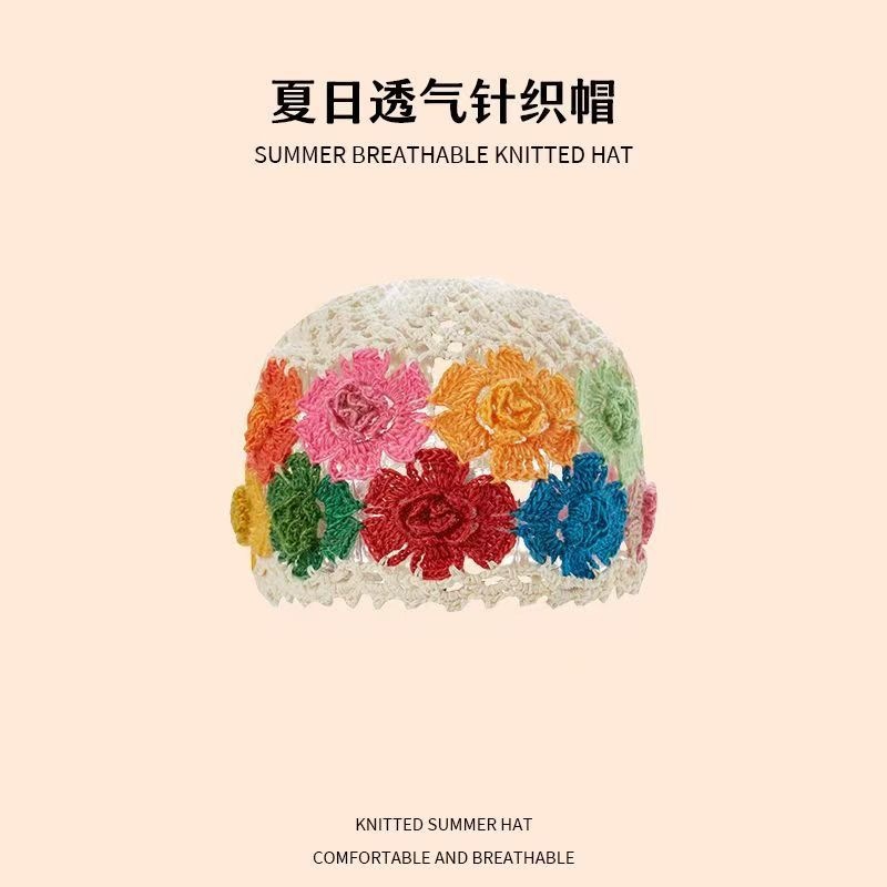 日系手工帽子堆堆薄款新款编织镂空复古针织文艺包头毛线帽帽女