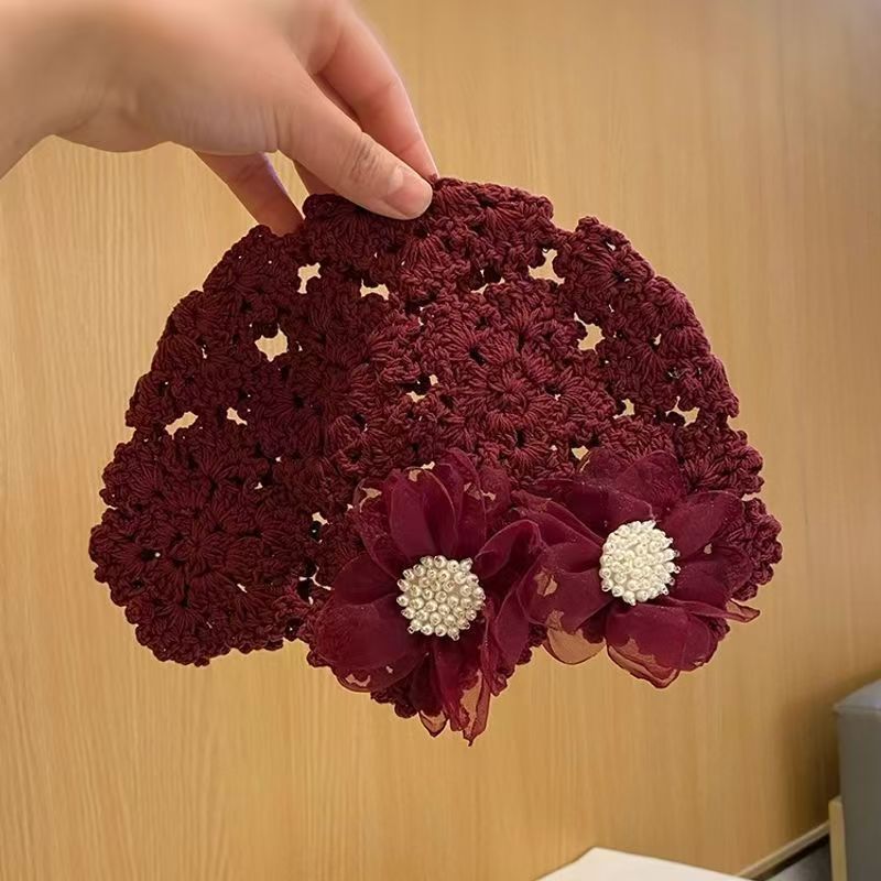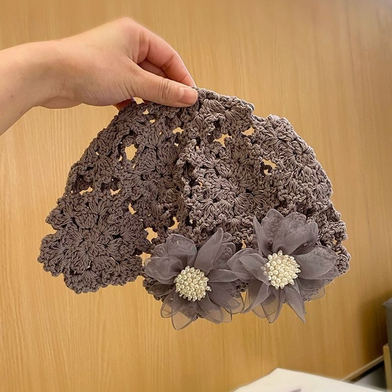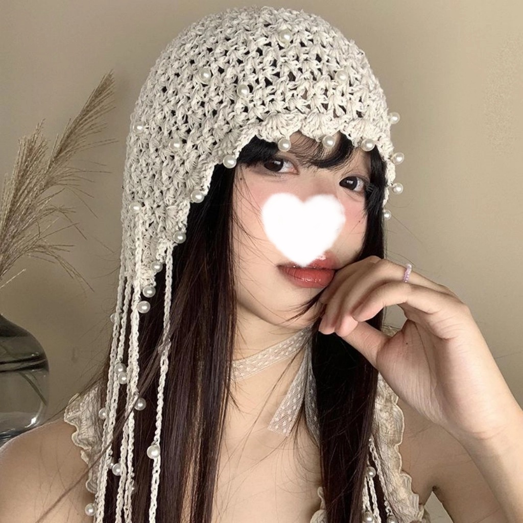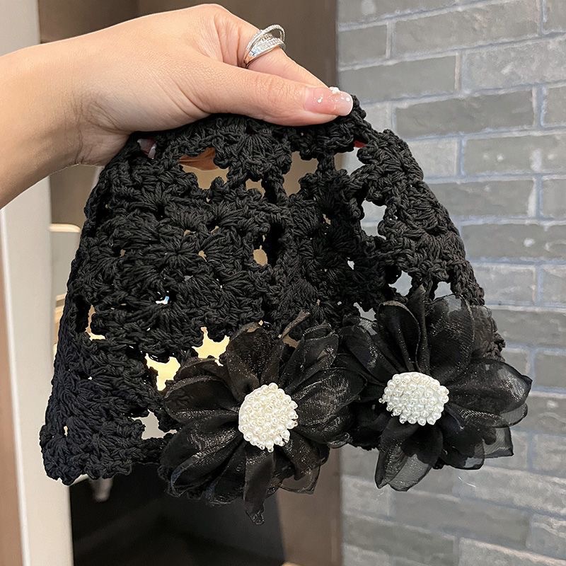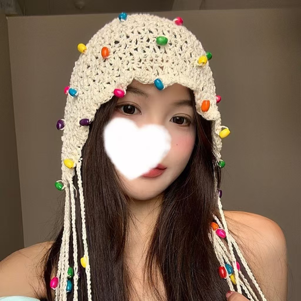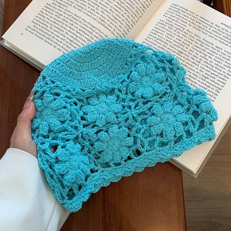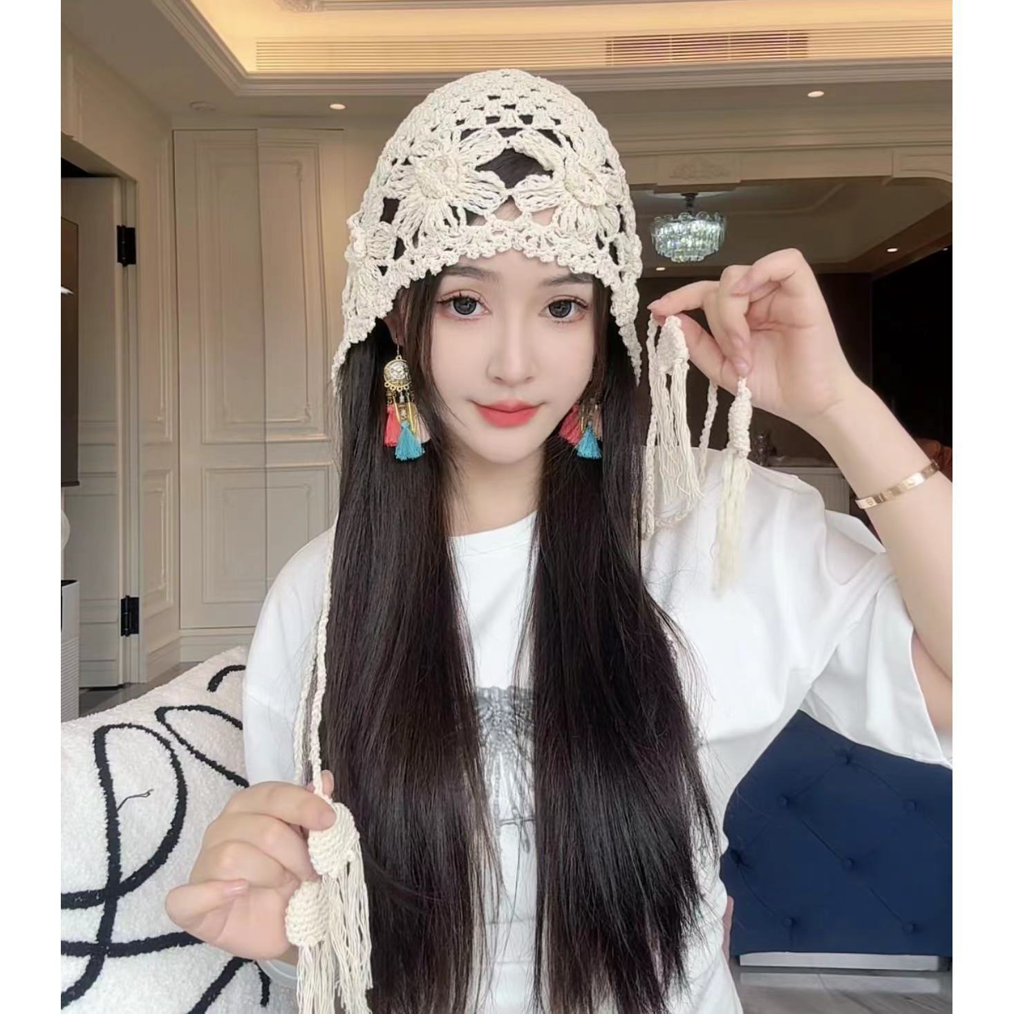 日系手工帽子堆堆薄款新款编织镂空复古针织文艺包头毛线帽帽女