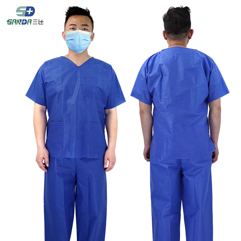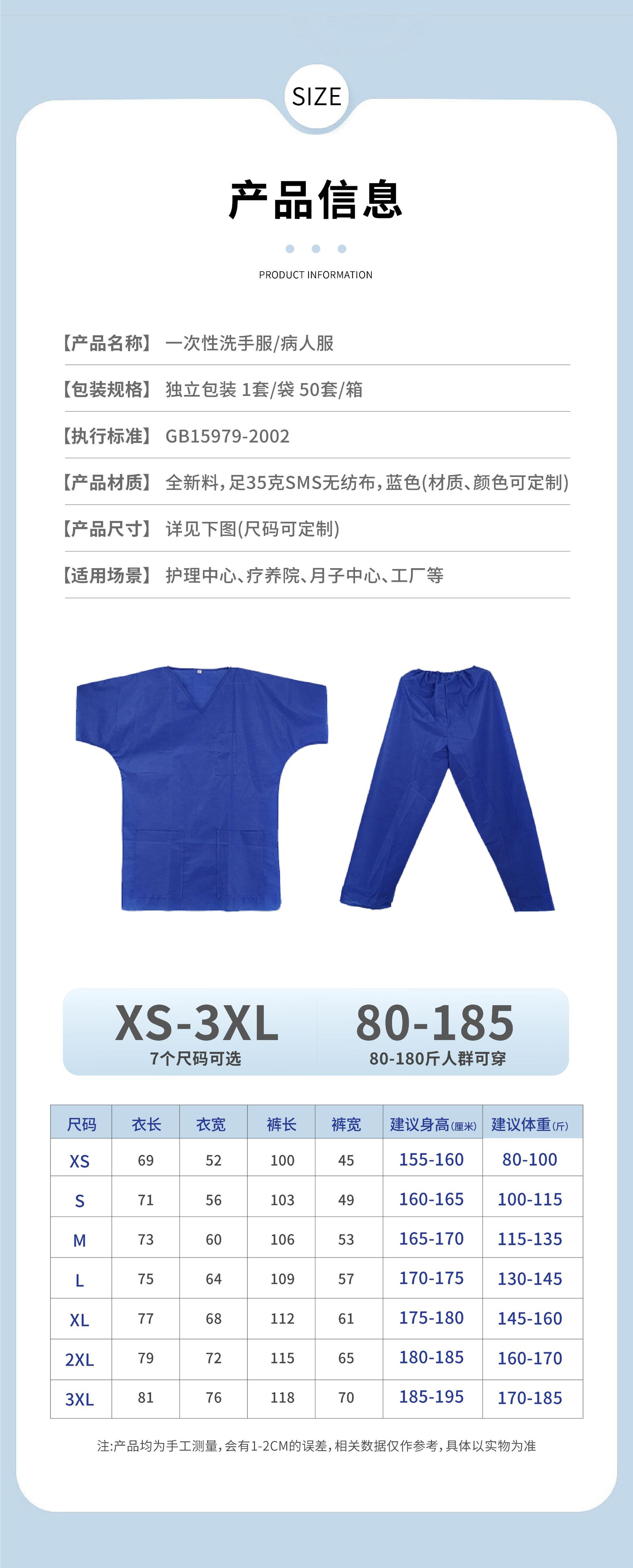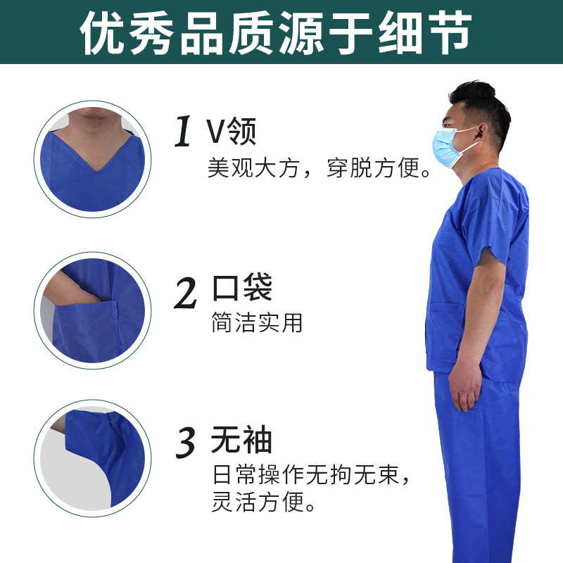 一次性洗手衣病人服SMS无纺布防水防尘隔离衣短袖分体式套装防护