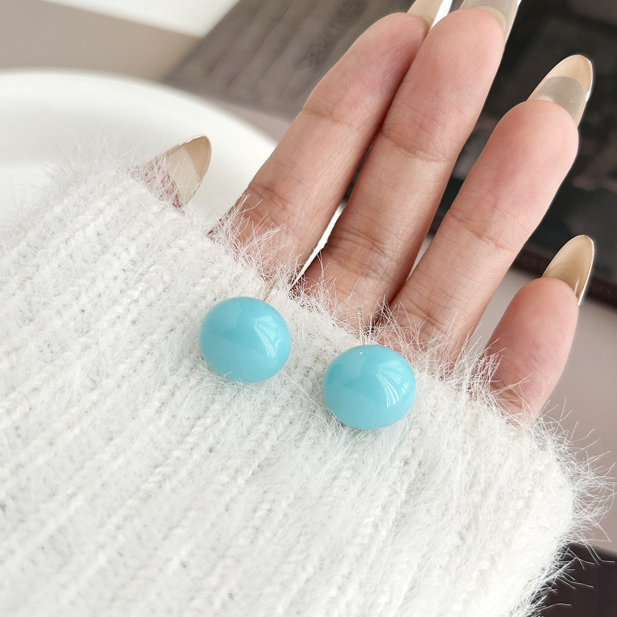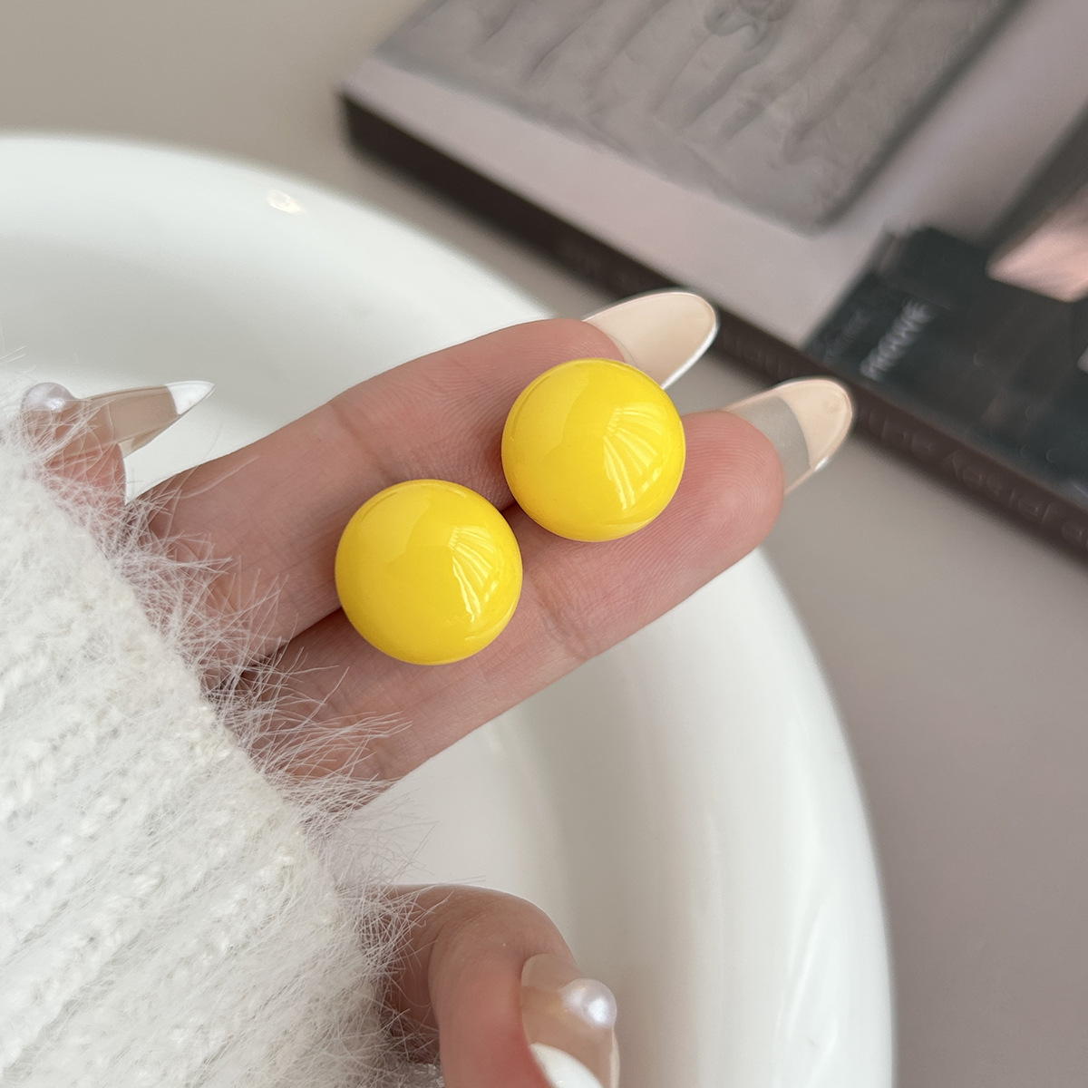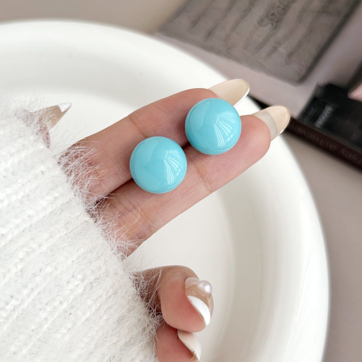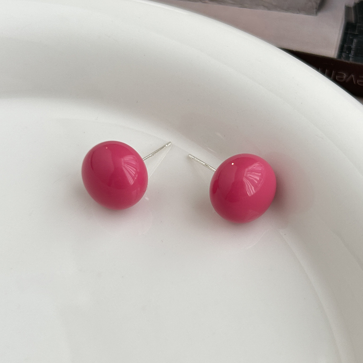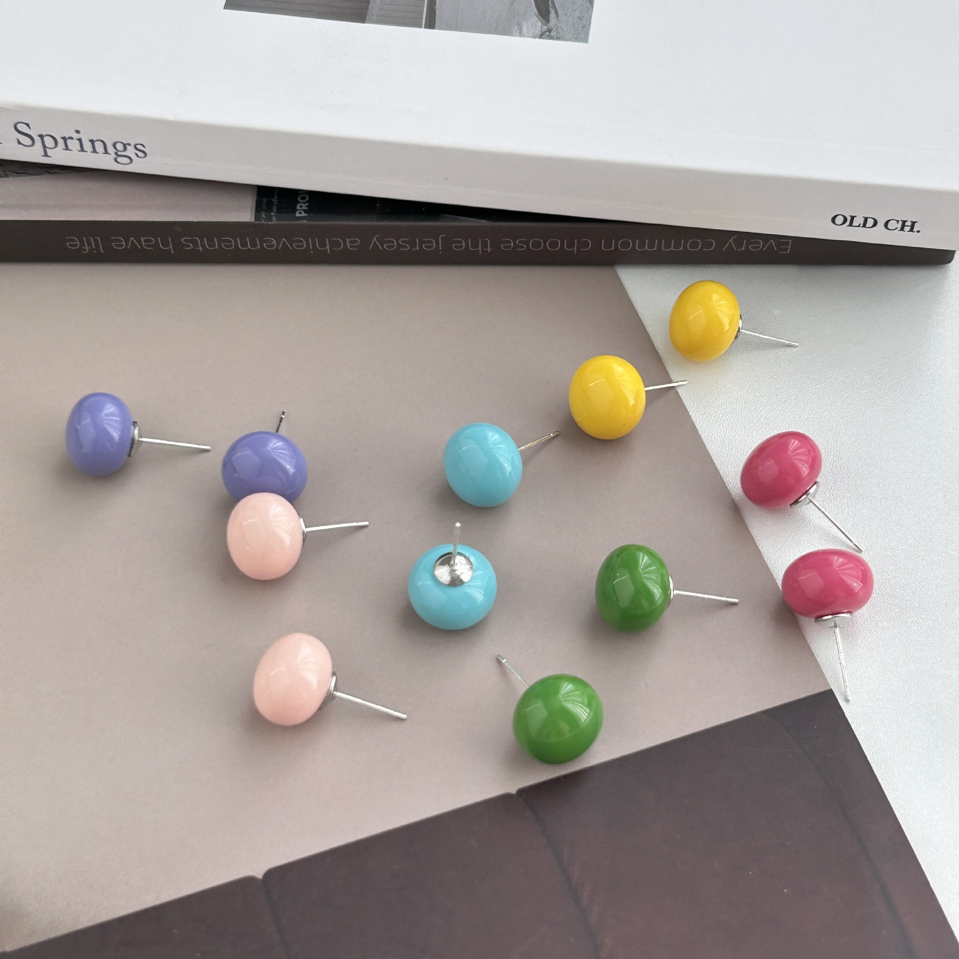 银针2026春夏新款多巴胺彩色糖果球球耳钉女圆球耳环时尚百搭耳饰