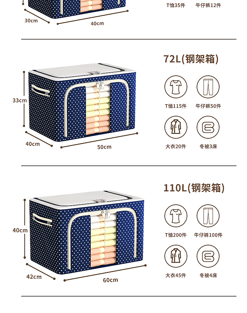 | 72L大号(长50*宽40*高33cm)轻柔质感/加粗钢架 | USD $8.06 | 207 piece available |
