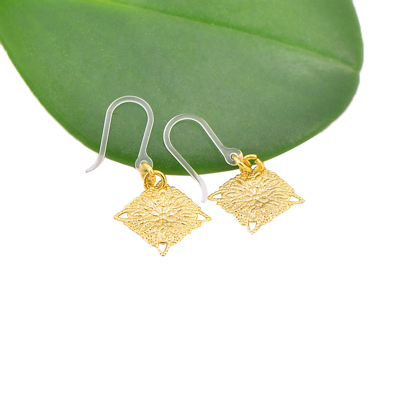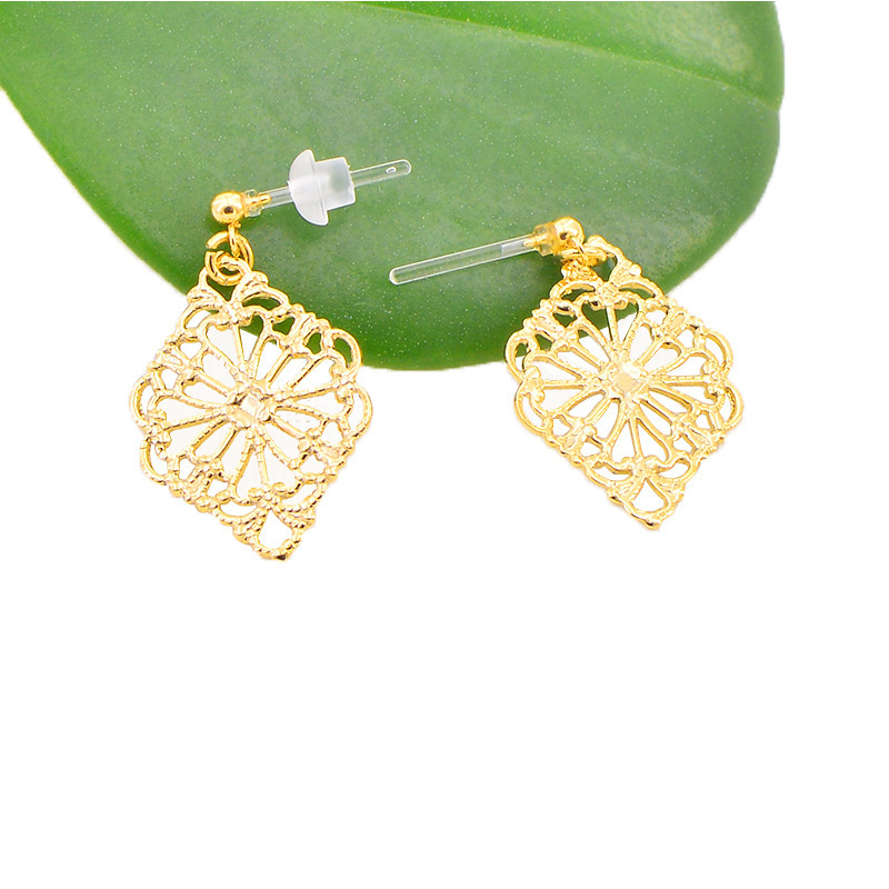| 方形镂空吊坠耳环/金色 | USD $0.75 | 999999 pair available |