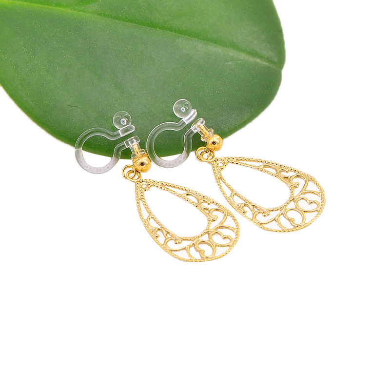| 水滴形镂空吊坠耳环/金色 | USD $0.54 | 999999 pair available |
