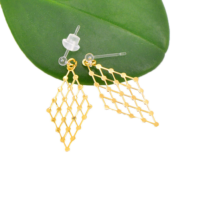 | 菱形镂空吊坠耳环/金色 | USD $0.69 | 999999 pair available |