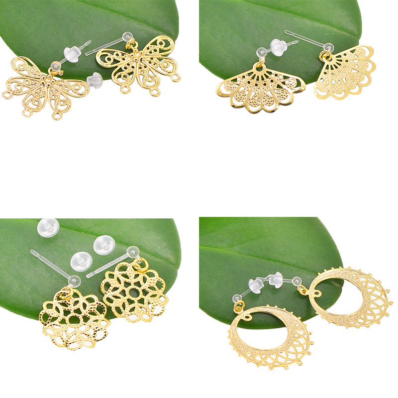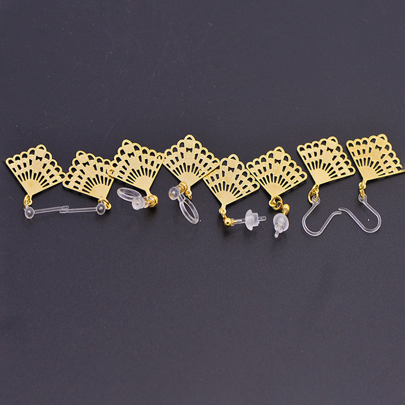 | 扇子形镂空吊坠耳环/金色 | USD $0.77 | 999999 pair available |