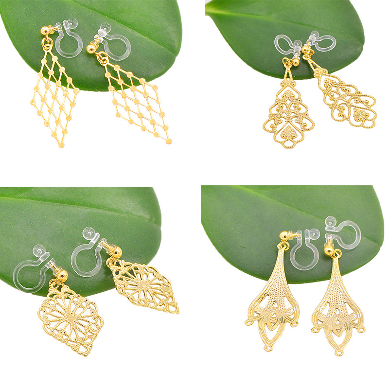 韩国镂空花片吊坠U型耳夹 无耳洞耳饰女复古气质花片耳坠耳环批发