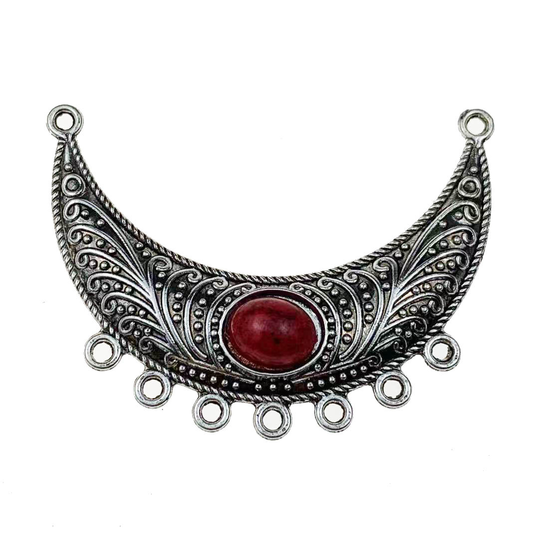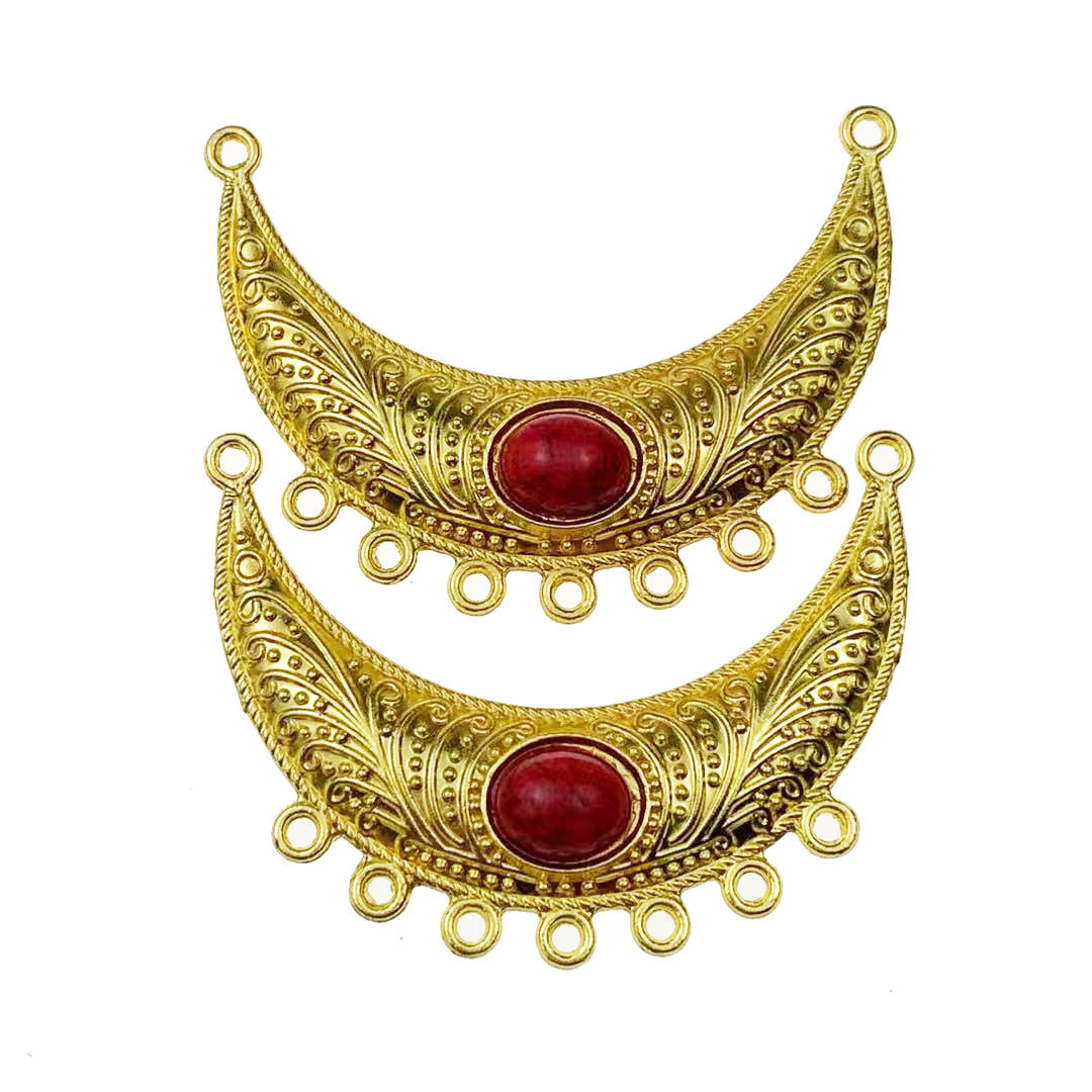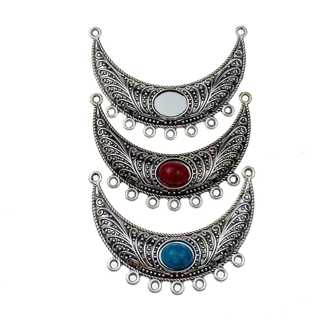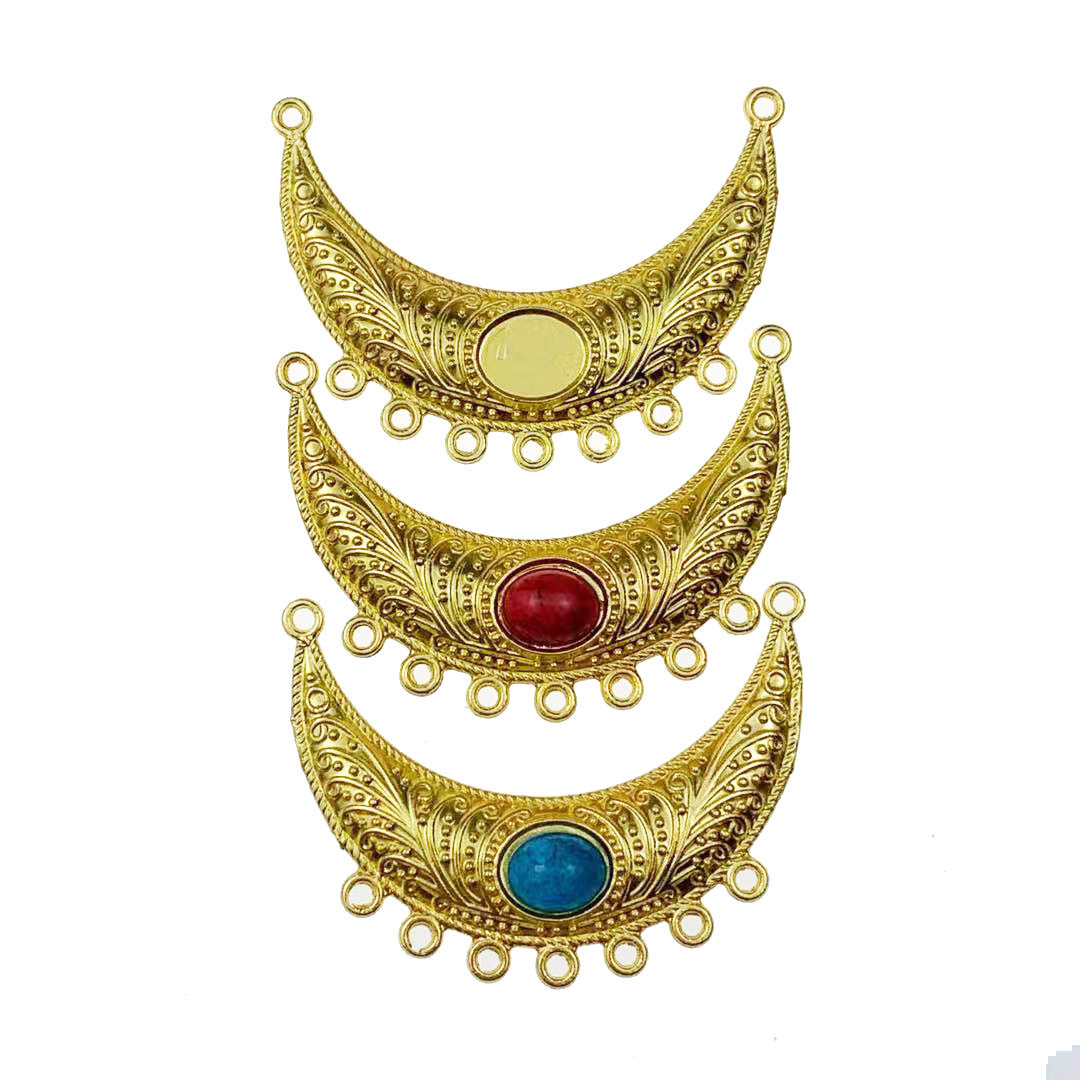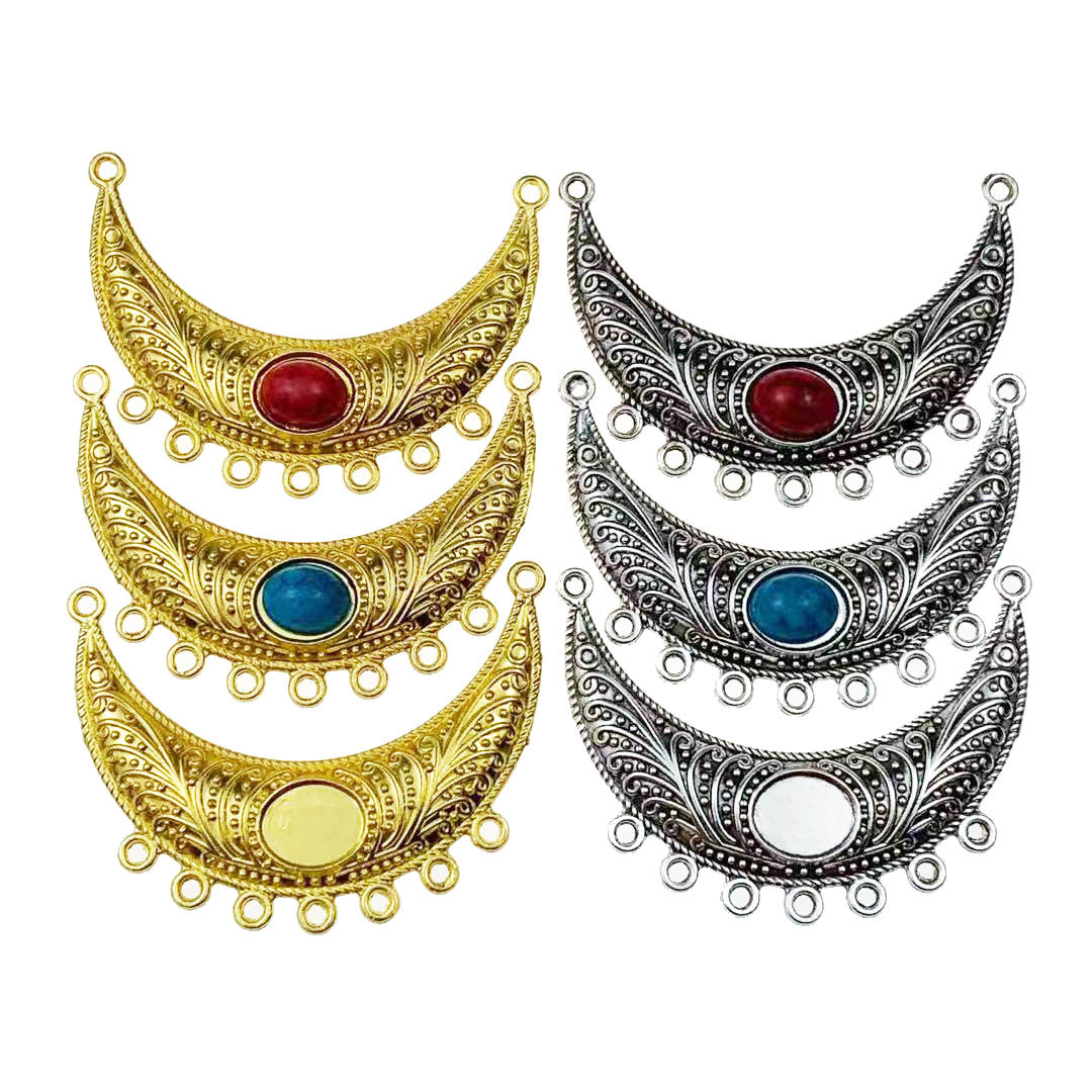 DIY饰品配件46*55mm合金七孔间饰少数民族额饰步摇流苏演出服材料