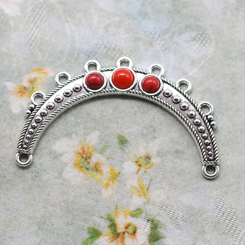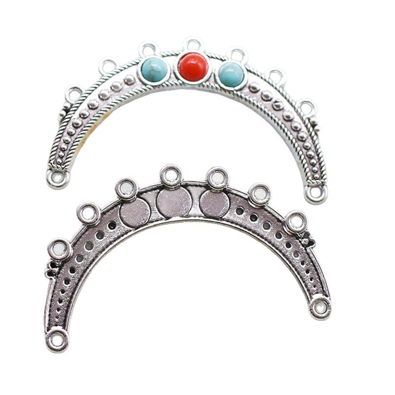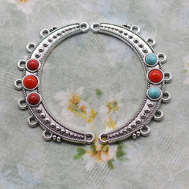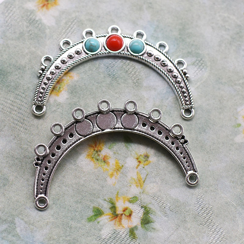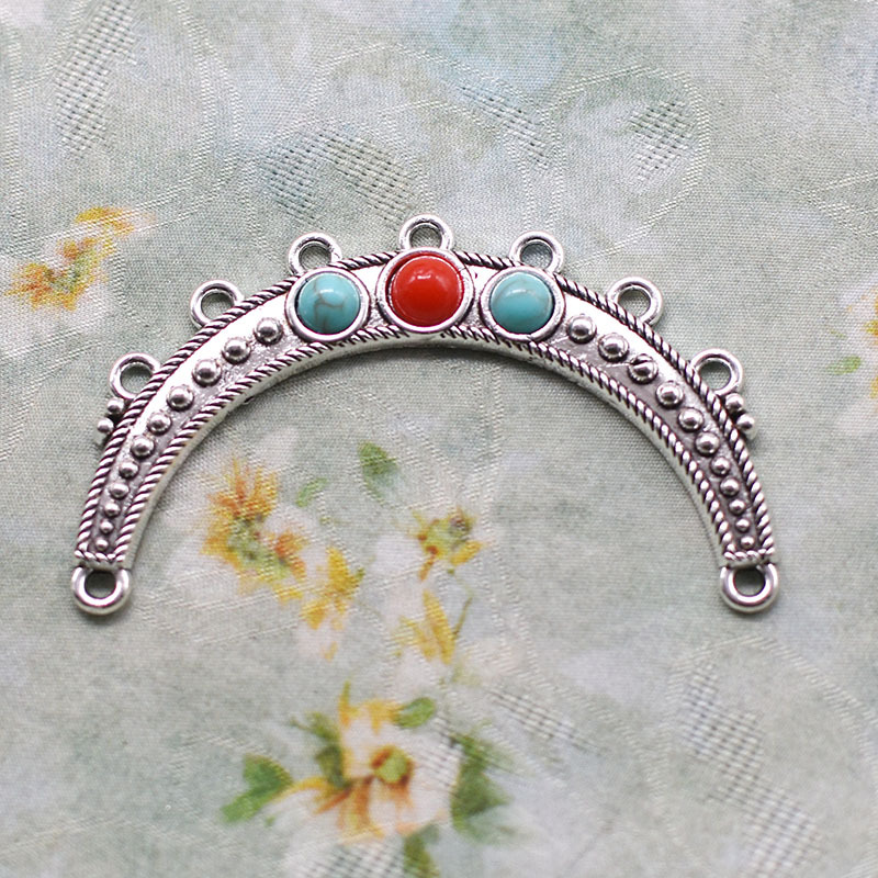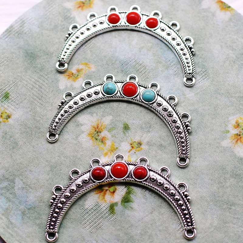 合金镶嵌松石半圆月亮多孔吊坠双吊月牙挂件嵌少数民主风项链挂件