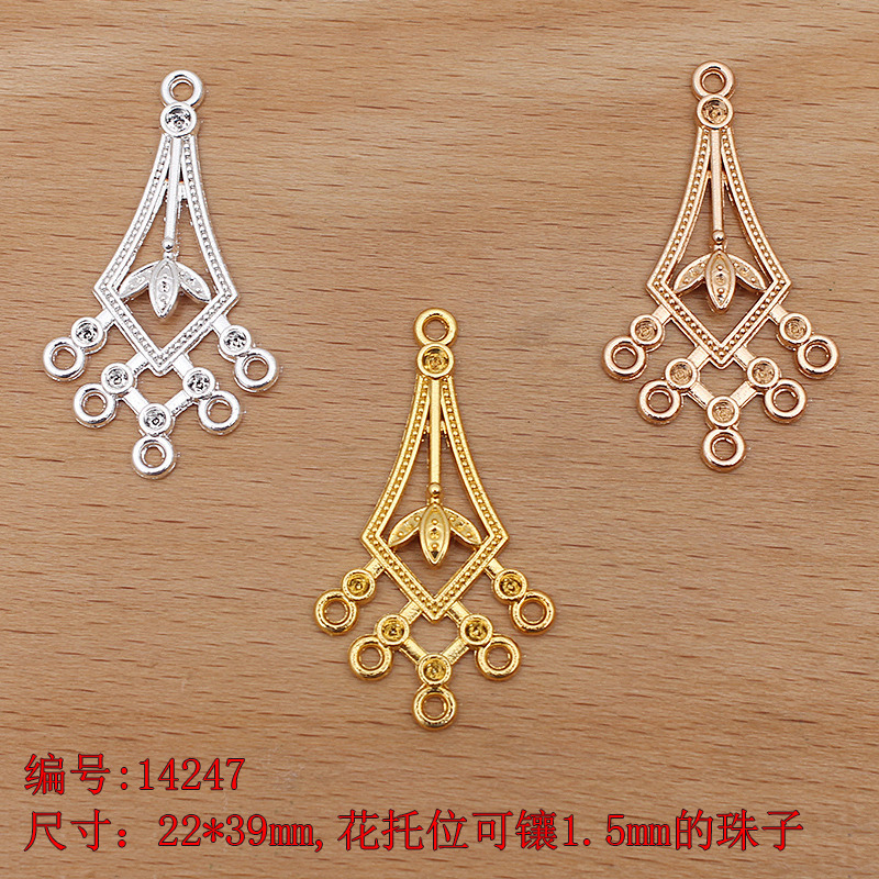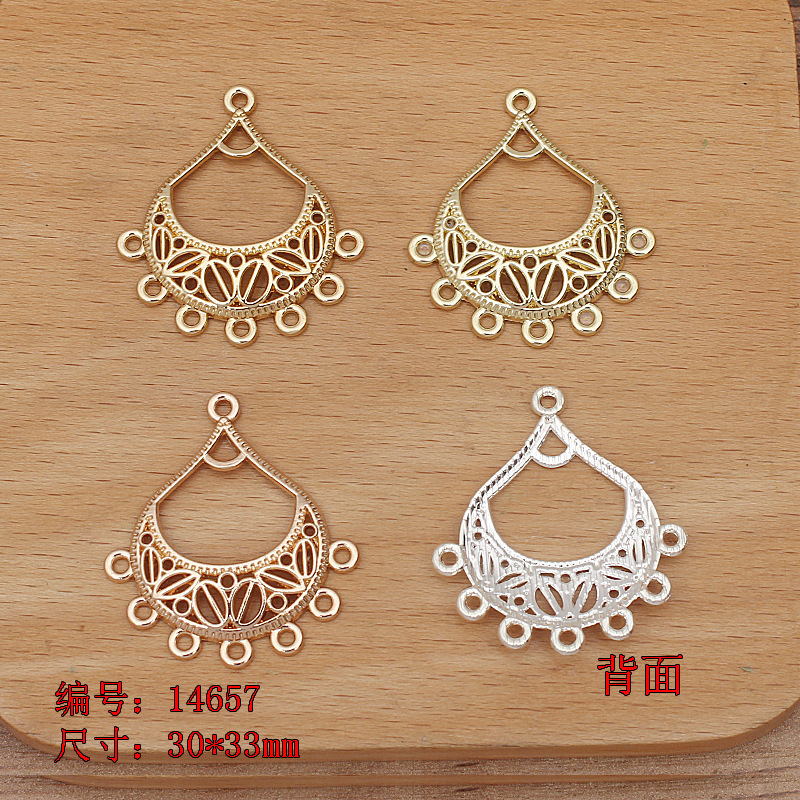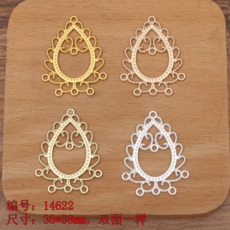 DIY配件古材料水滴形合金三叶草多孔镂空连接配件