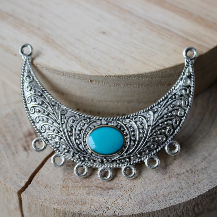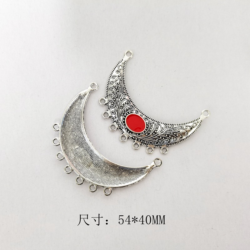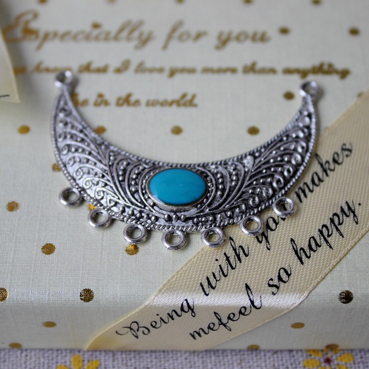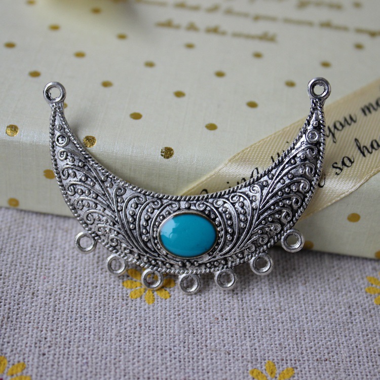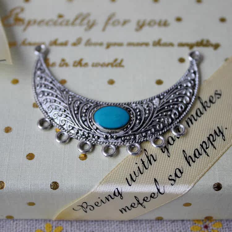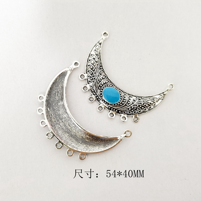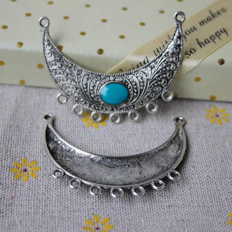 DIY饰品藏银配件54MM复古合金多孔月牙镶宝石吊牌毛衣链组件P0158