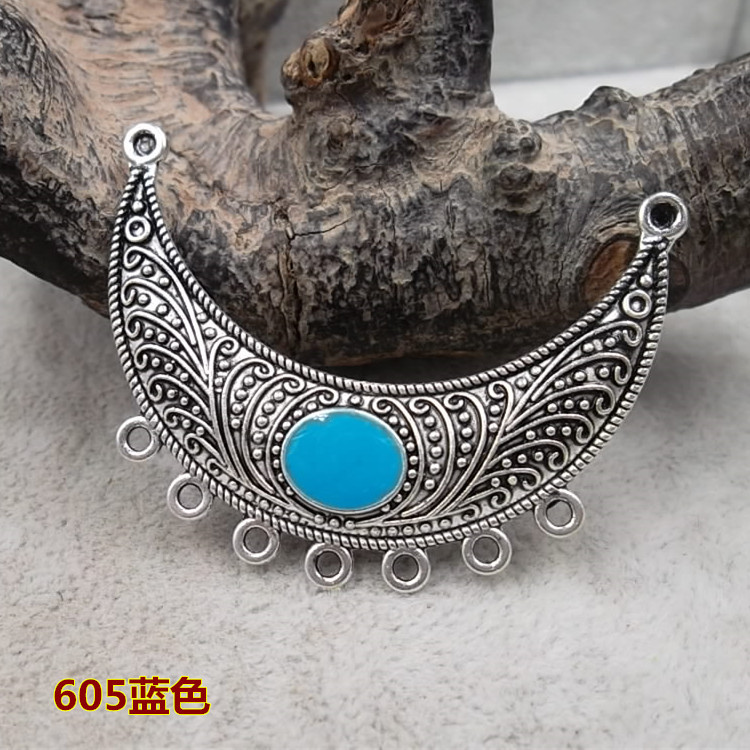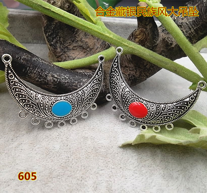 藏银民族风大吊坠批发 镶嵌红蓝松石项链挂头 DIY合金饰品配件