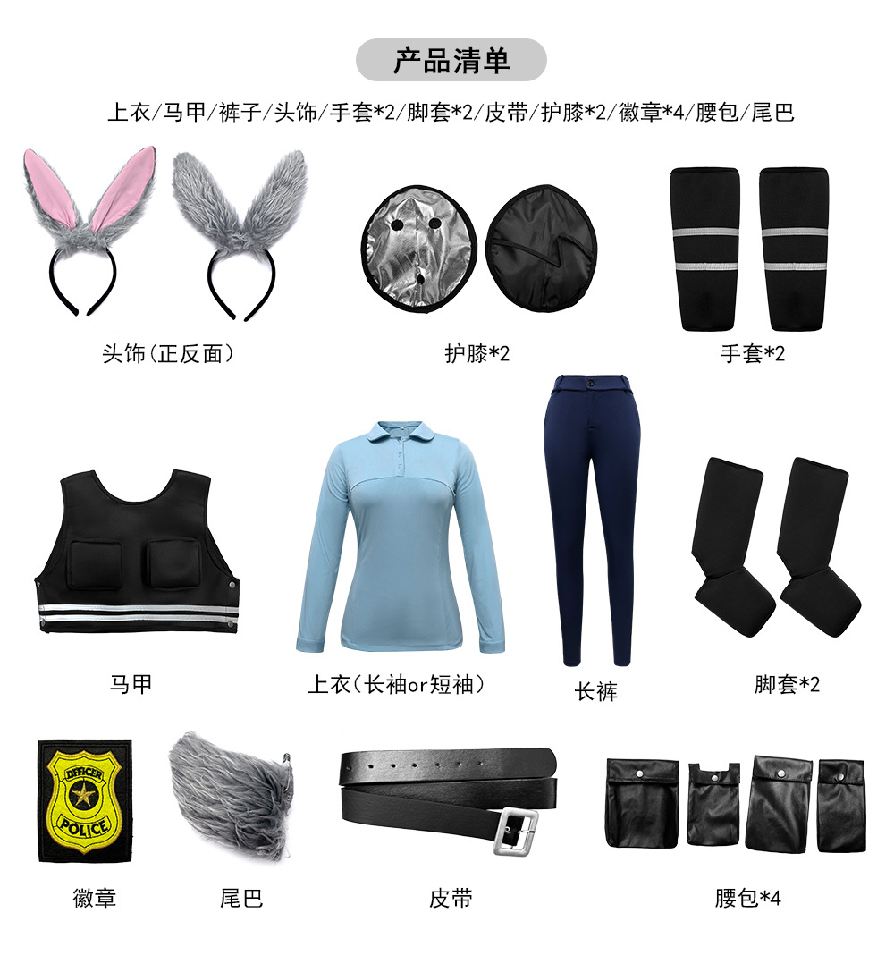 新款cos服实拍疯狂动物城judy朱迪兔子cos拟人服 cosplay服装漫展