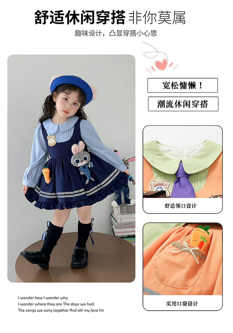 女童朱笛尼克长袖连衣裙春秋新款中小童小女孩万圣节cos演出服套