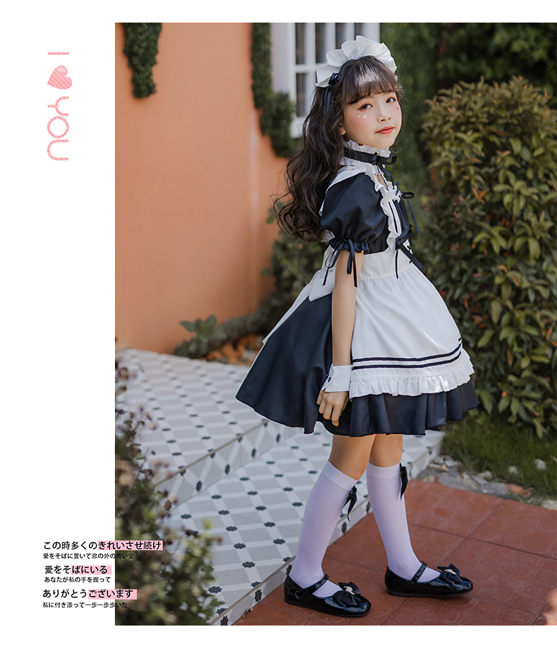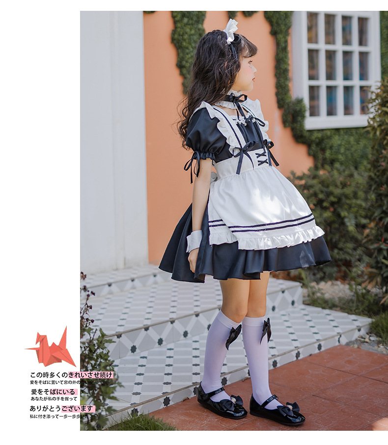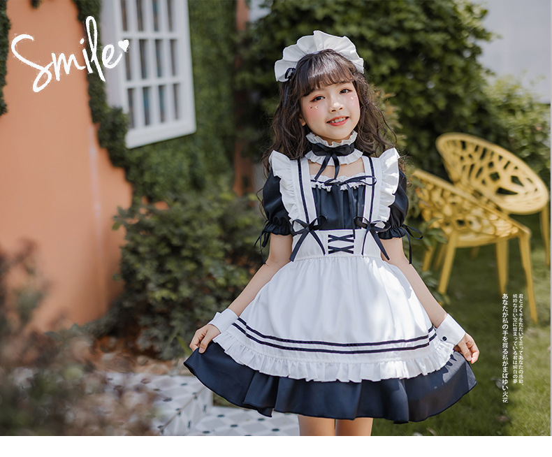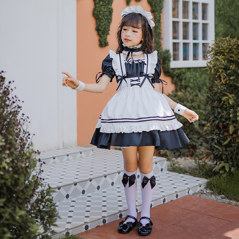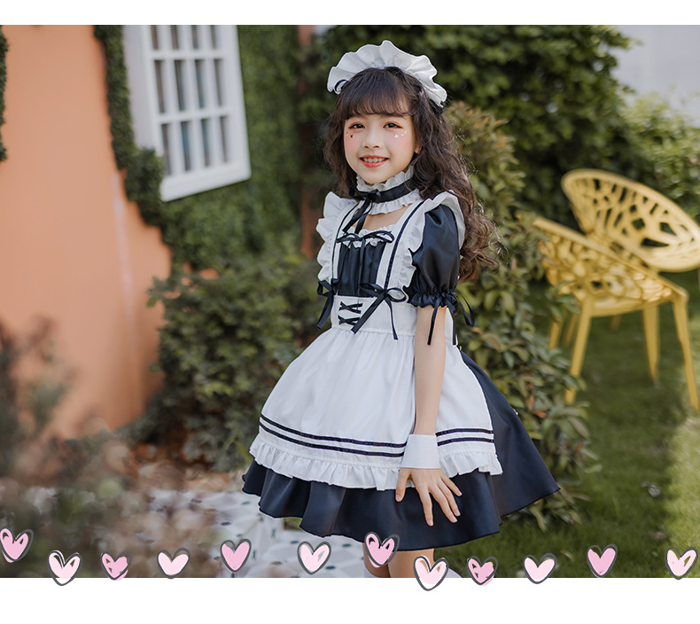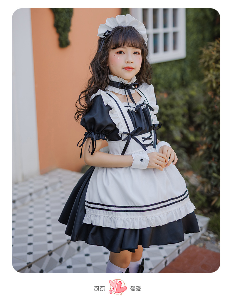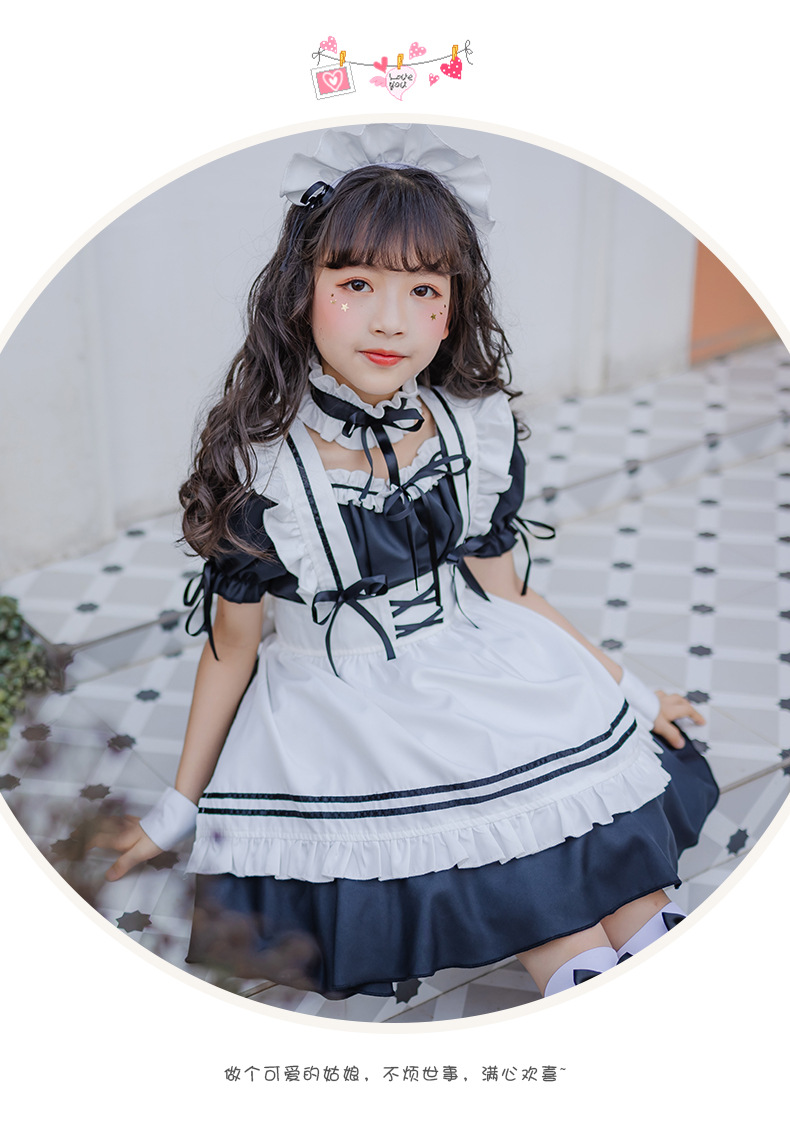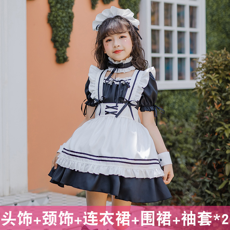 日本女童黑色女仆装童装萝莉女佣可爱lolita连衣裙儿童公主洛丽塔