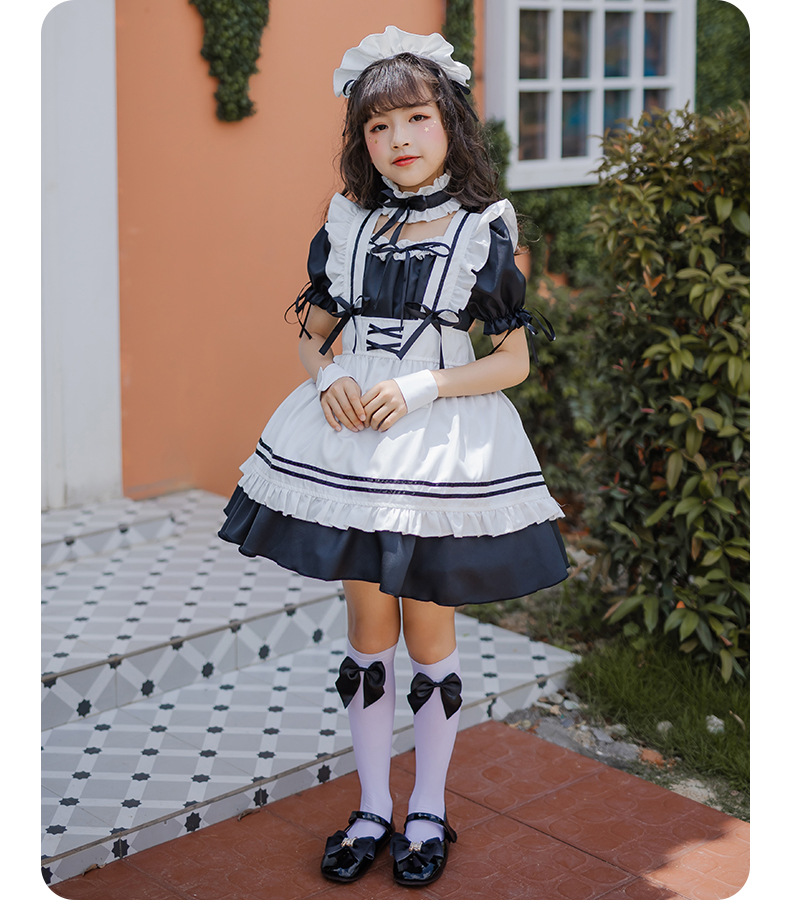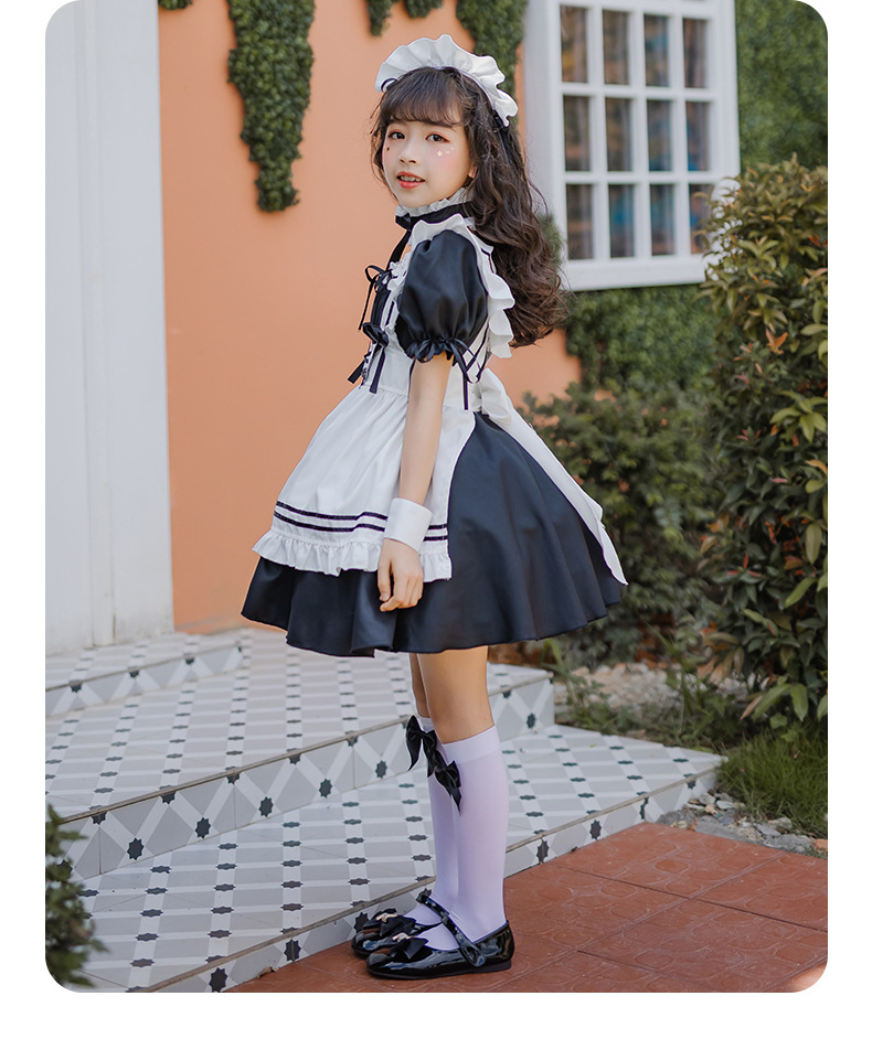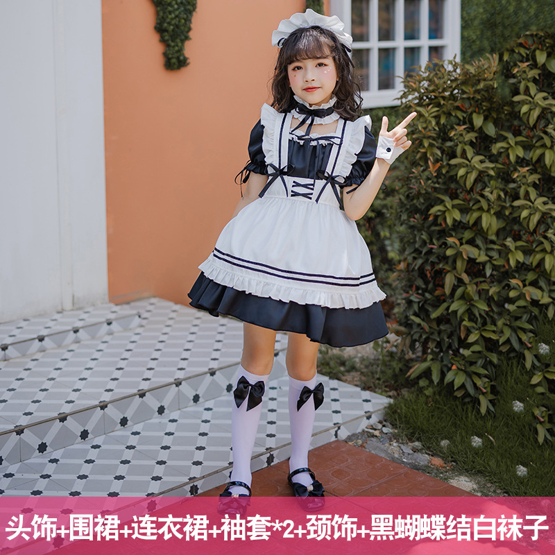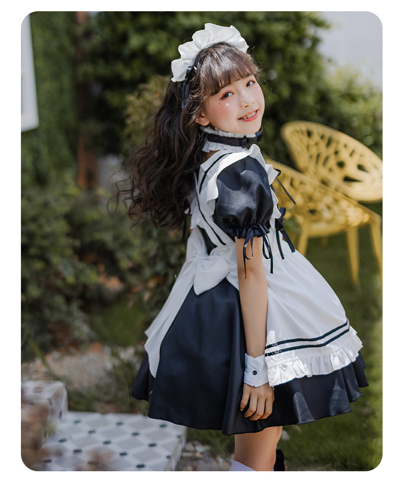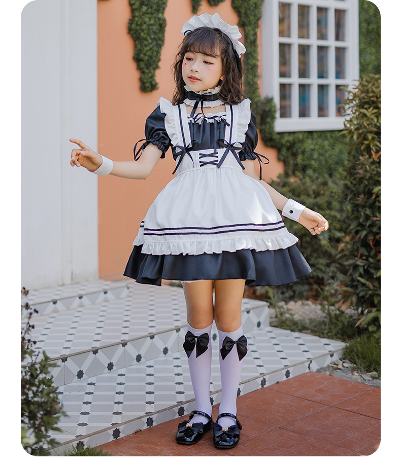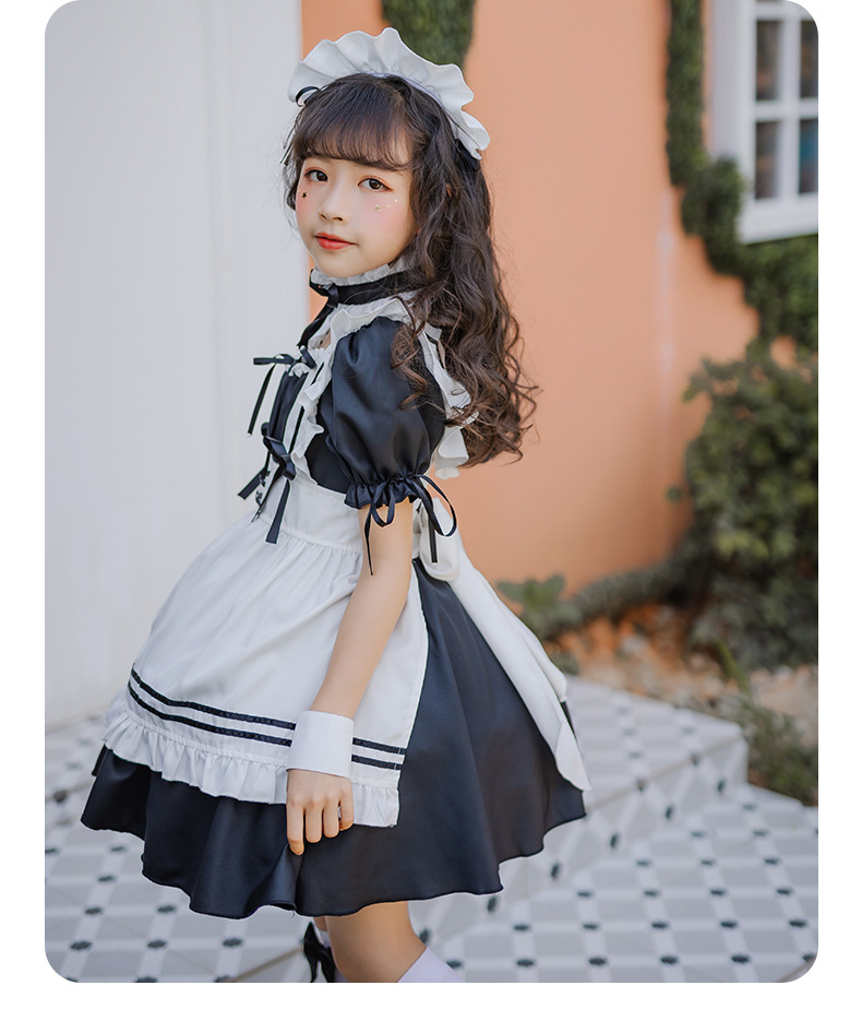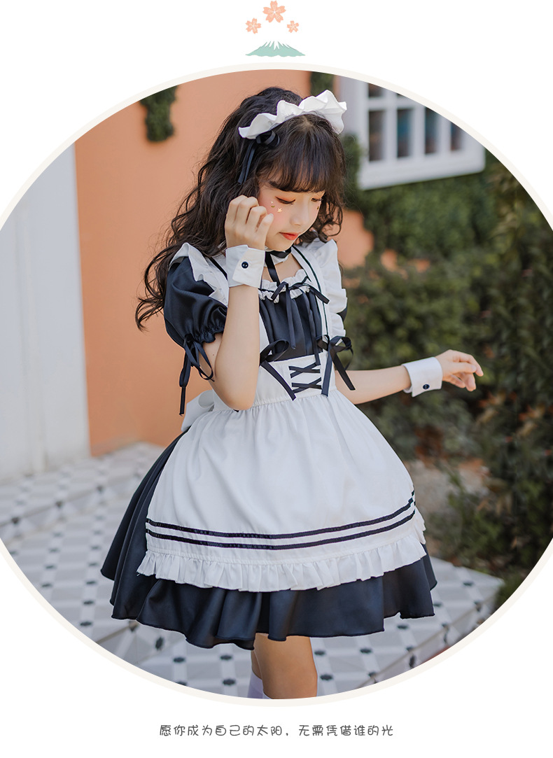 日本女童黑色女仆装童装萝莉女佣可爱lolita连衣裙儿童公主洛丽塔