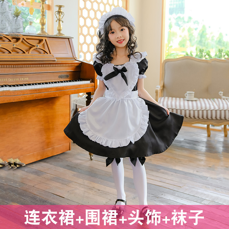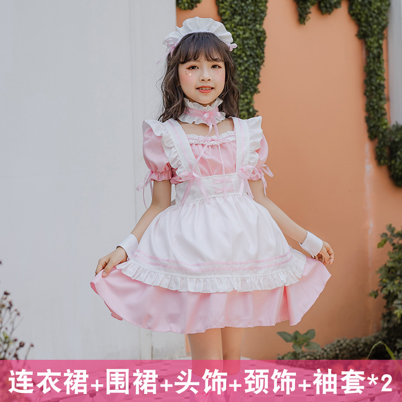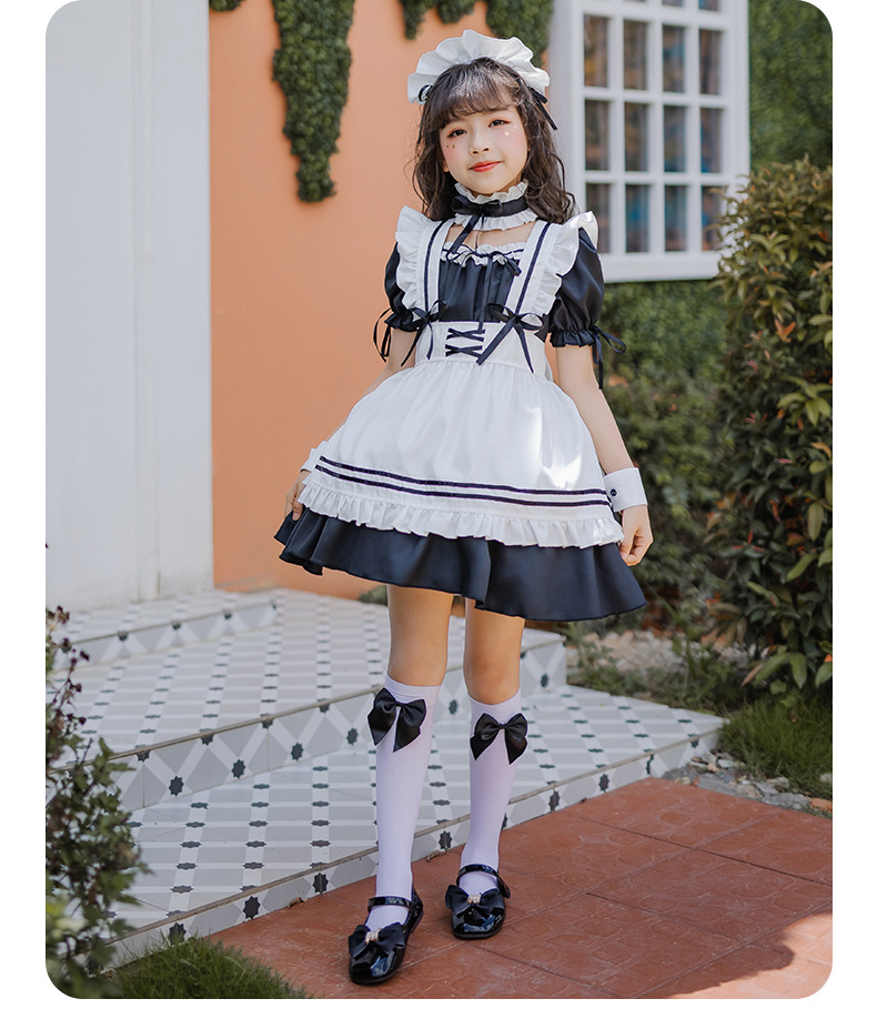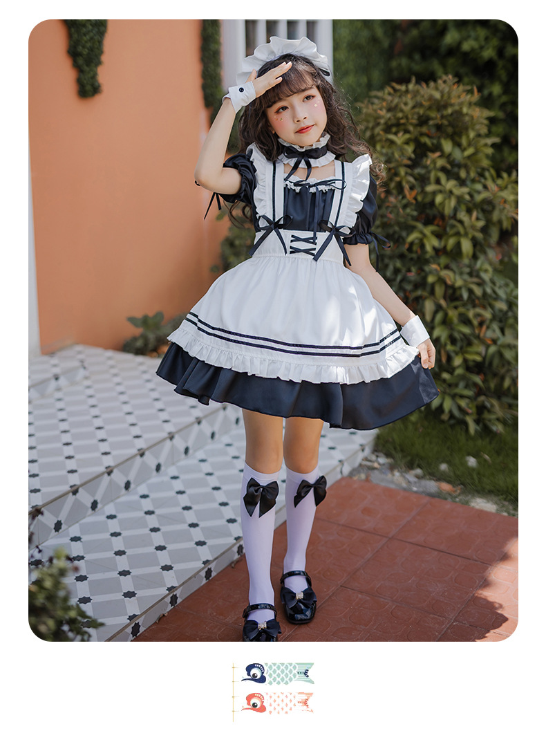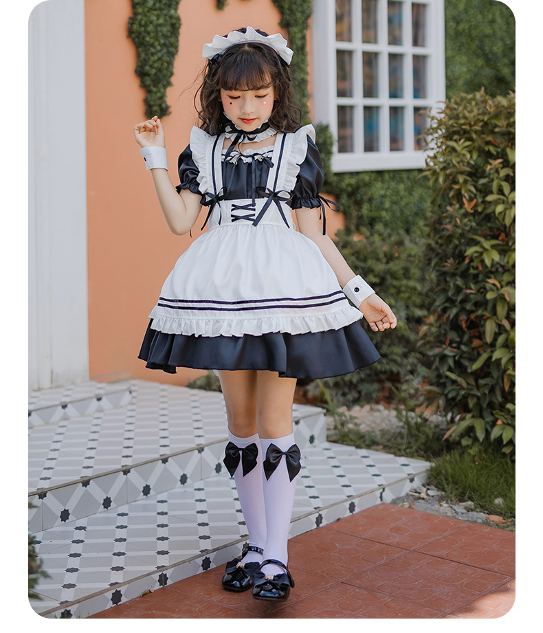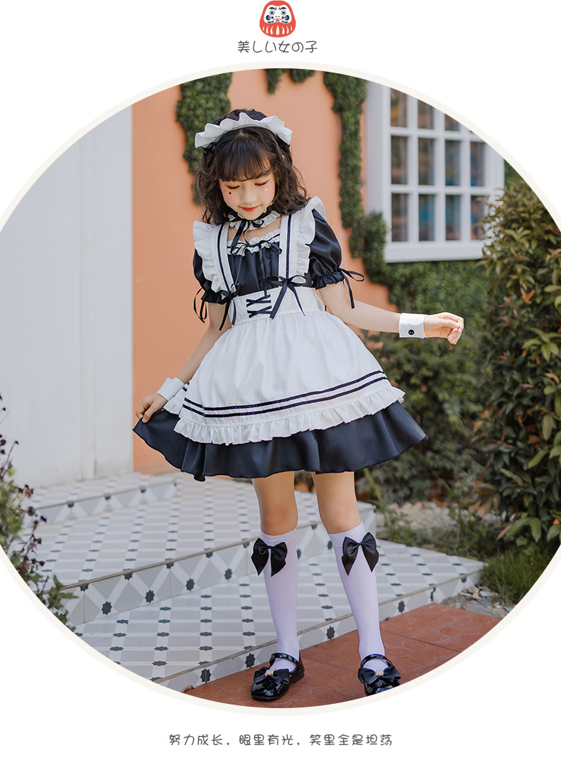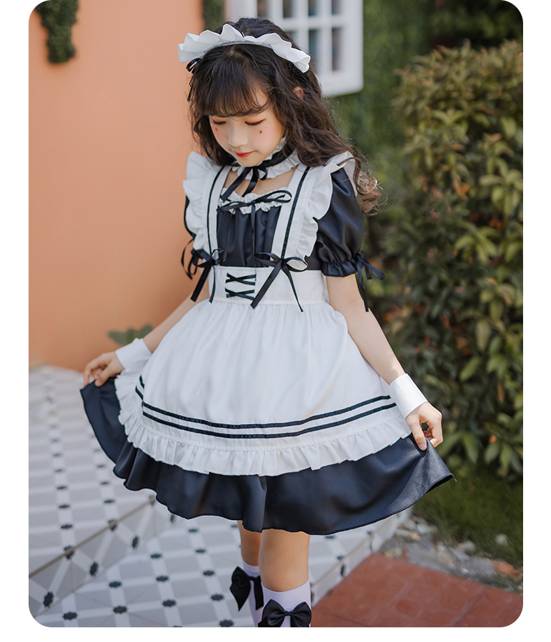 日本女童黑色女仆装童装萝莉女佣可爱lolita连衣裙儿童公主洛丽塔