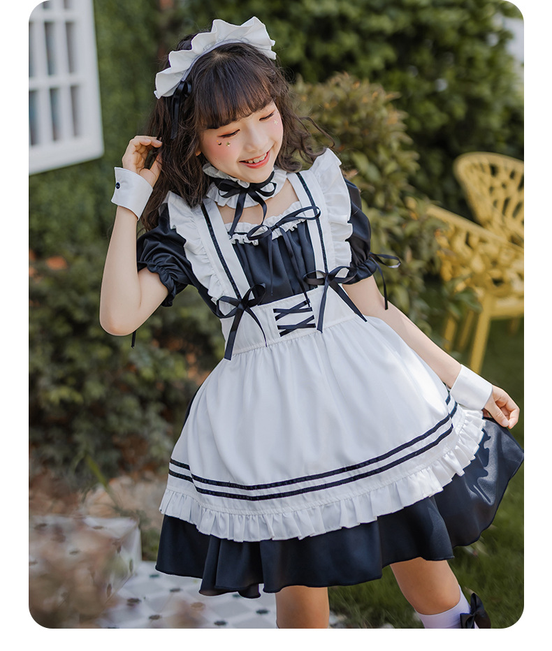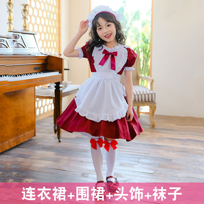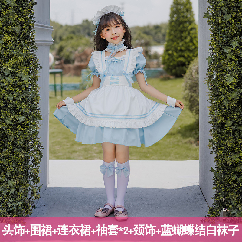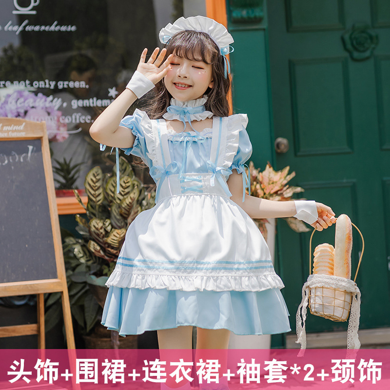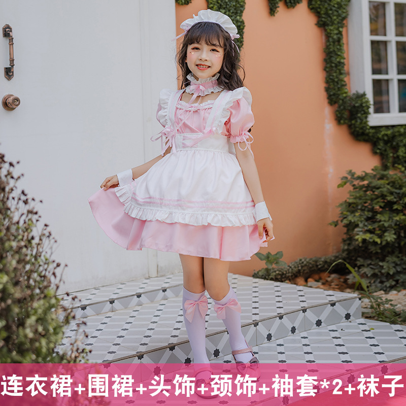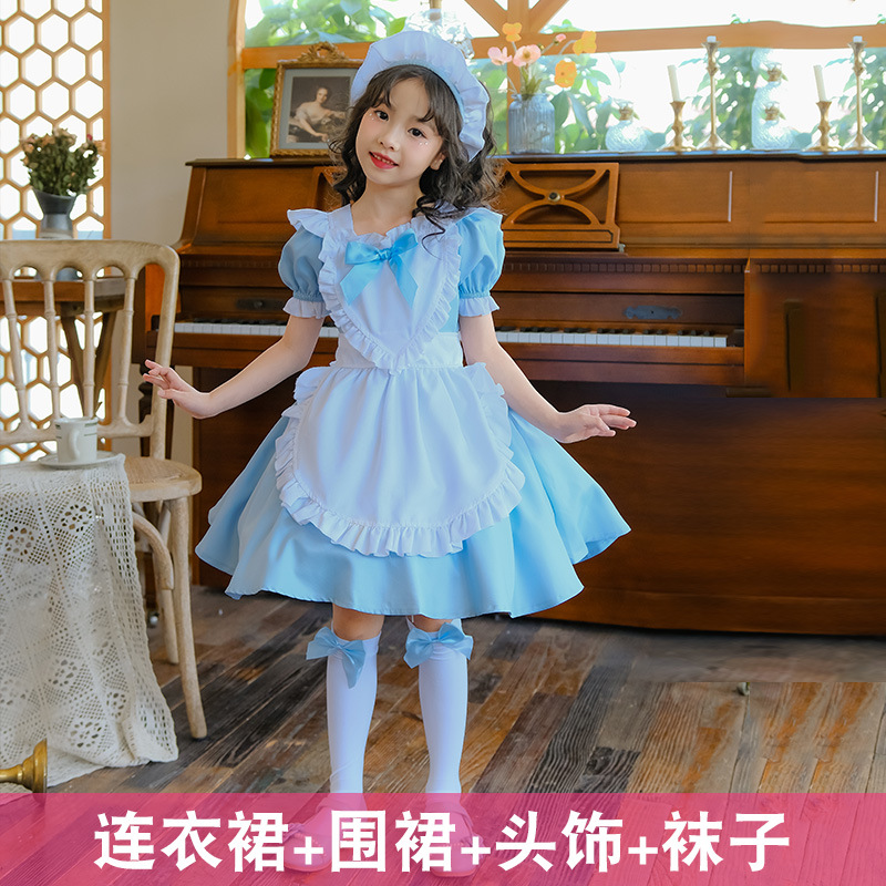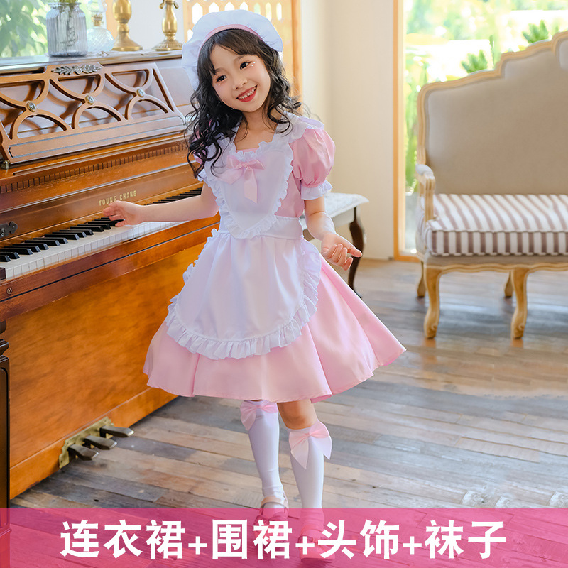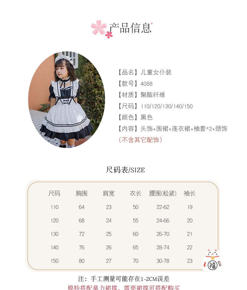 日本女童黑色女仆装童装萝莉女佣可爱lolita连衣裙儿童公主洛丽塔