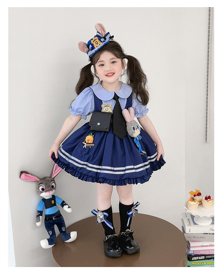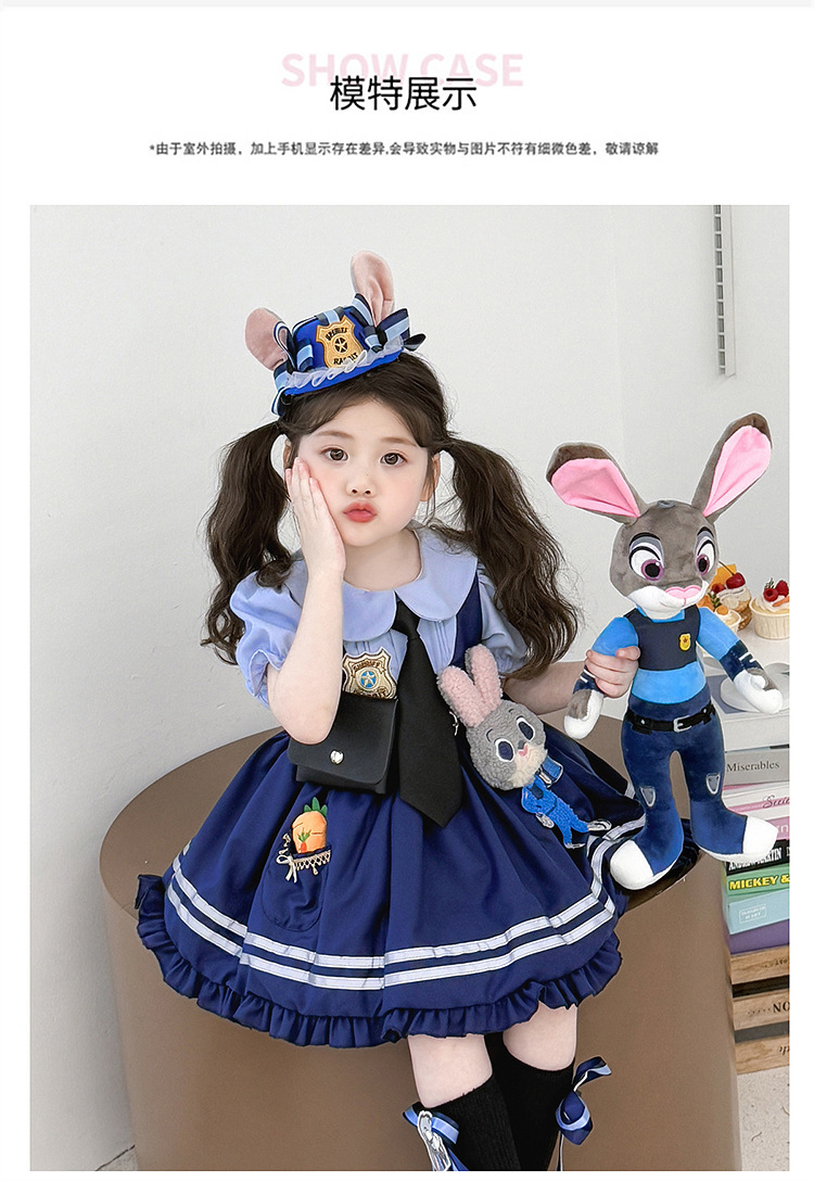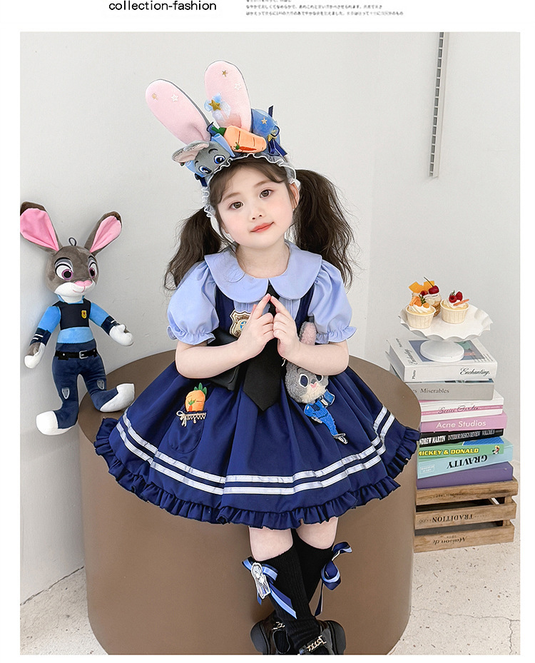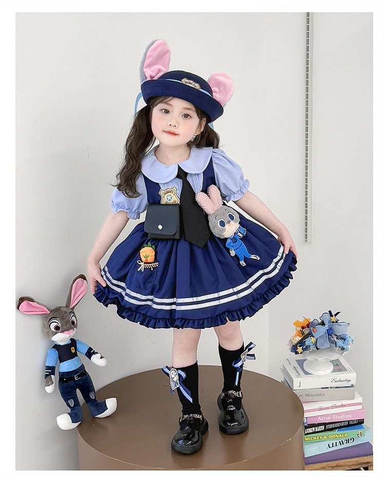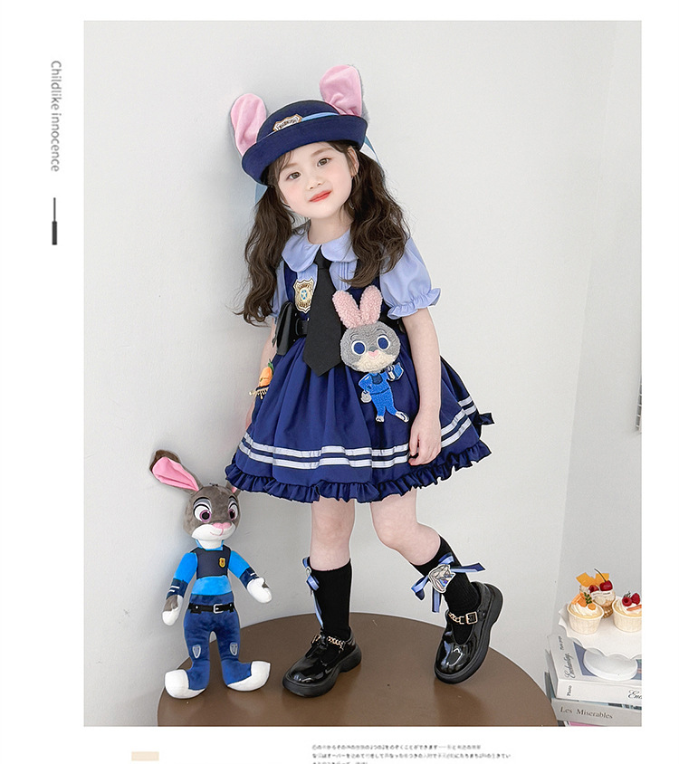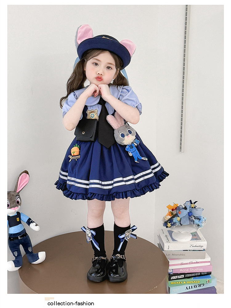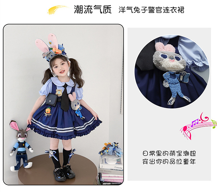 女童兔子警官公主裙夏季新款儿童卡通蓬蓬裙生日礼服洛丽塔连衣裙