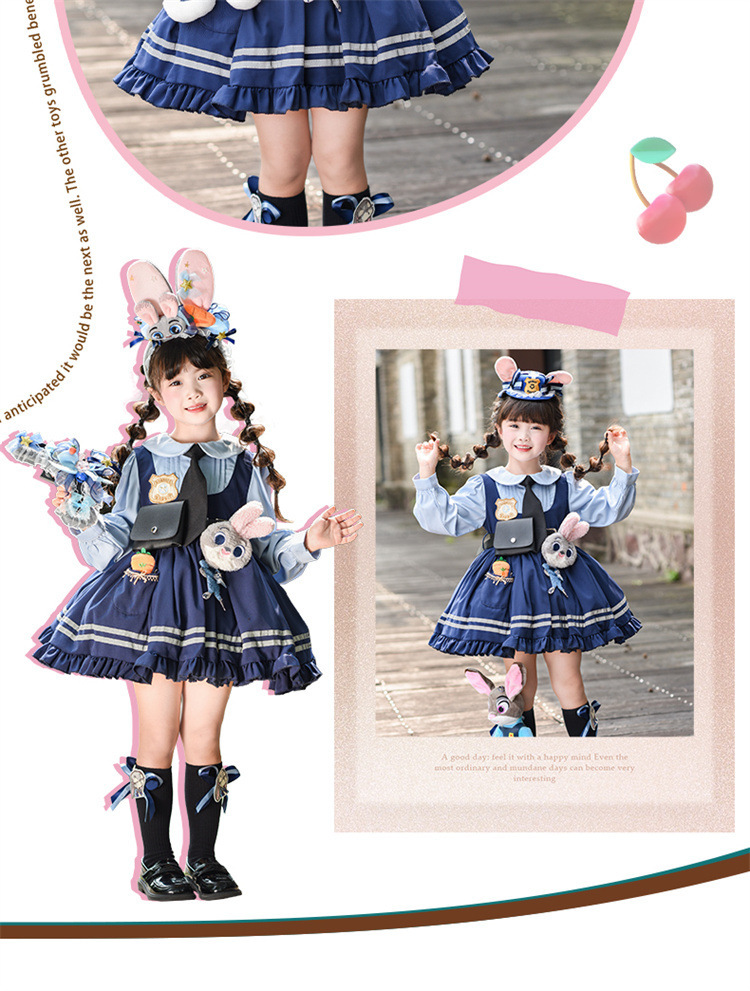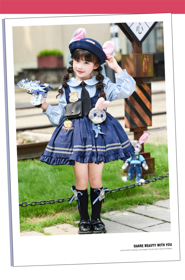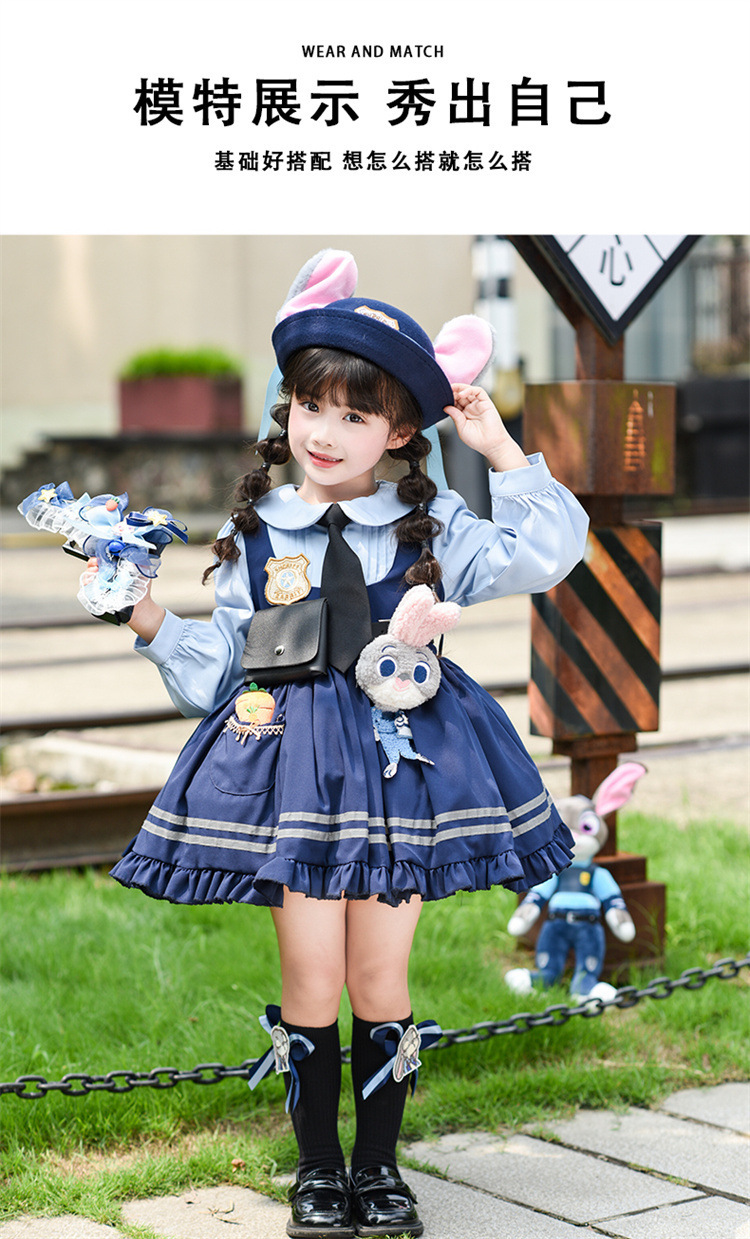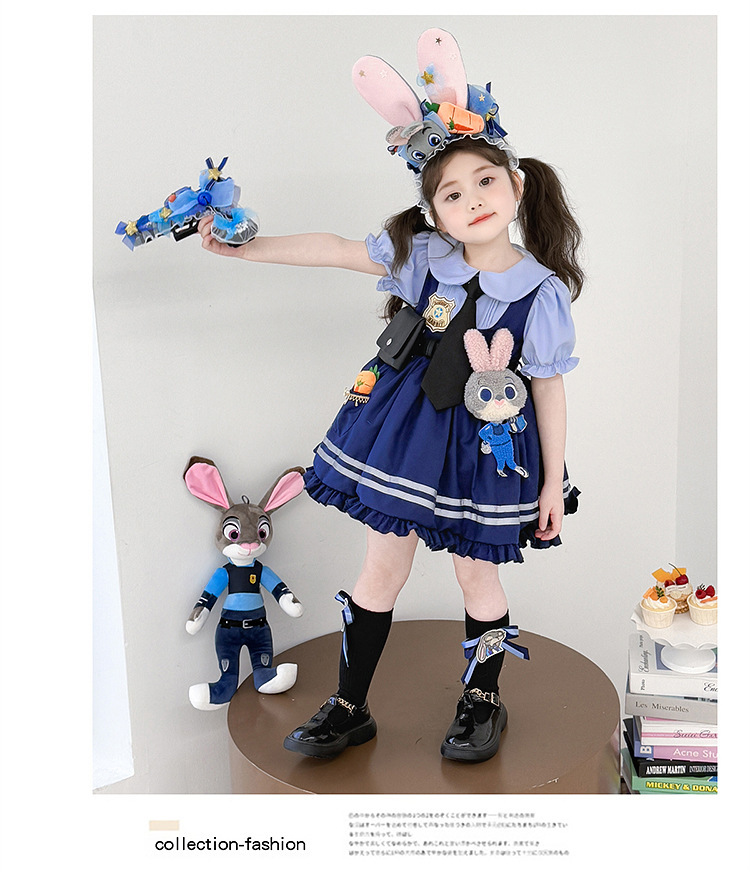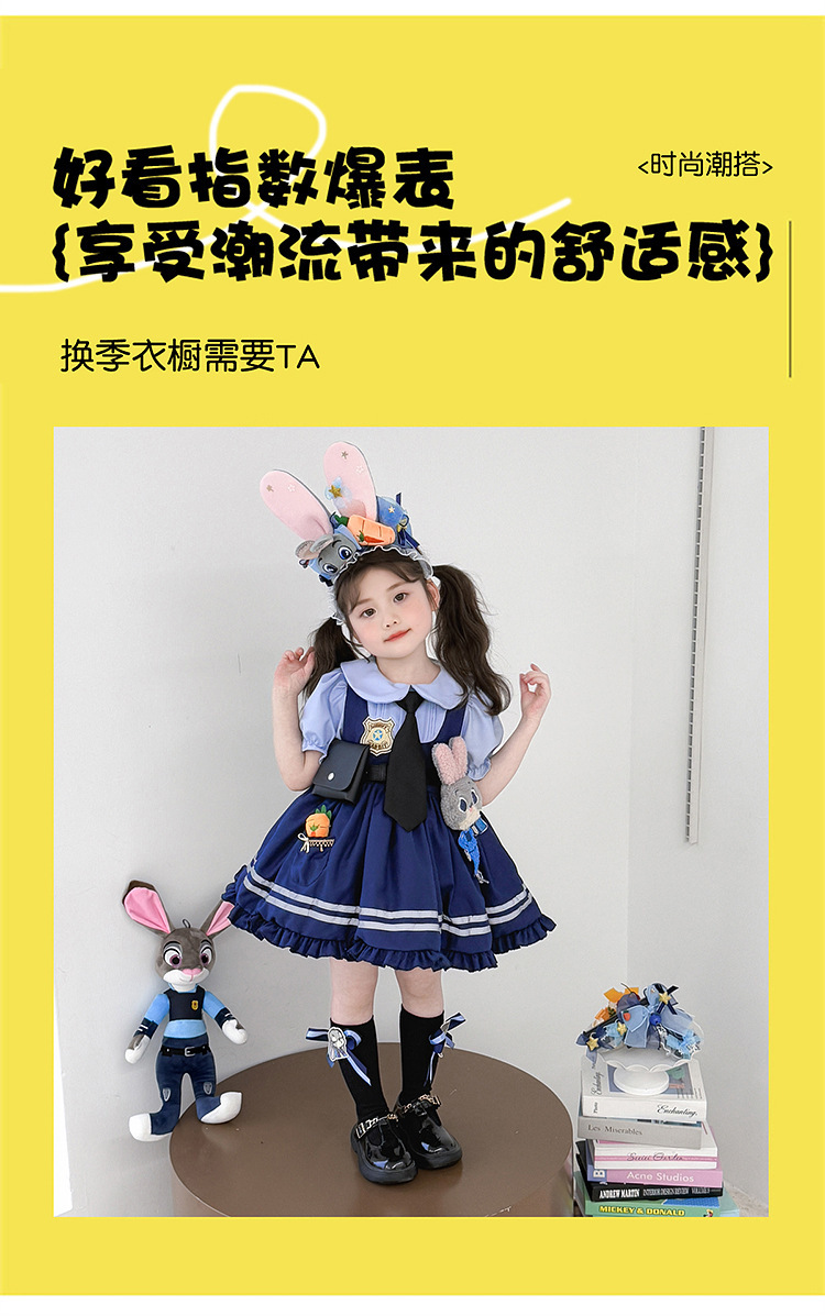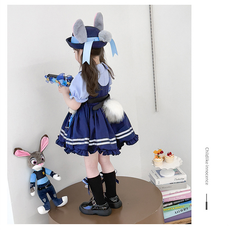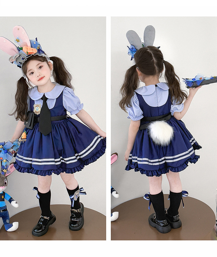 女童兔子警官公主裙夏季新款儿童卡通蓬蓬裙生日礼服洛丽塔连衣裙
