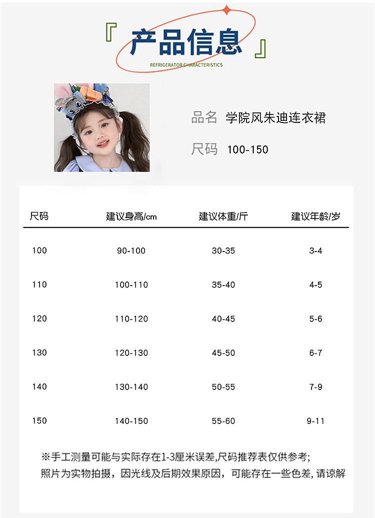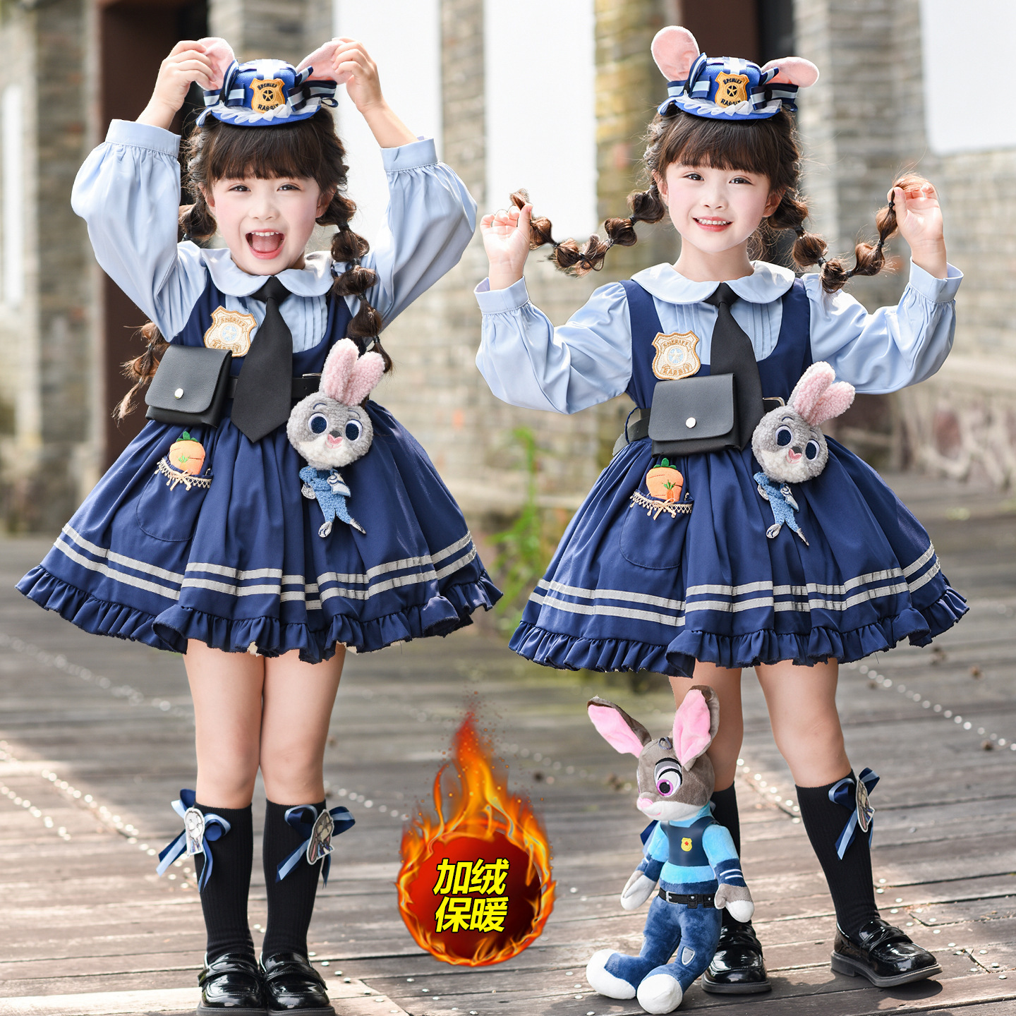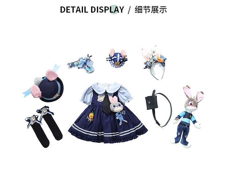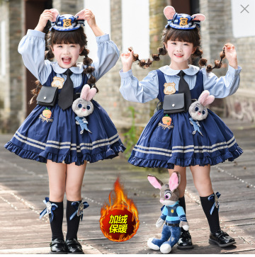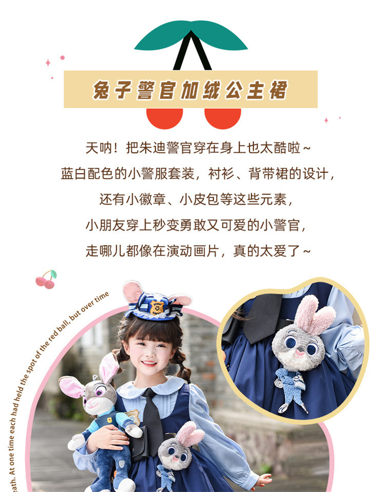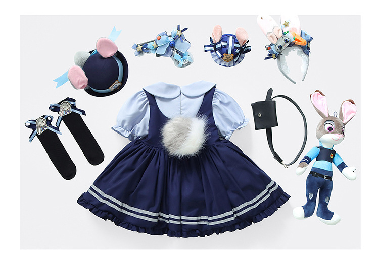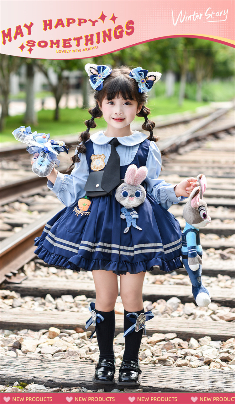 女童兔子警官公主裙夏季新款儿童卡通蓬蓬裙生日礼服洛丽塔连衣裙