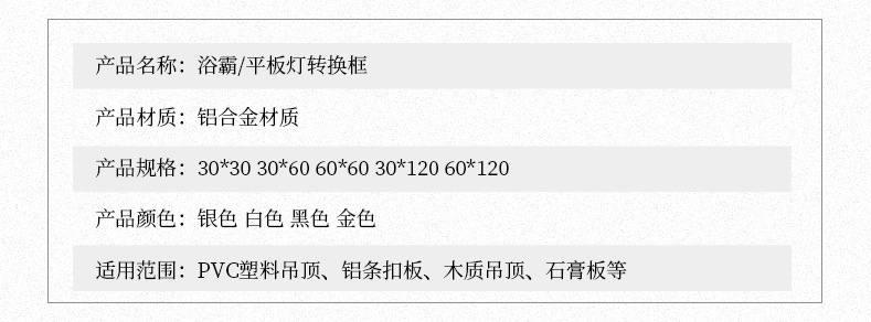 加厚浴霸转换框 平板灯吊顶转换框 石膏板塑料扣板灯框 300×600