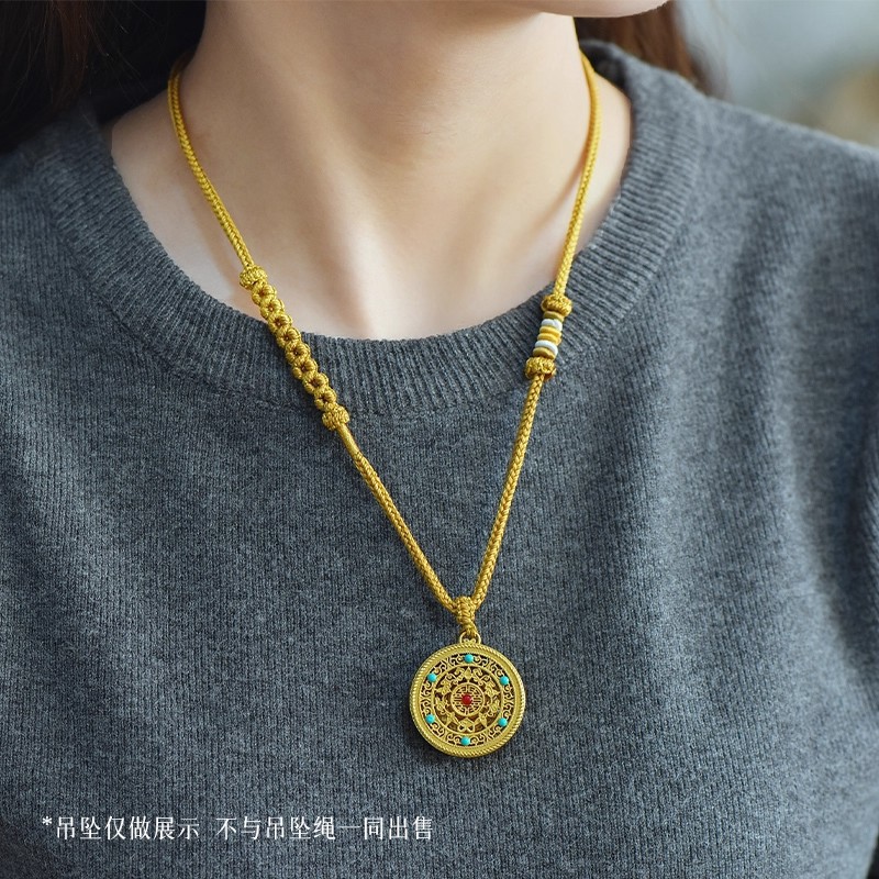 翡翠玉坠手编吊坠绳合香牌平安扣项链绳蜜蜡黄金八宝罗盘吊坠挂绳