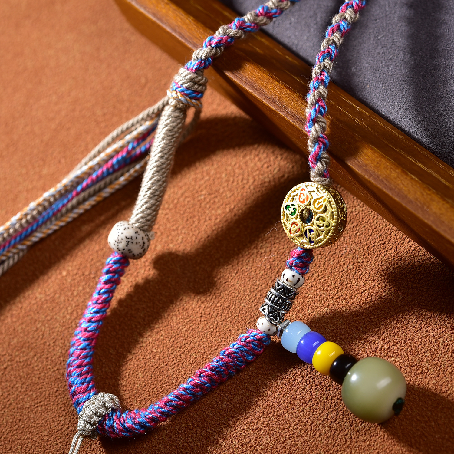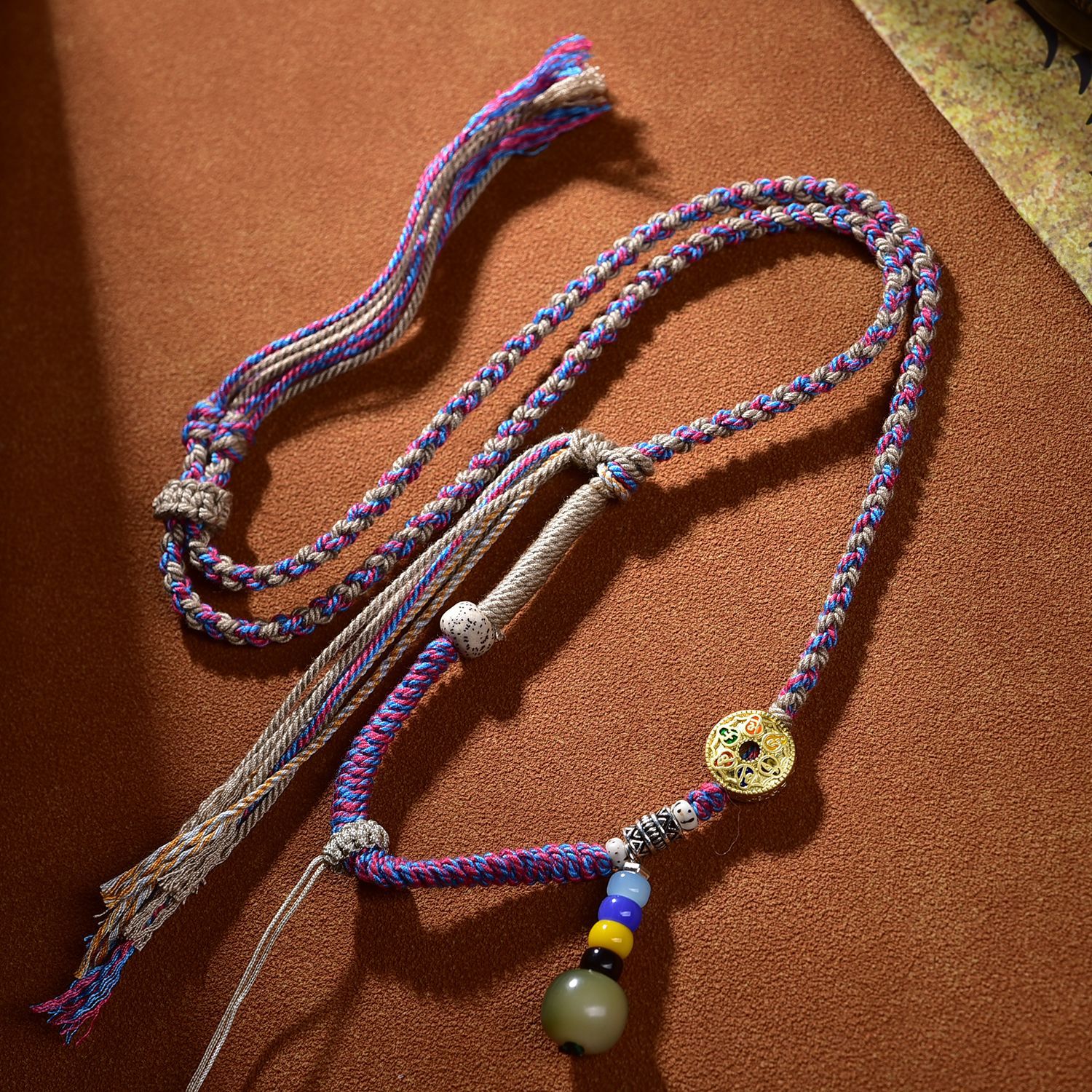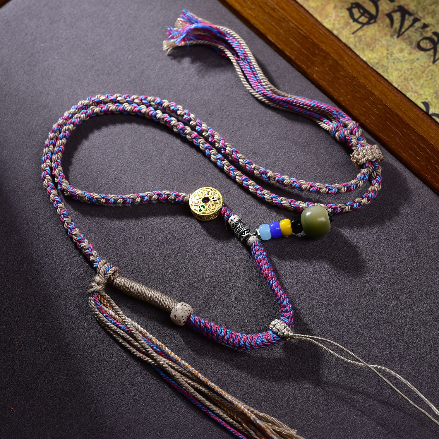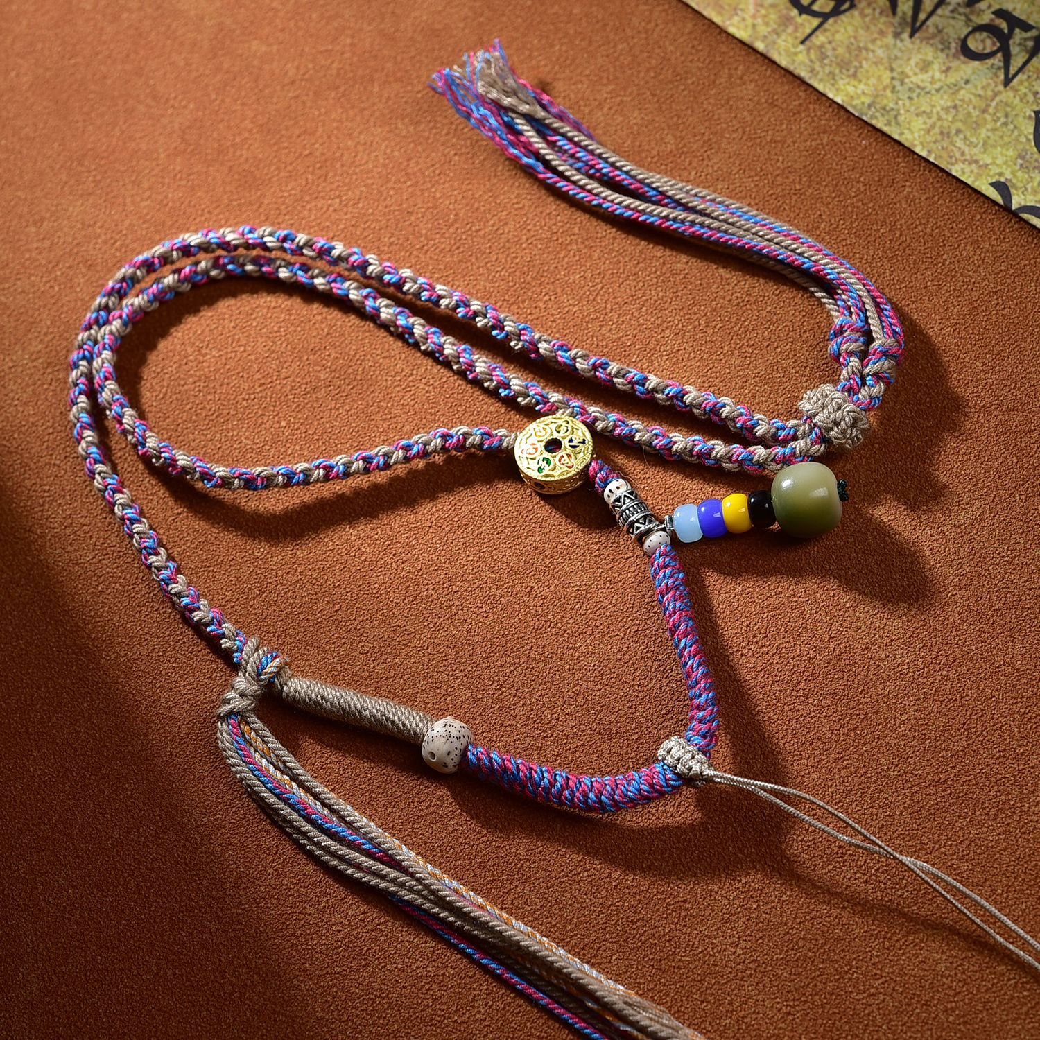 藏式手工编绳唐卡吊坠绳子佛牌高档挂绳蜜蜡项链绳手搓棉线民族风