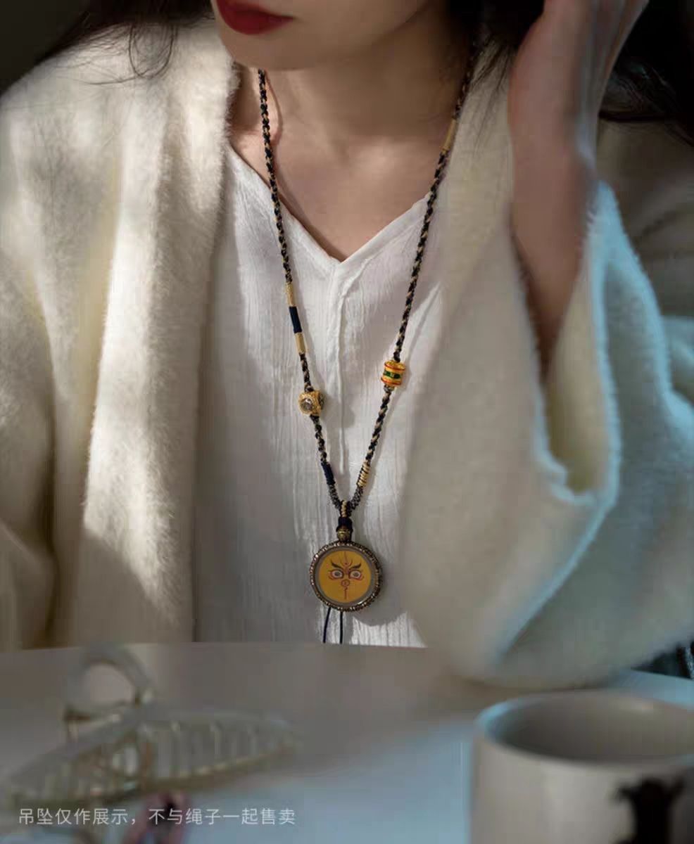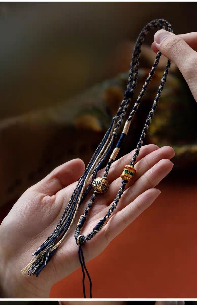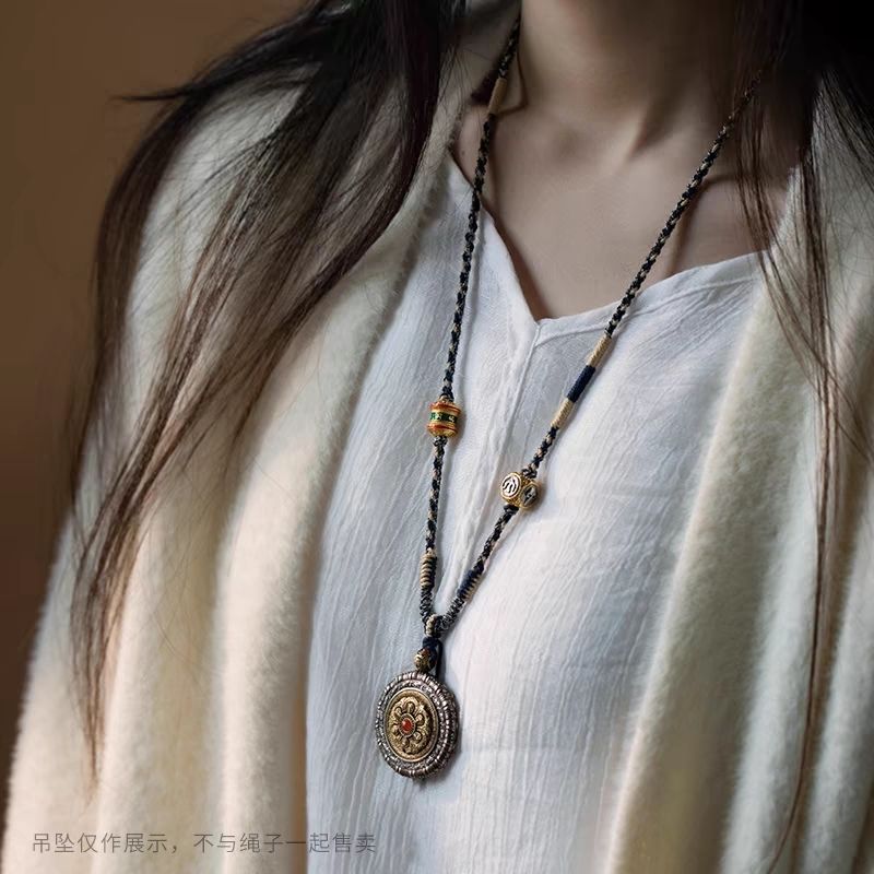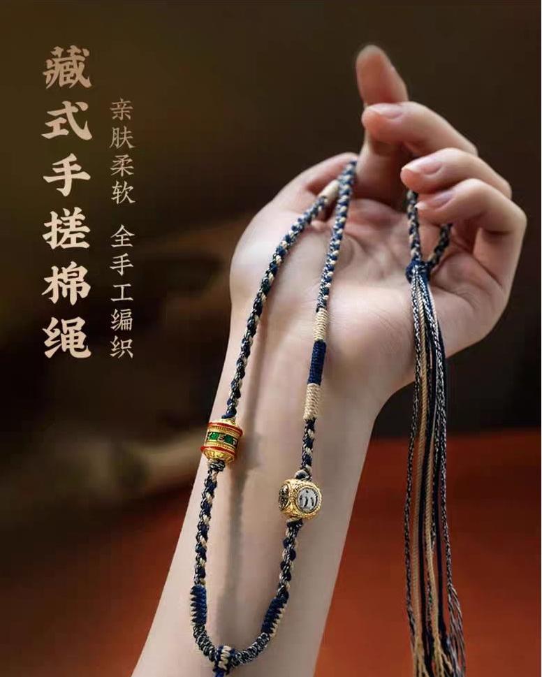 藏式手工编织唐卡吊坠绳佛牌挂脖项链绳手搓棉线六字真言吊坠挂绳
