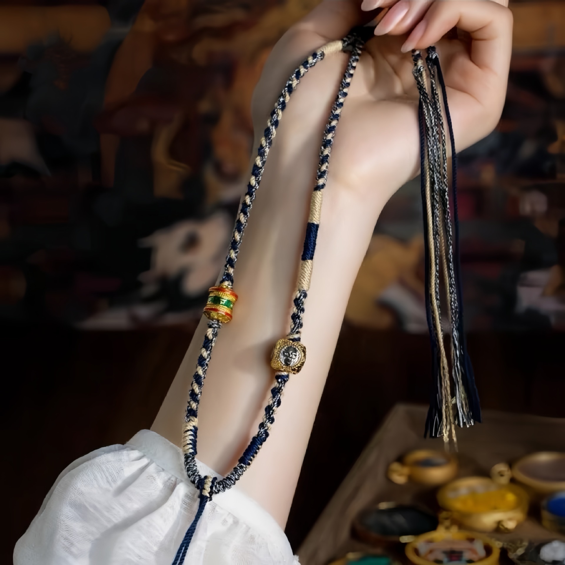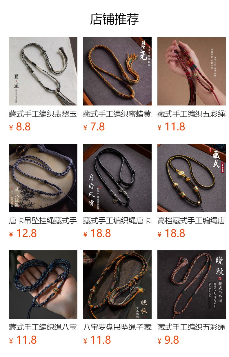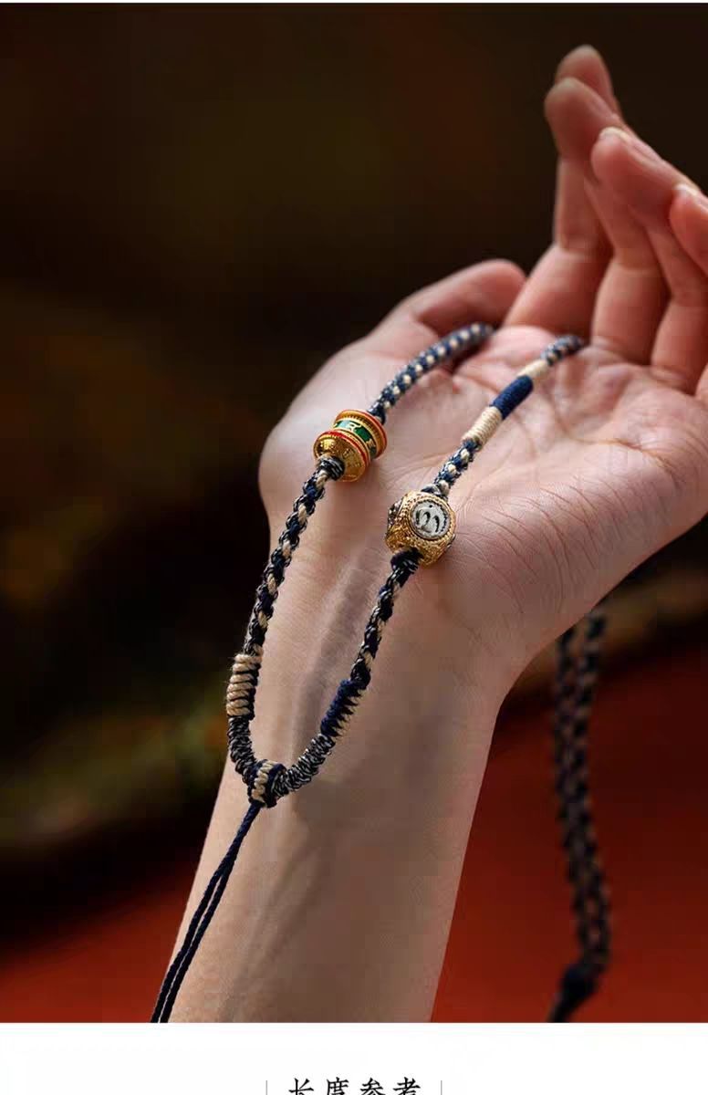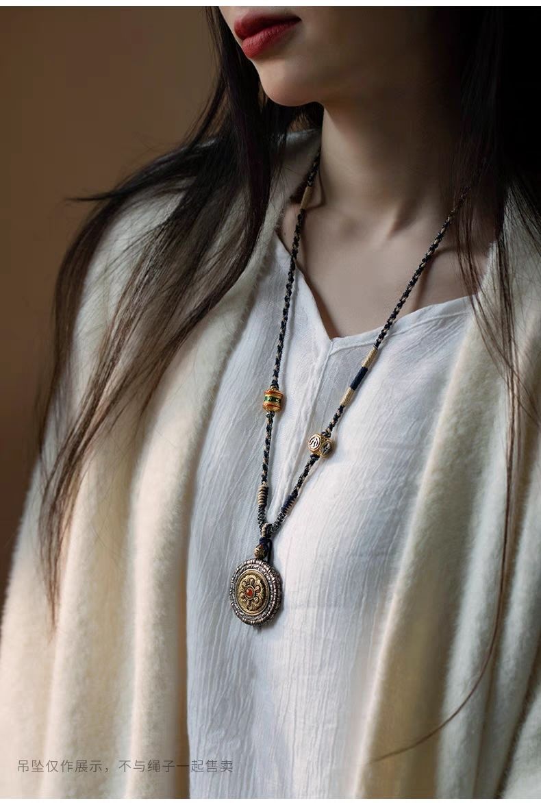 藏式手工编织唐卡吊坠绳佛牌挂脖项链绳手搓棉线六字真言吊坠挂绳