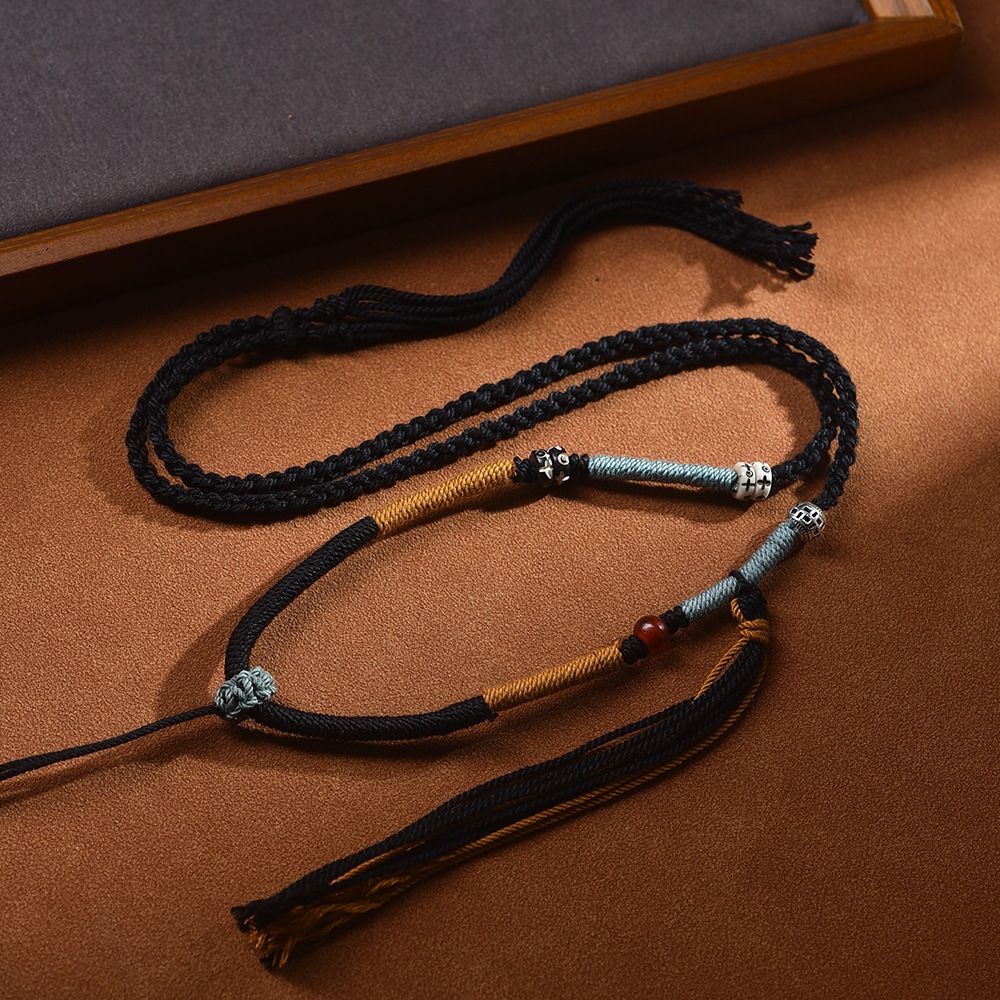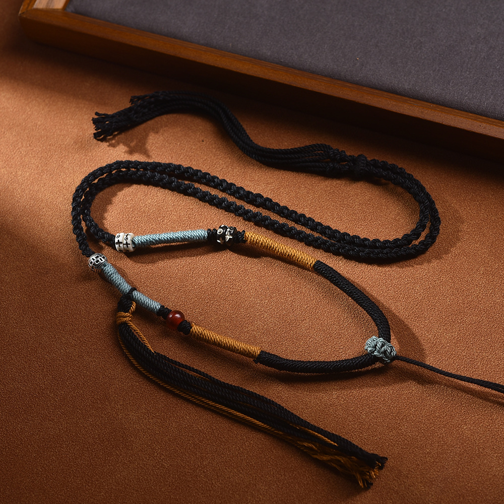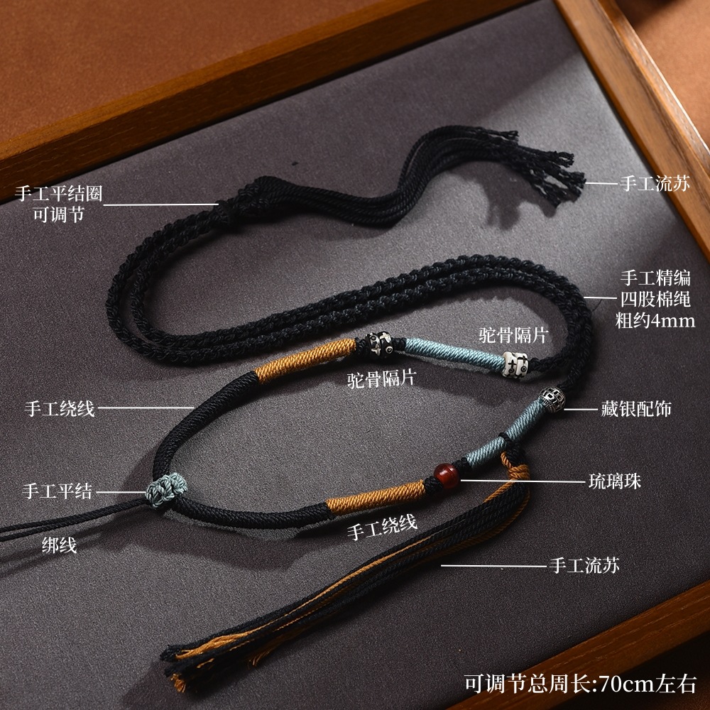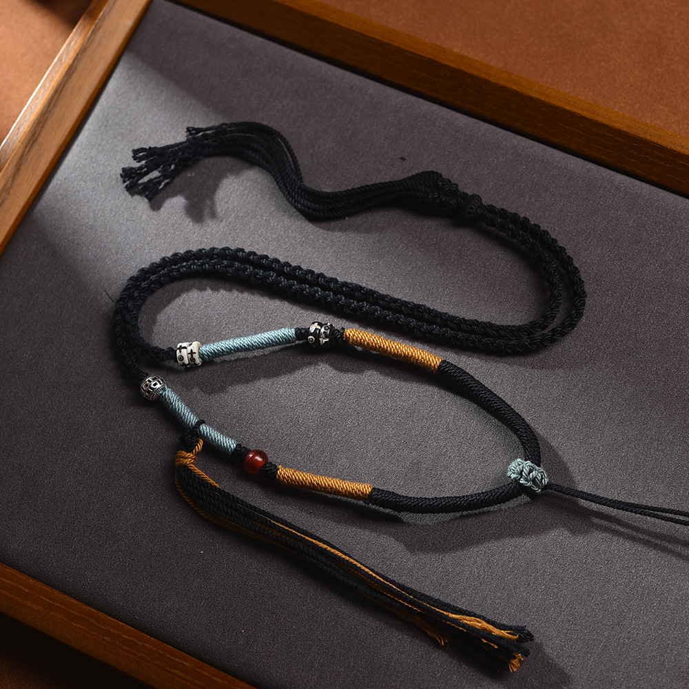 藏式手工编织绳唐卡吊坠绳天珠佛牌项链绳蜜蜡朱砂挂绳毛衣链黑绳