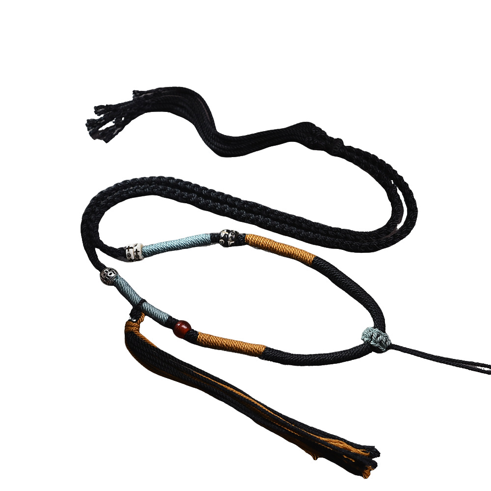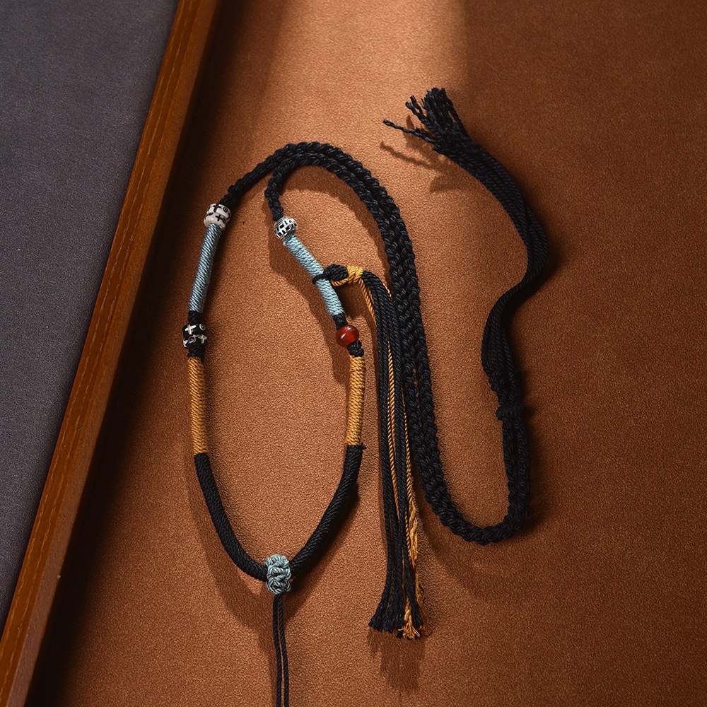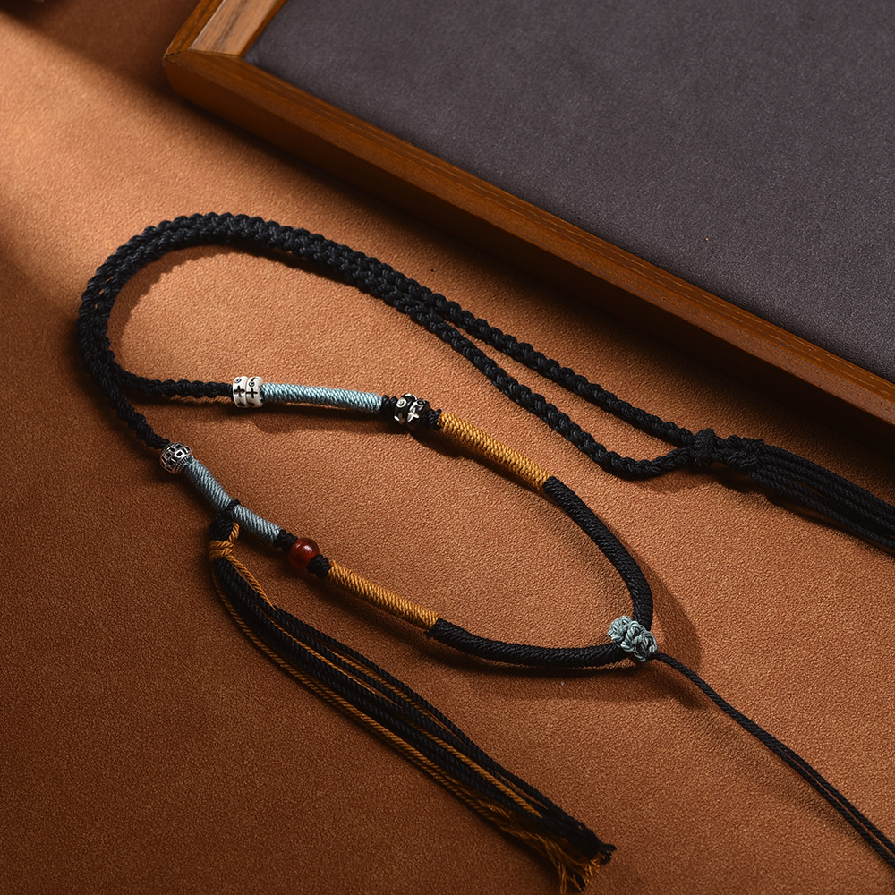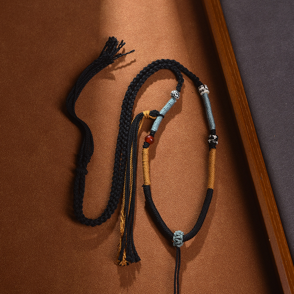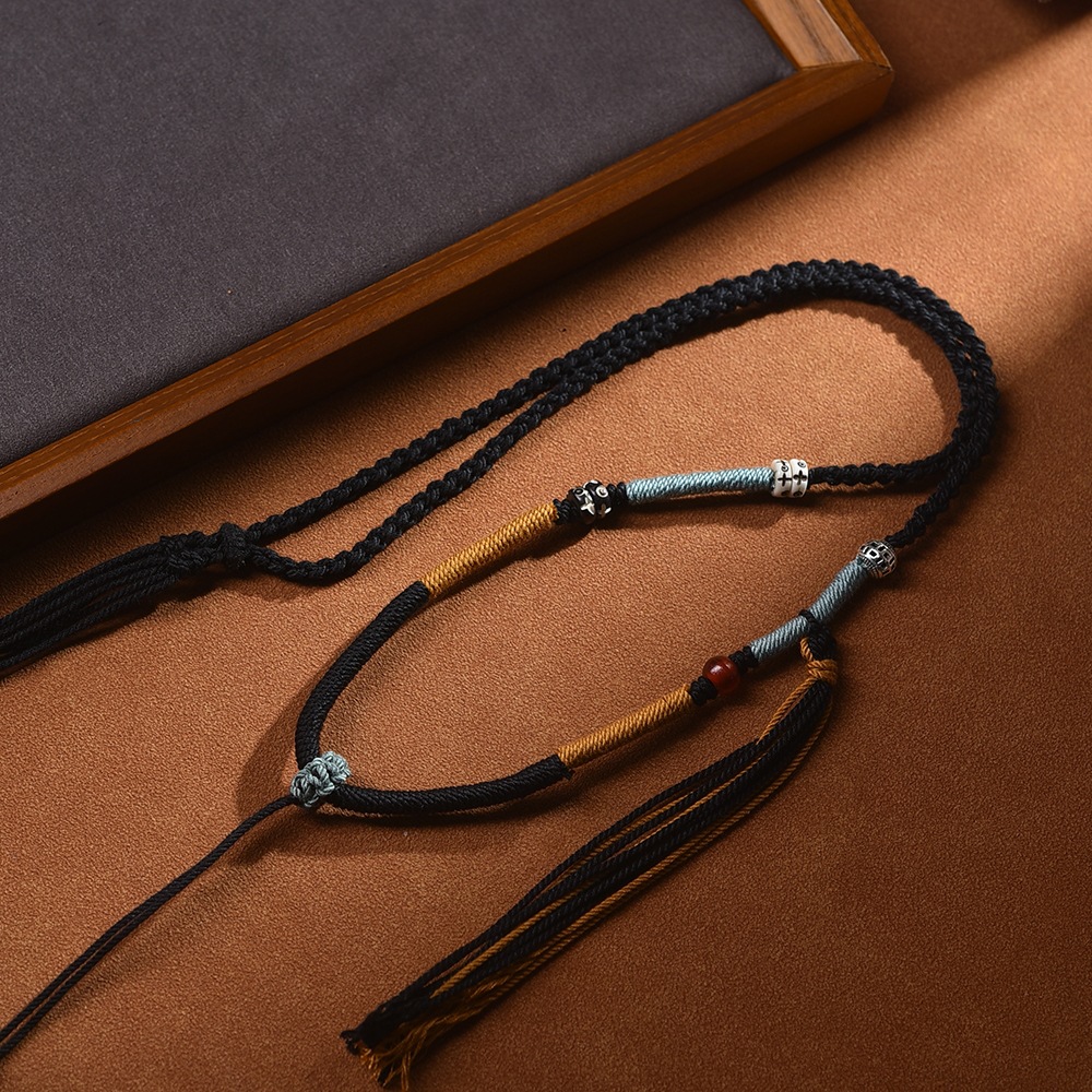 藏式手工编织绳唐卡吊坠绳天珠佛牌项链绳蜜蜡朱砂挂绳毛衣链黑绳