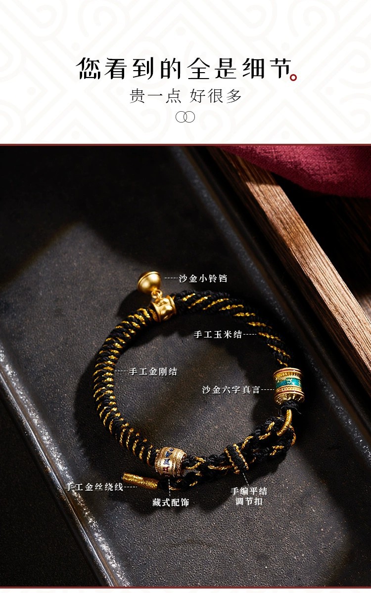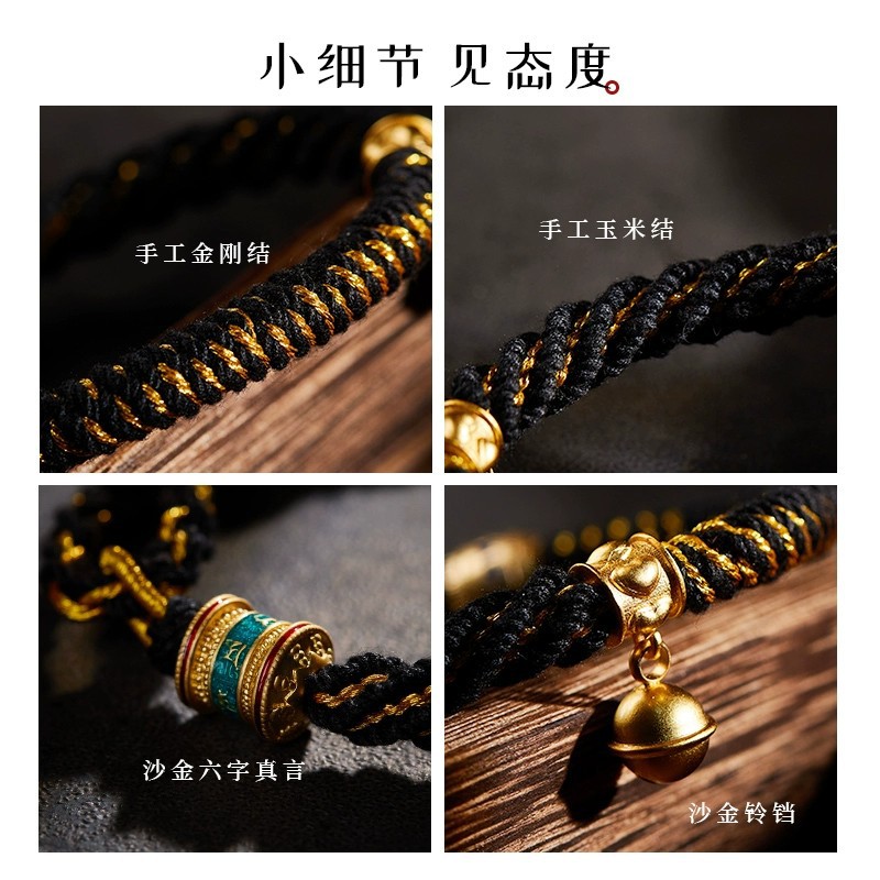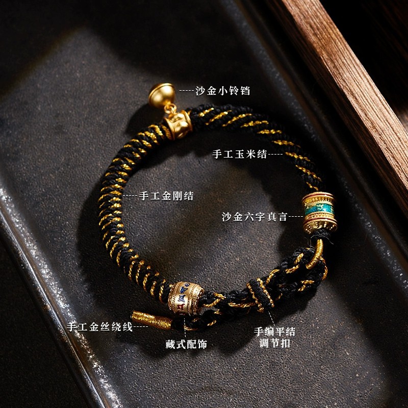 藏式手绳纯手工编织绳六字真言藏风本命年手链情侣款民族风可调节