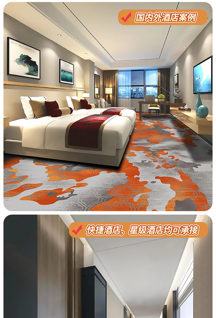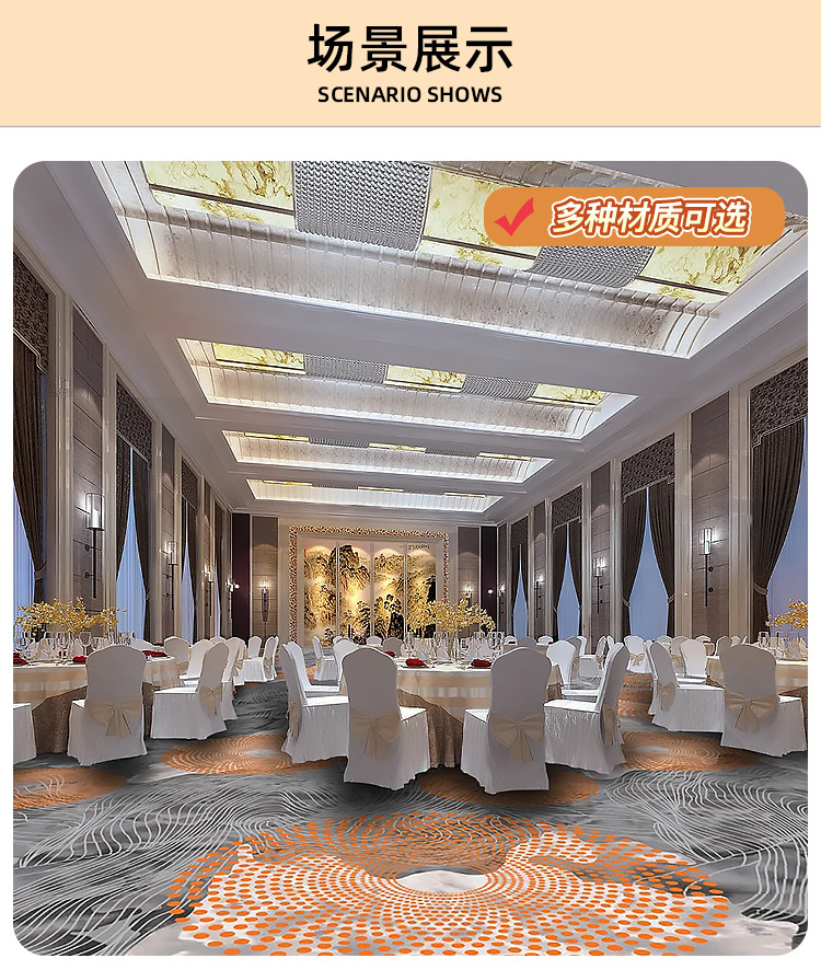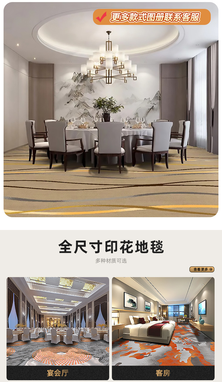 酒店地毯满铺阿克明羊毛大面积全铺宴会厅定制印花阻燃防火加厚