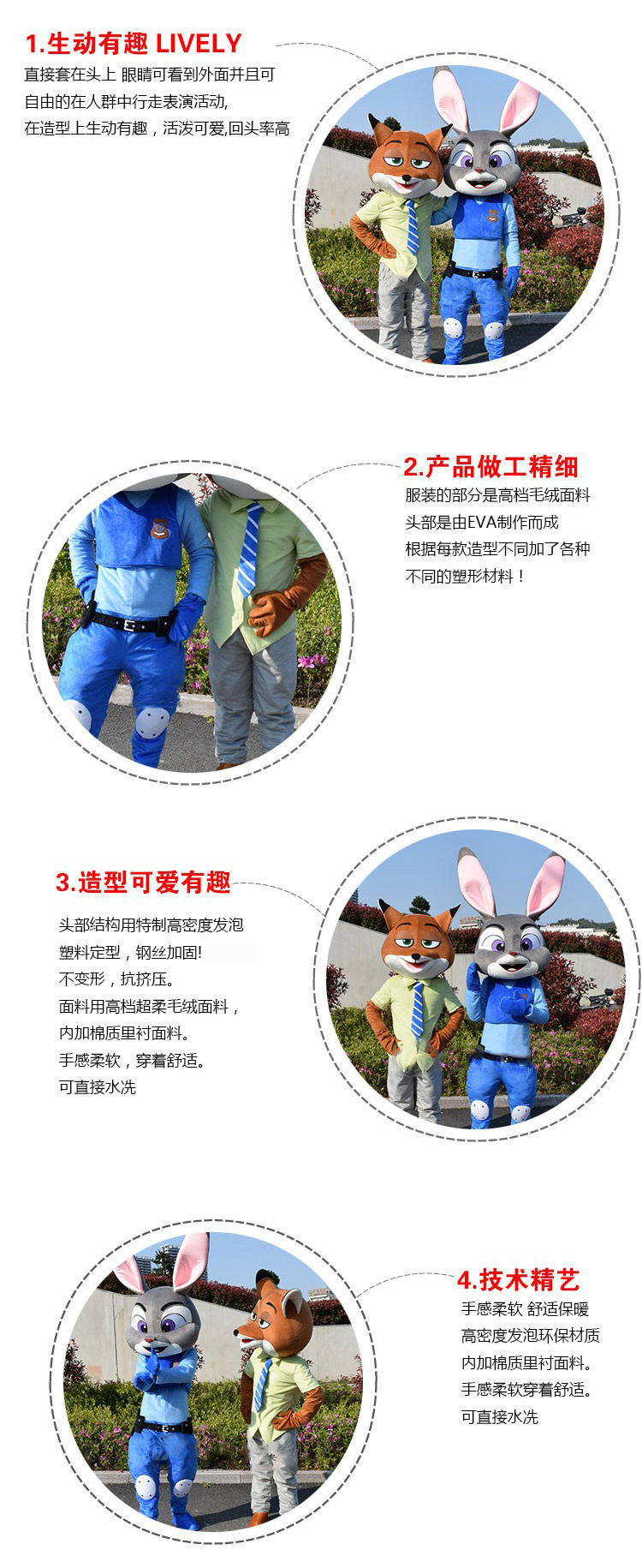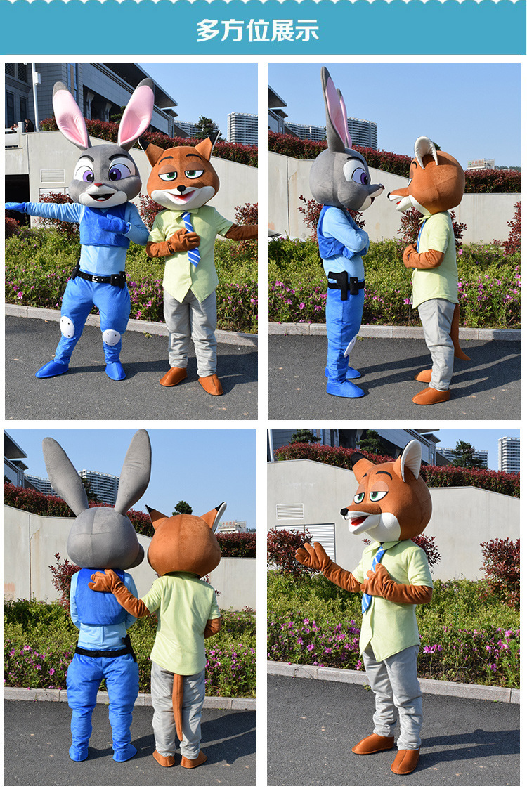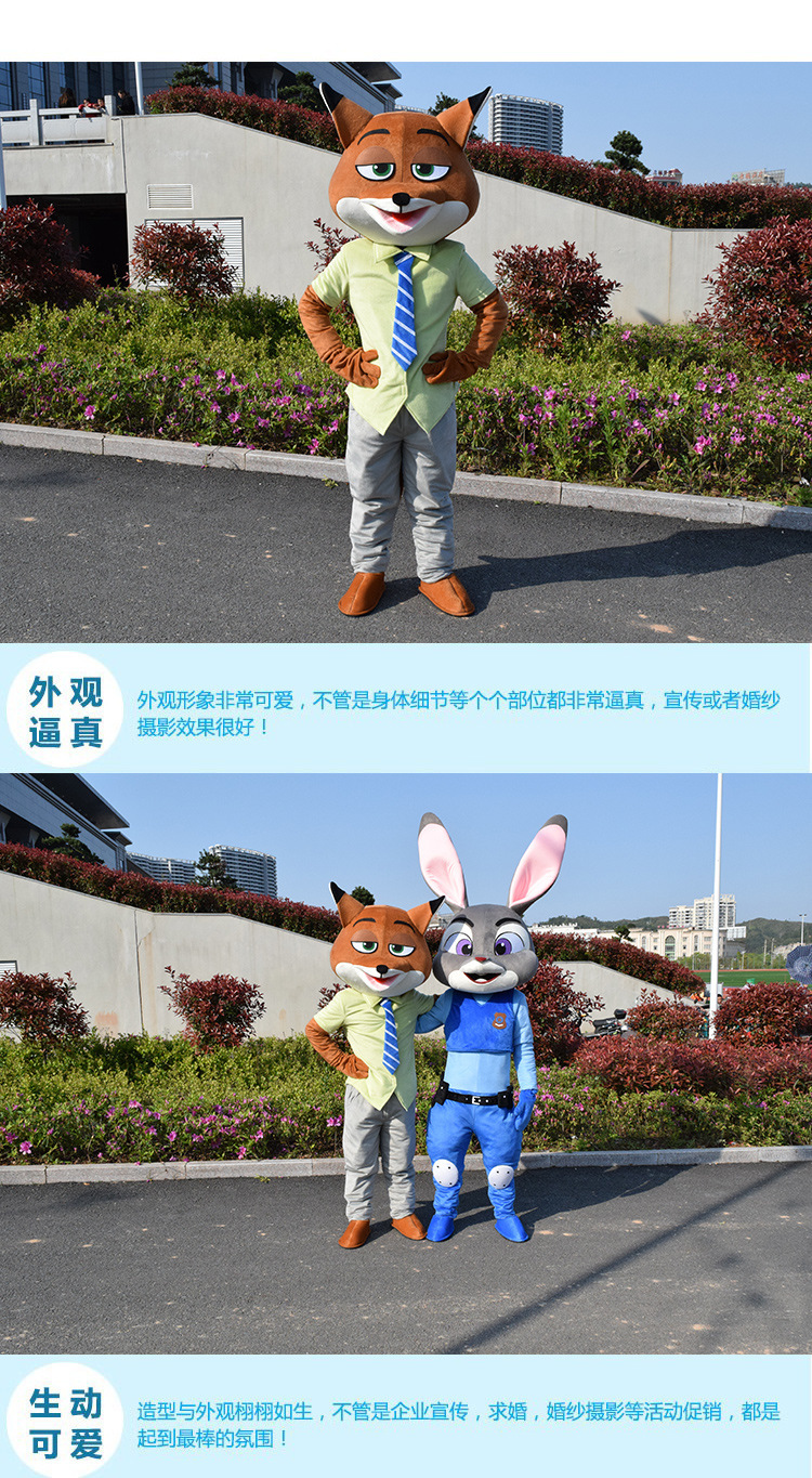 疯狂动物城朱迪尼克闪电卡通人偶服装兔子狐狸树懒行走演出动漫服