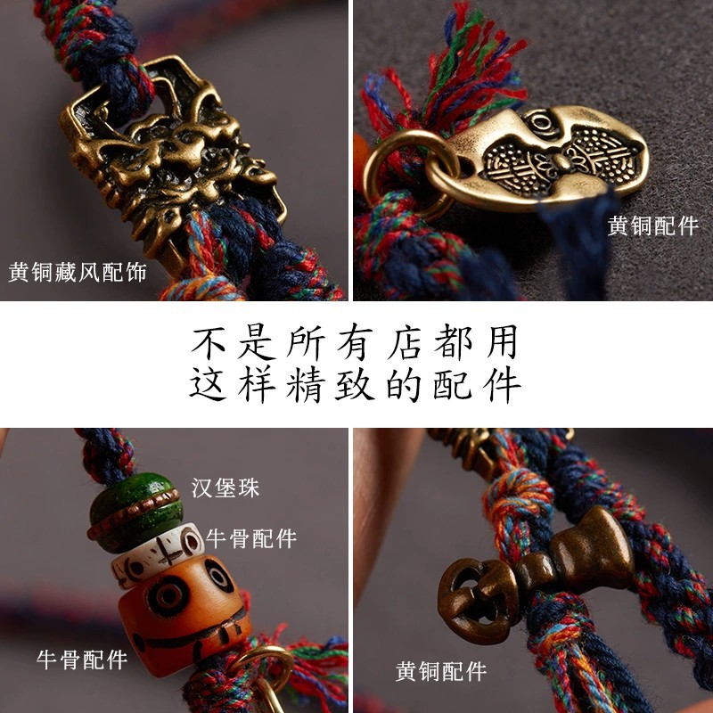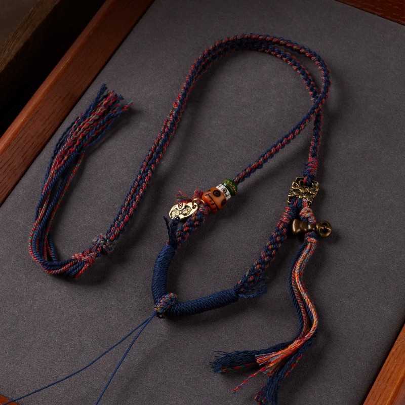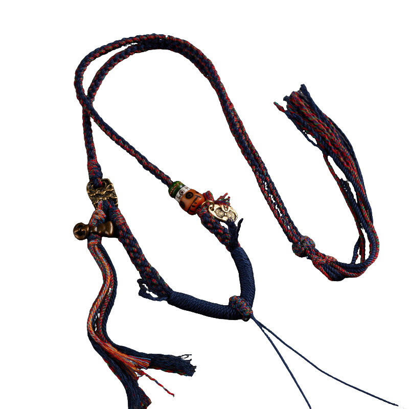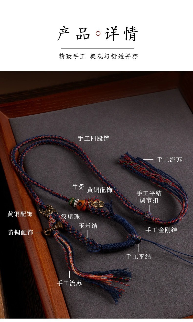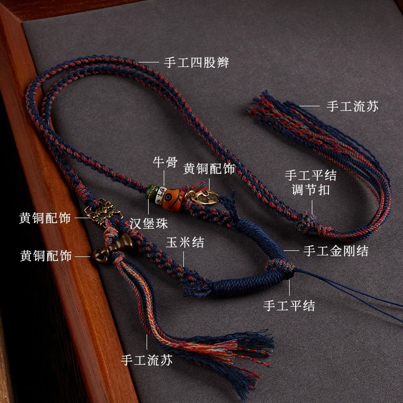 藏式纯手工编织四股绳唐卡吊坠绳佛牌项链绳蜜蜡玉石挂件绳毛衣链
