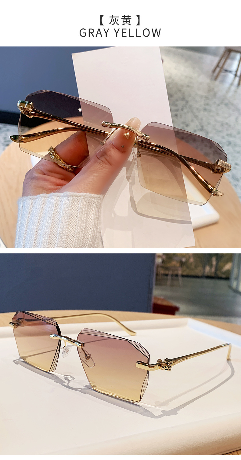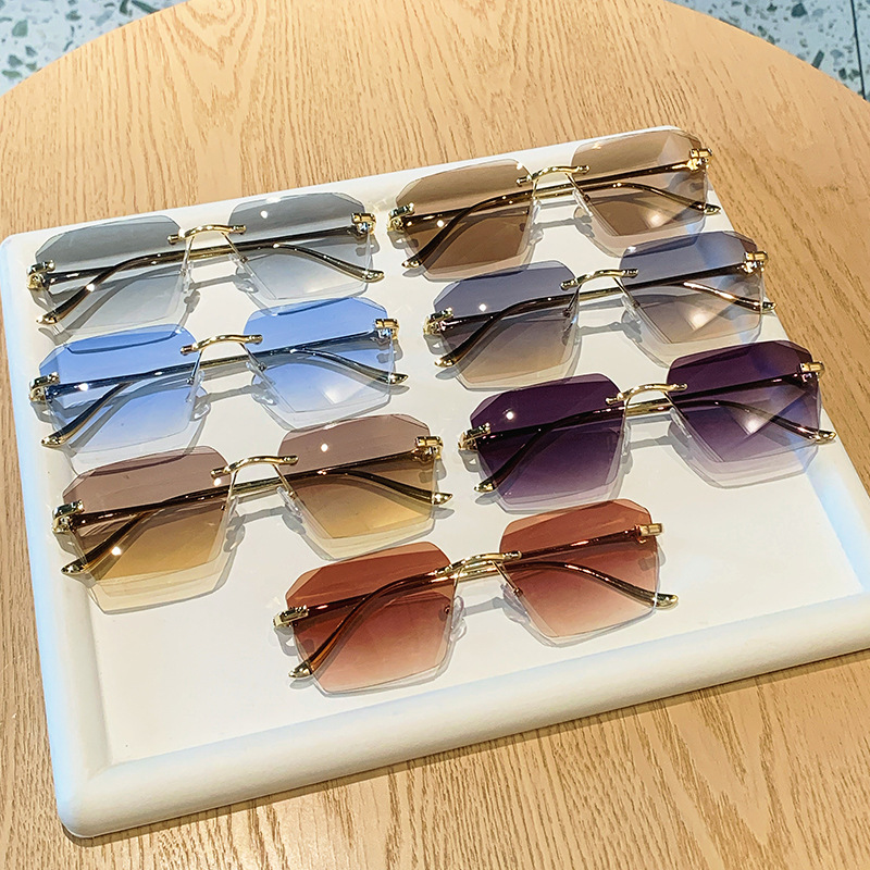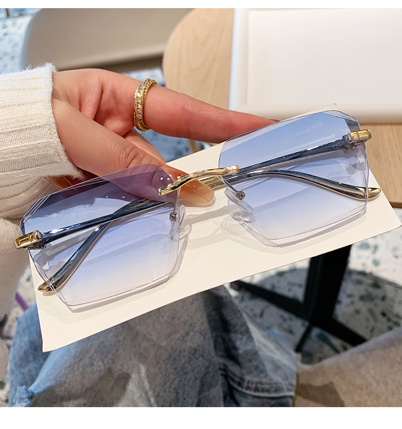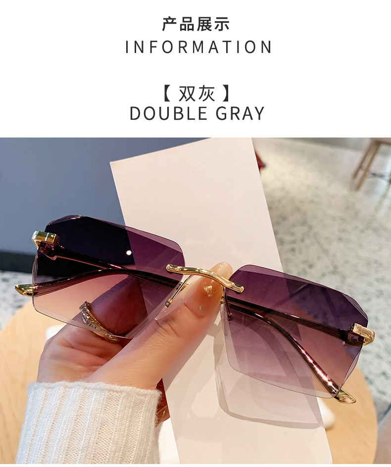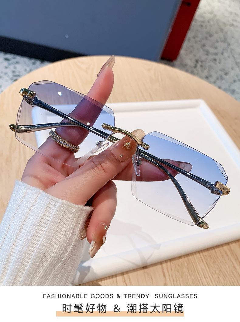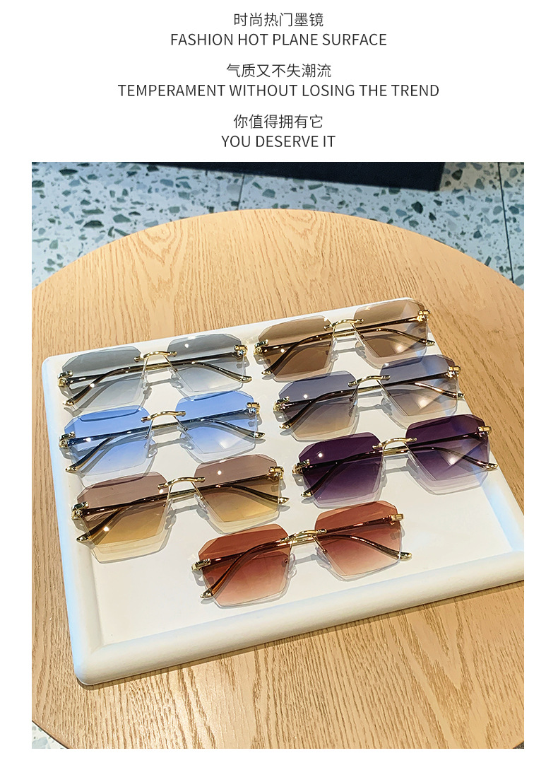2026新款无框金属太阳镜方形墨镜条纹镜片设计感太阳镜