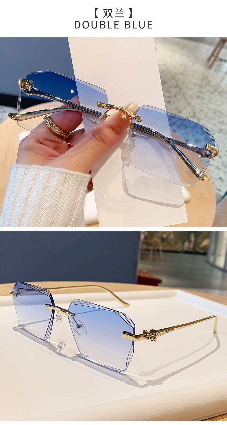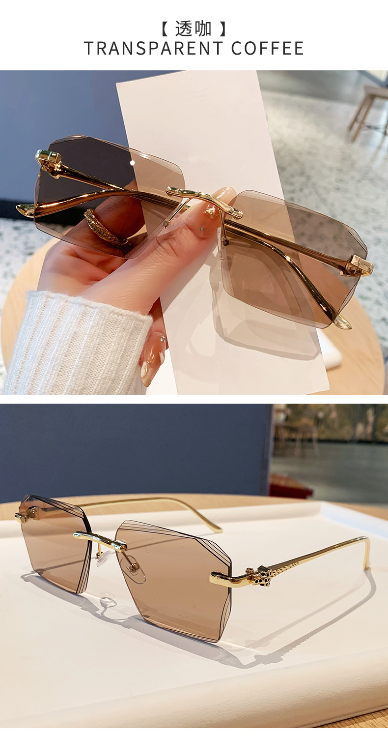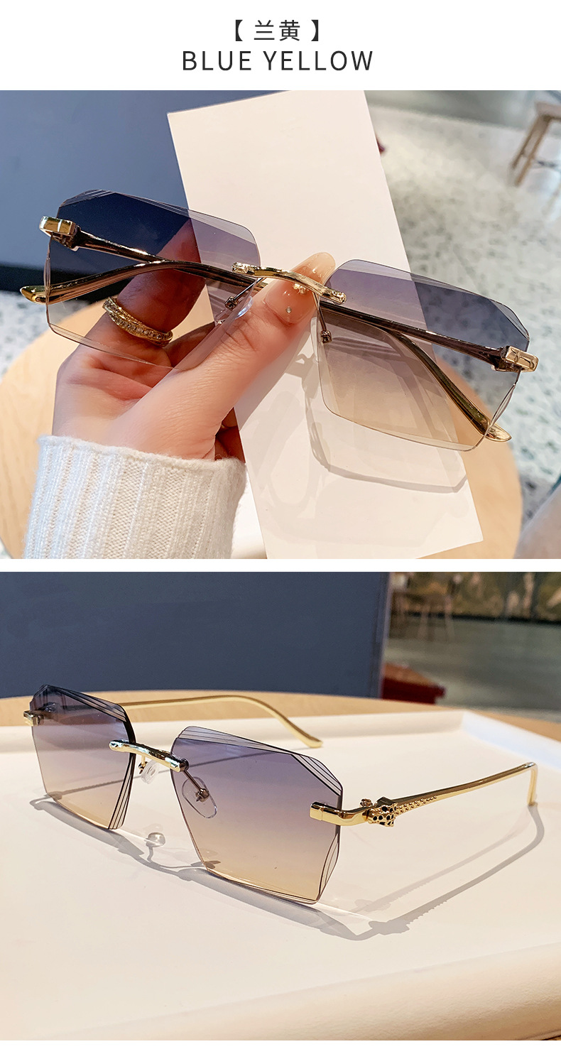 2026新款无框金属太阳镜方形墨镜条纹镜片设计感太阳镜