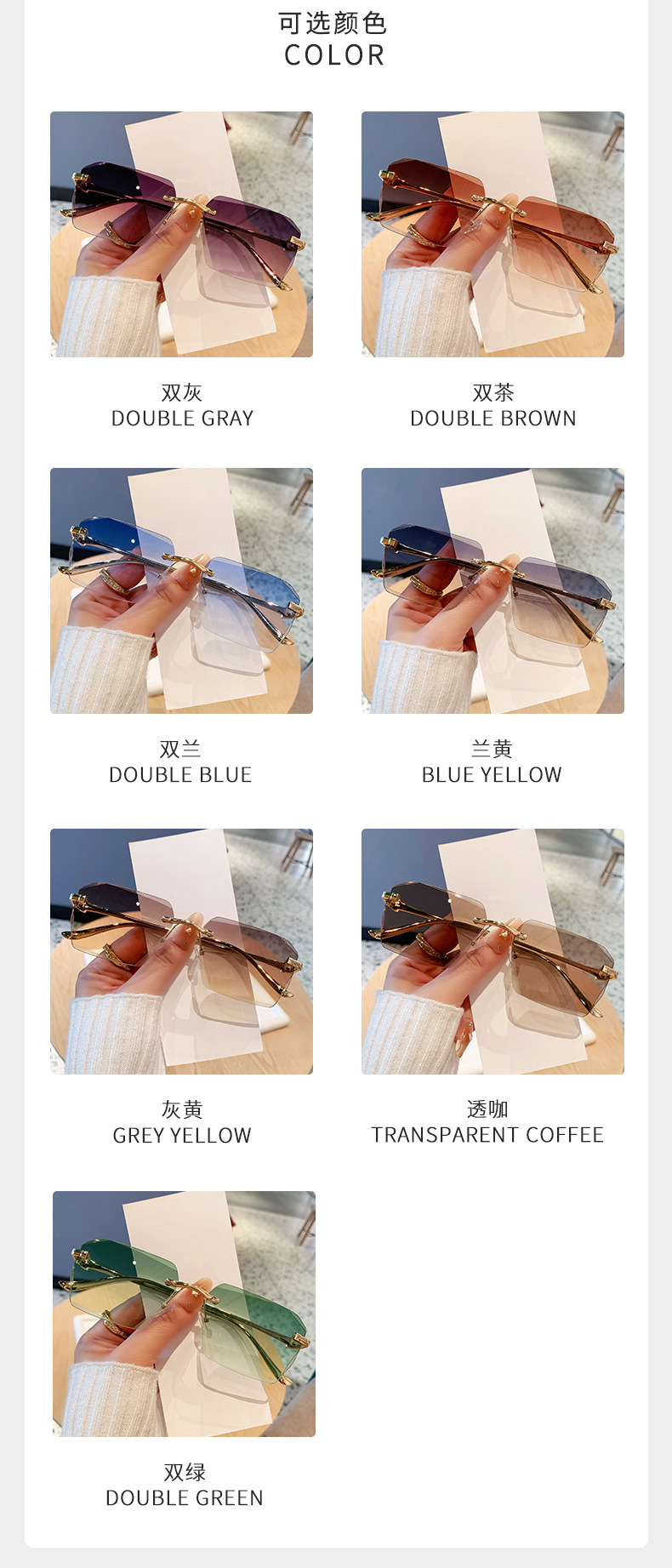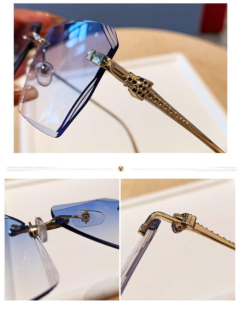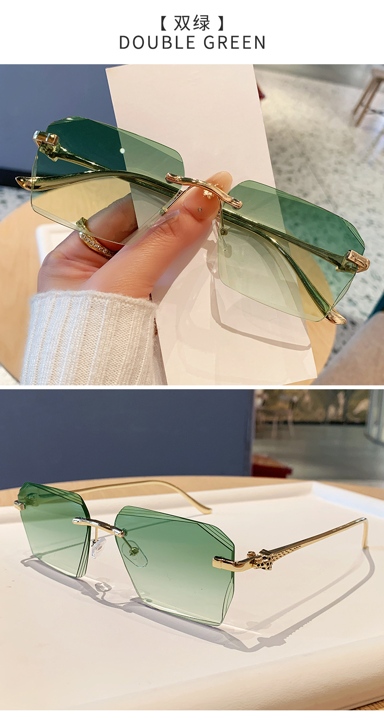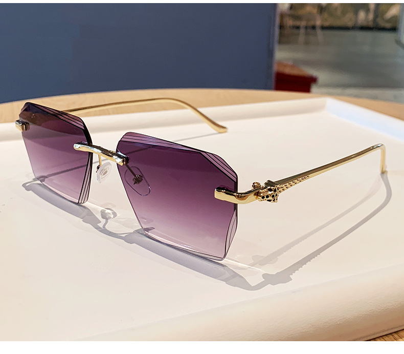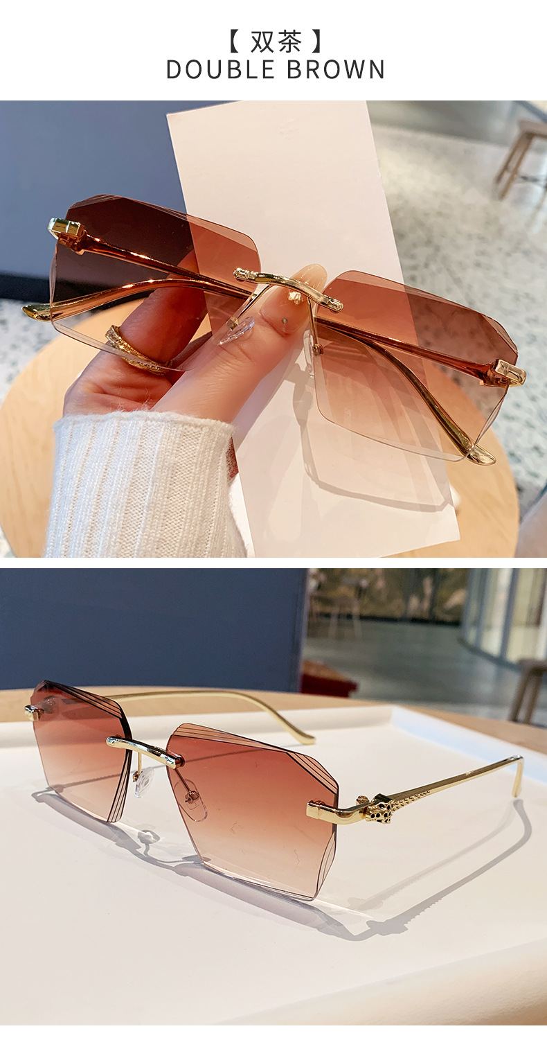 2026新款无框金属太阳镜方形墨镜条纹镜片设计感太阳镜