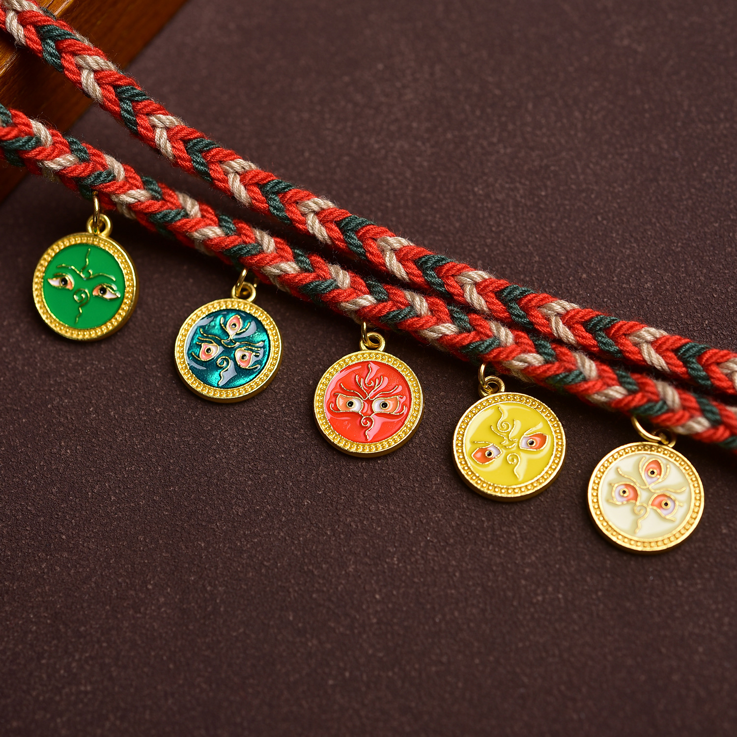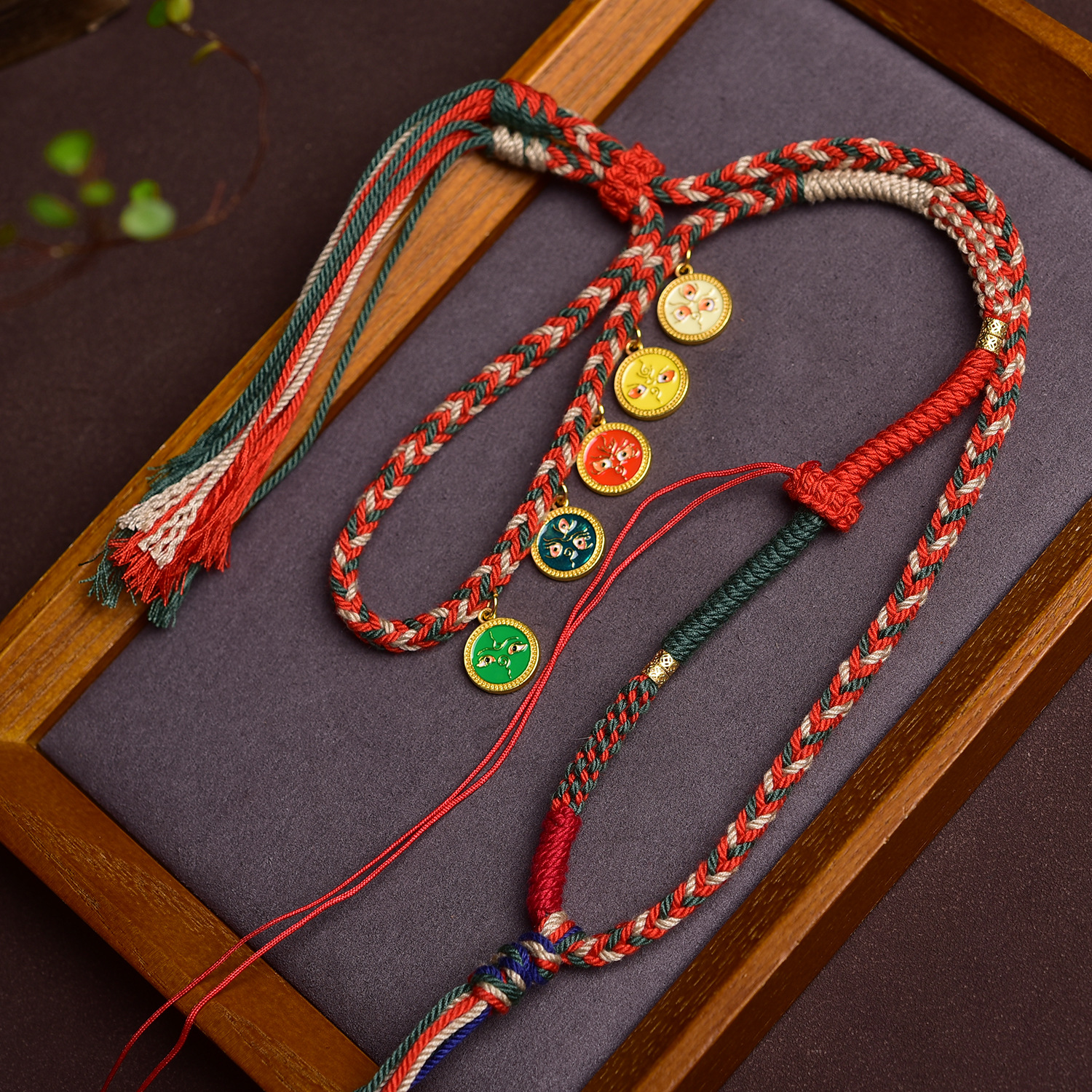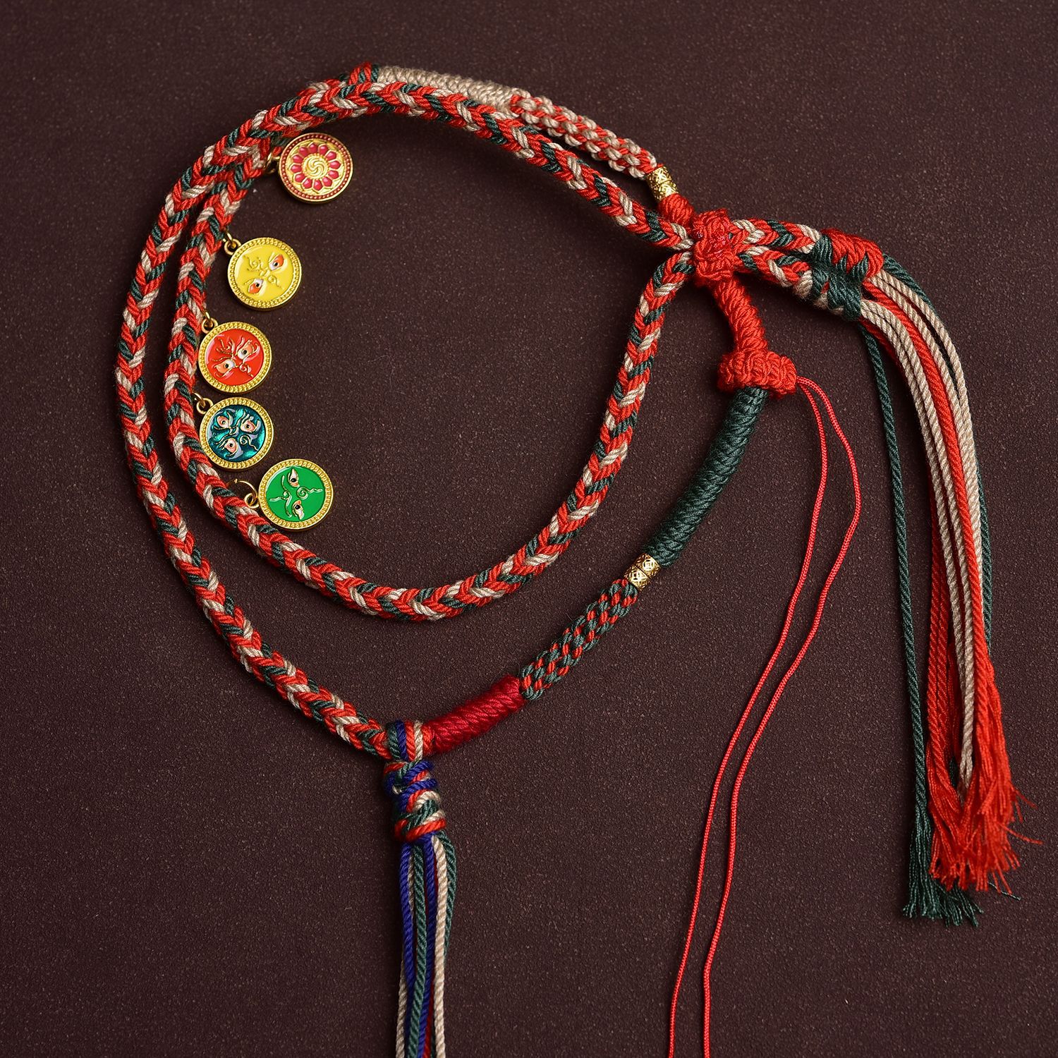 藏式五路财神棉绳项链绳唐蜜蜡卡佛牌玉吊坠绳纯手工编绳高档挂绳