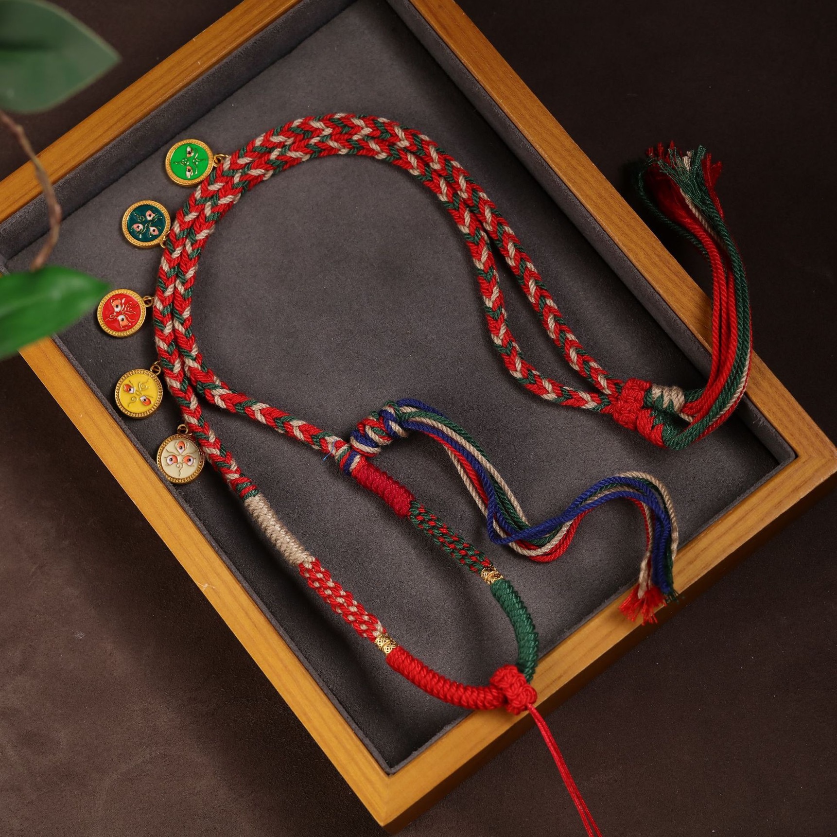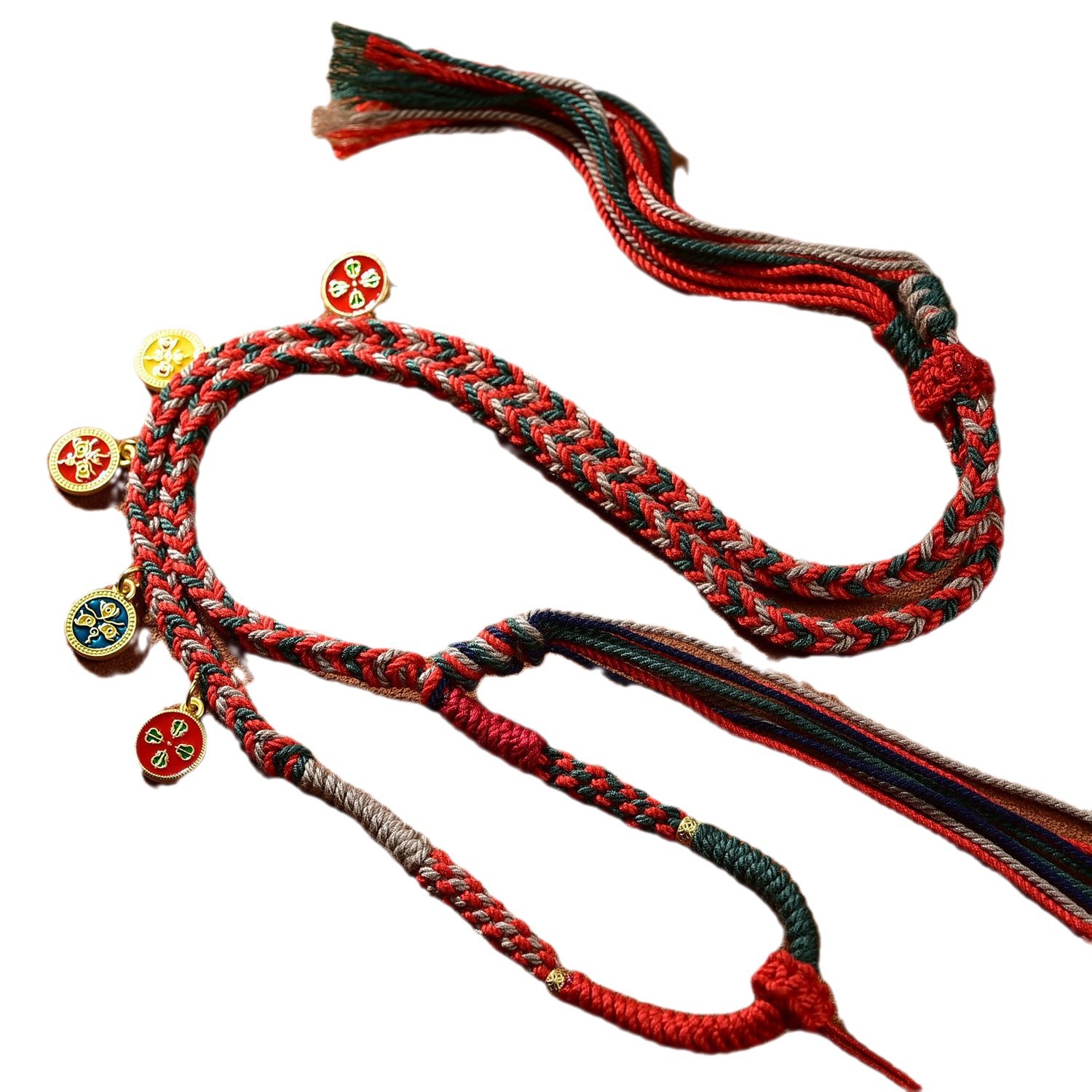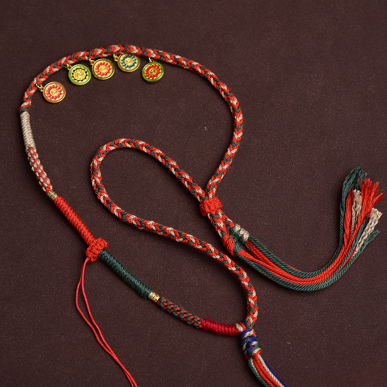 藏式五路财神棉绳项链绳唐蜜蜡卡佛牌玉吊坠绳纯手工编绳高档挂绳