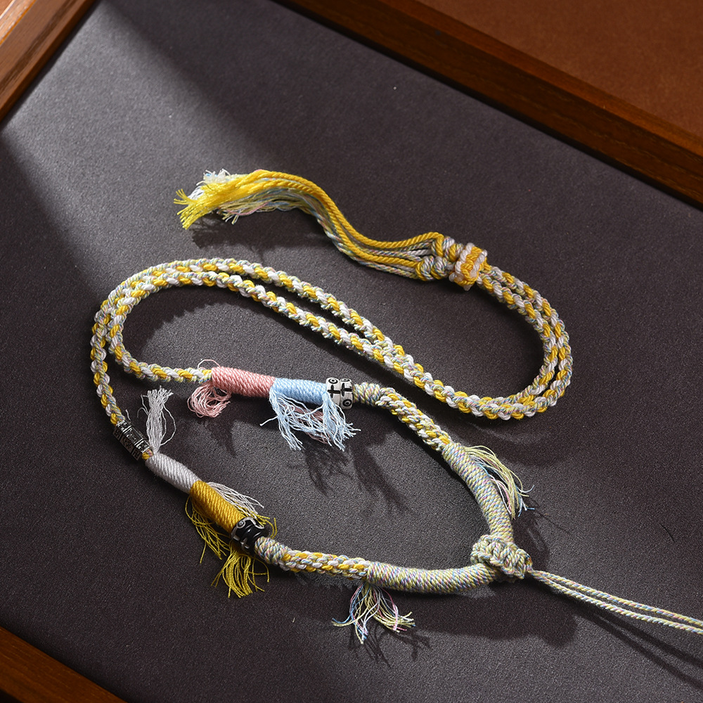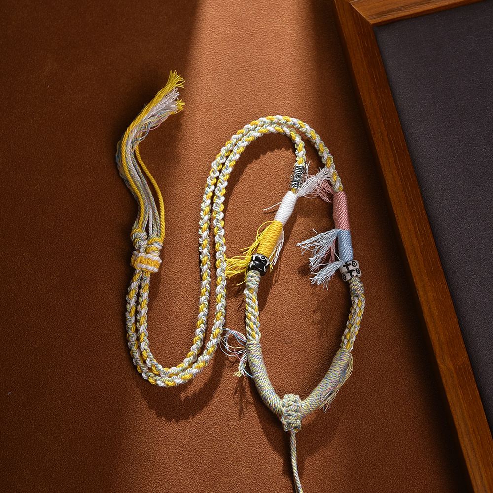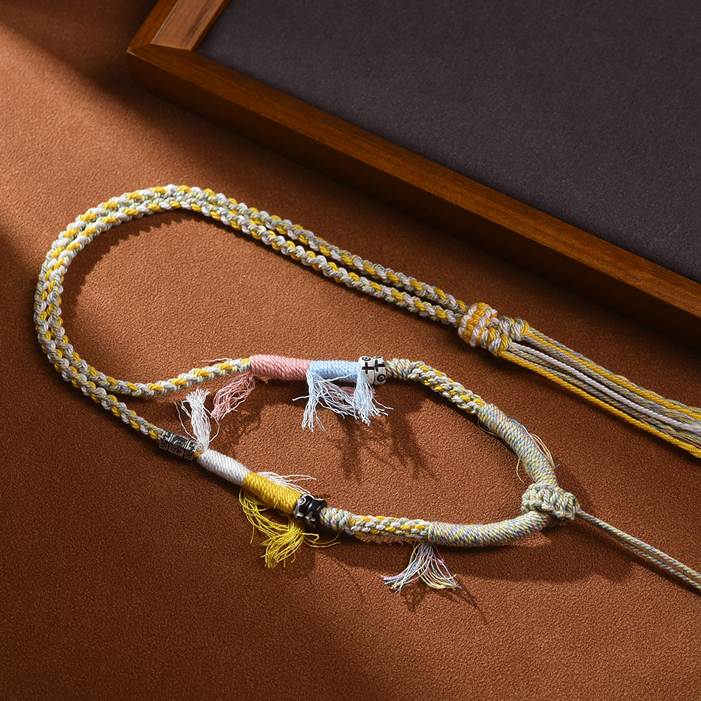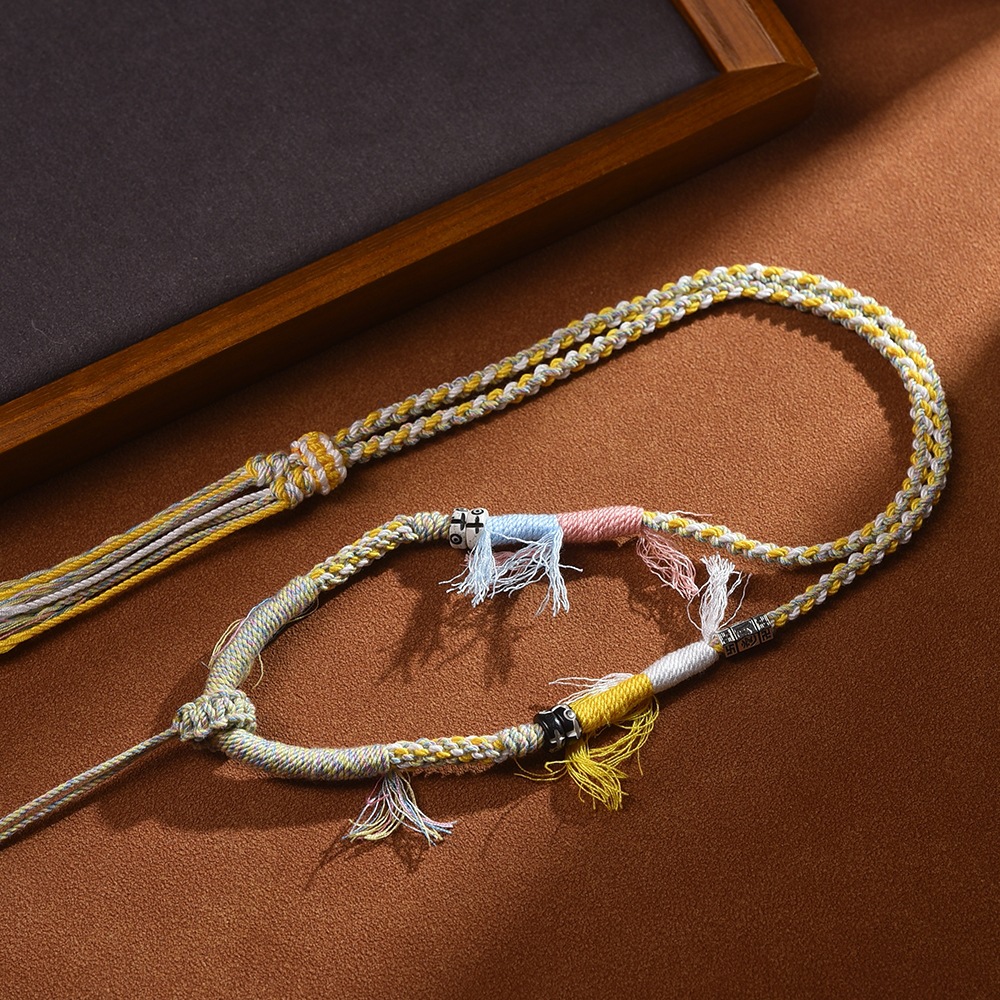 藏式编绳唐卡吊坠绳佛牌项链绳蜜蜡玉石吊坠挂绳手工编织五彩绳子