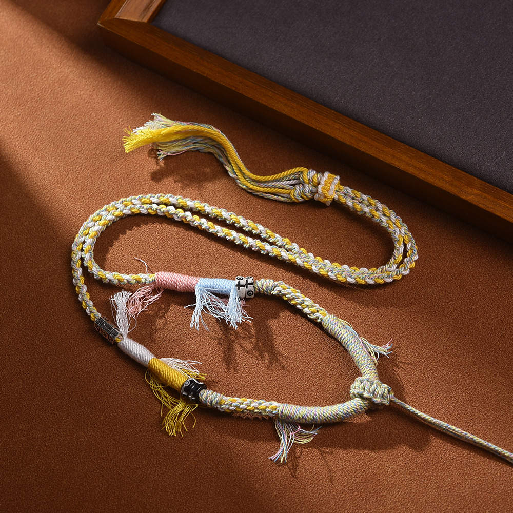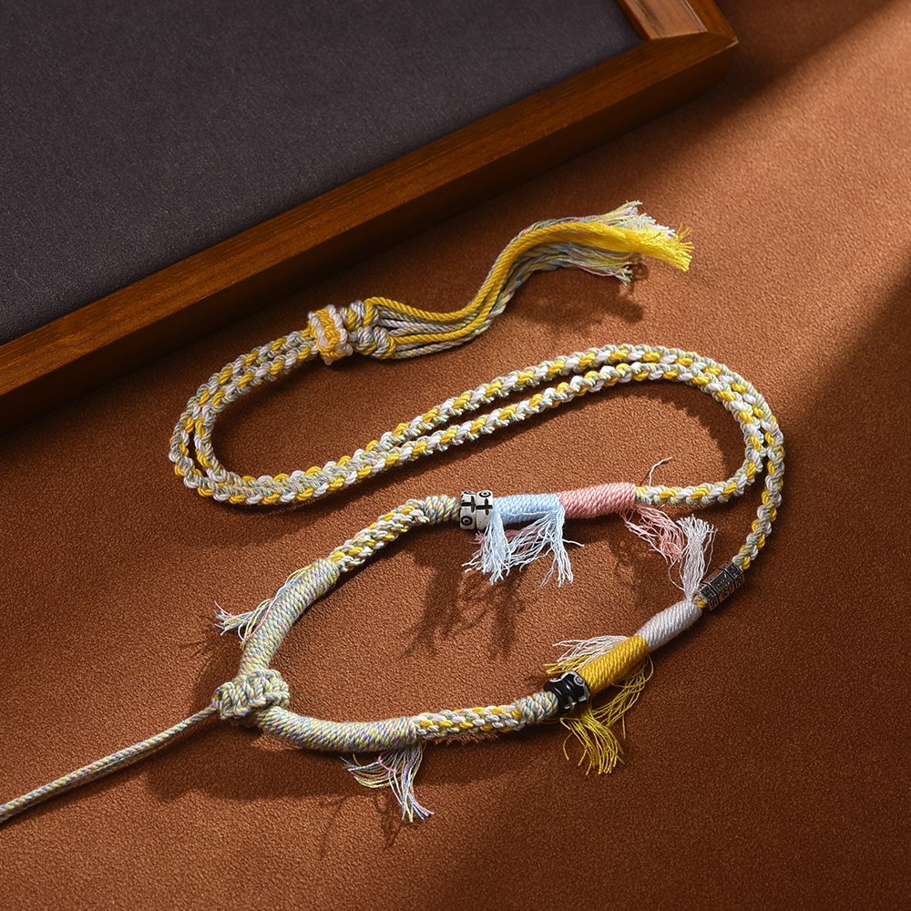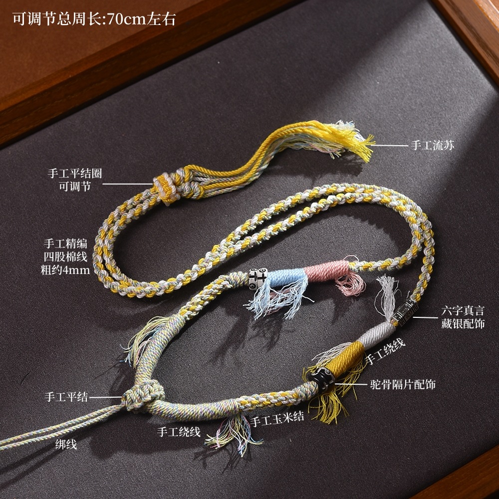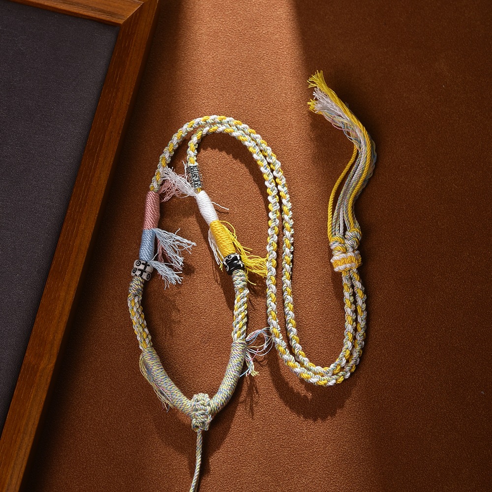 藏式编绳唐卡吊坠绳佛牌项链绳蜜蜡玉石吊坠挂绳手工编织五彩绳子