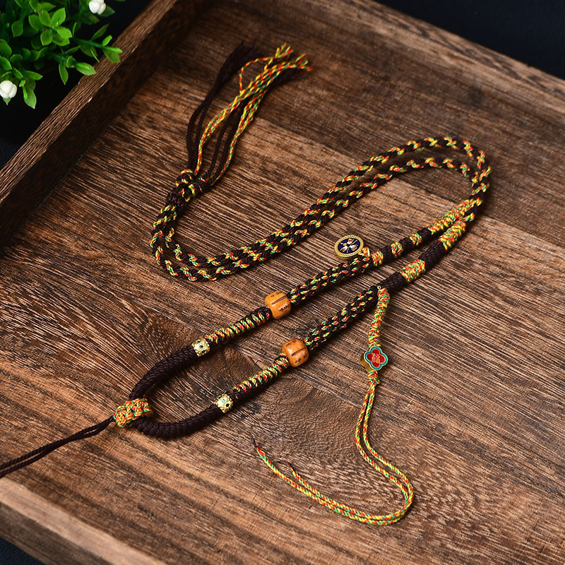 藏式手搓棉绳项链绳唐卡佛牌蜜蜡高档挂绳吊坠绳民族风纯手工编绳