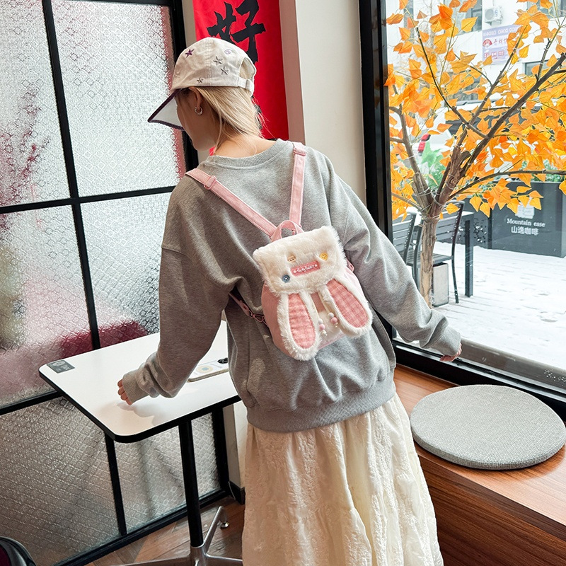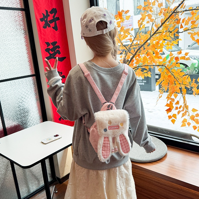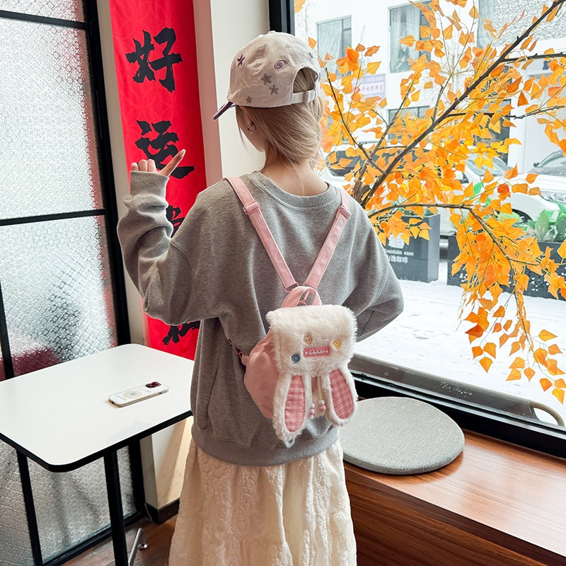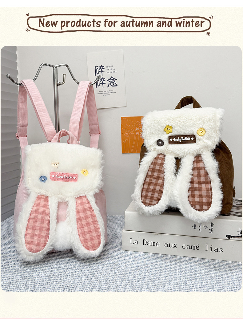 ins少女甜美风卡通书包可爱刺绣抽绳翻盖大容量双肩包女学生背包