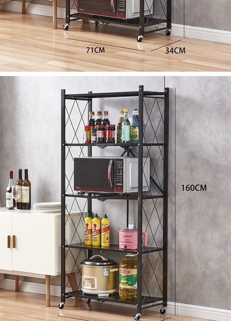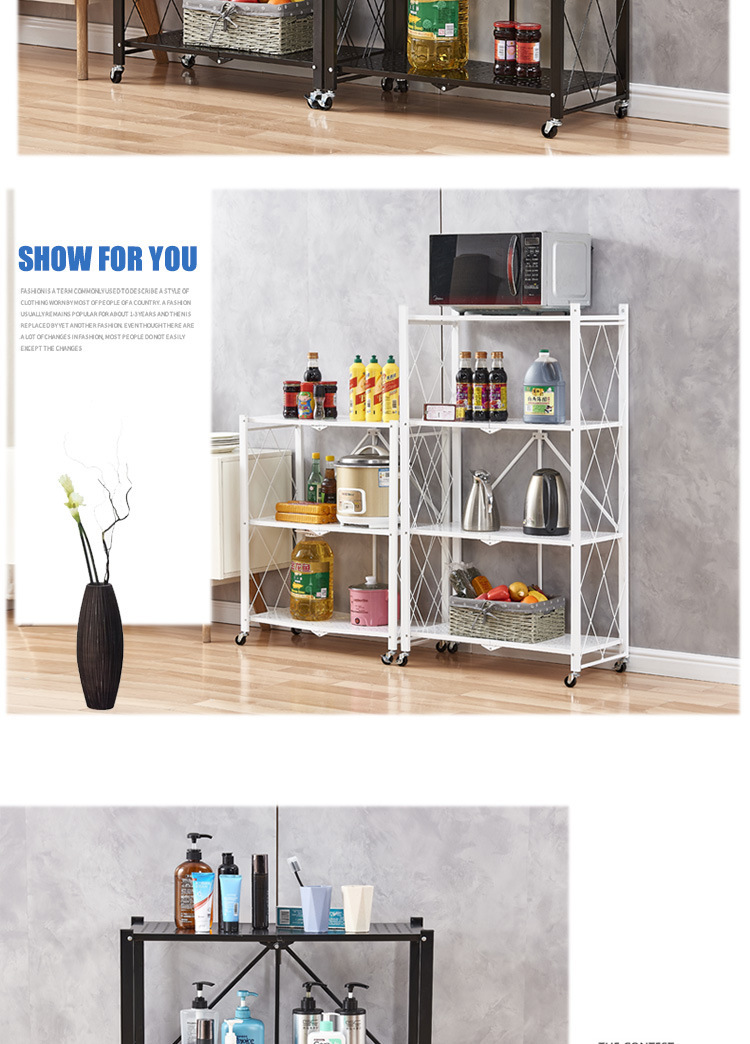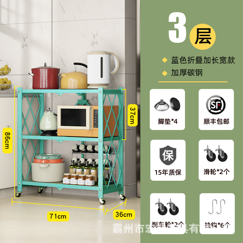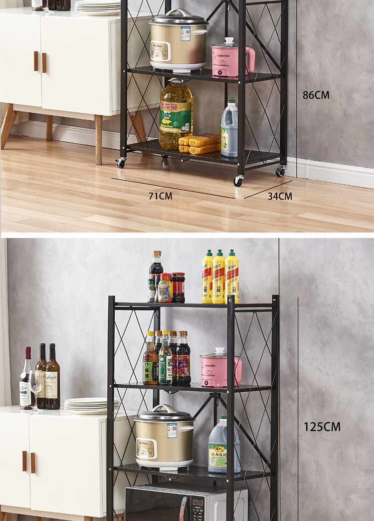厂家供应免安装折叠厨房置物架家居微波炉储物收纳架多层收纳架
