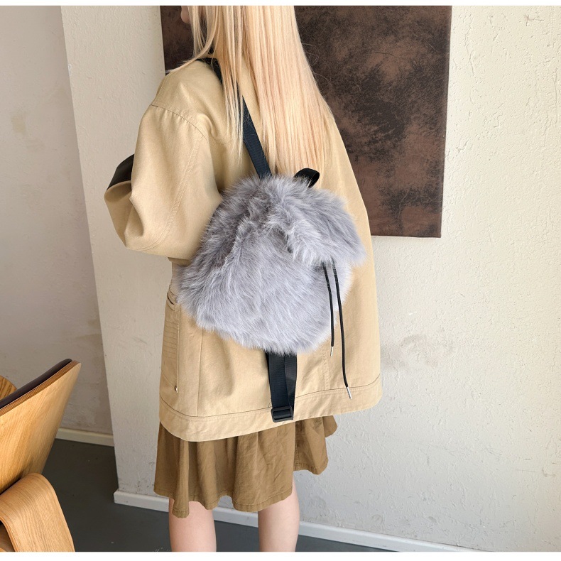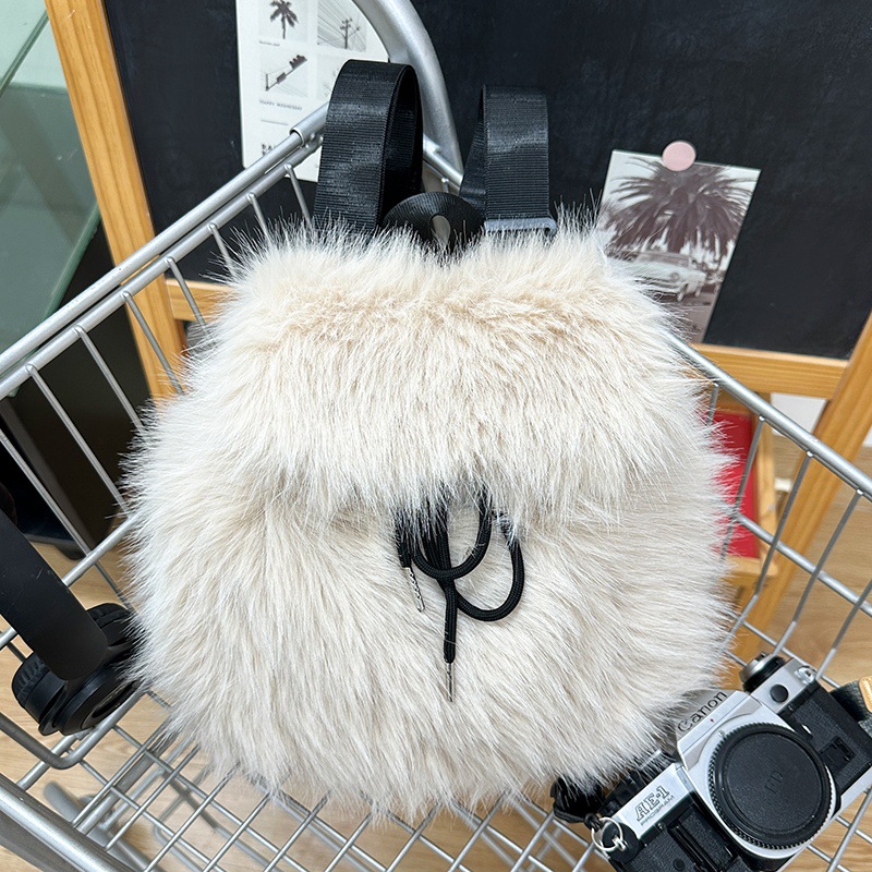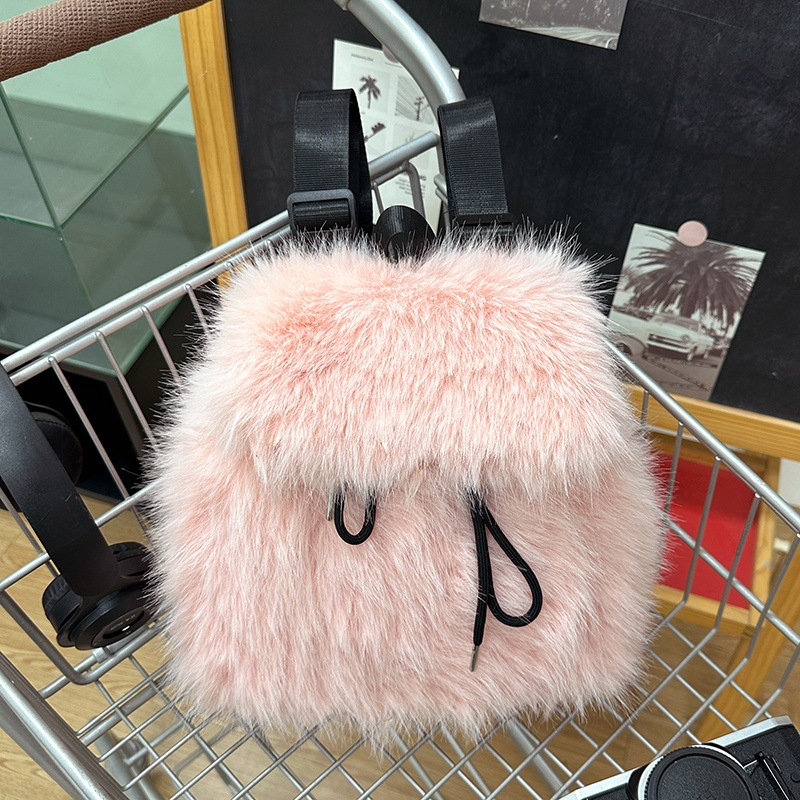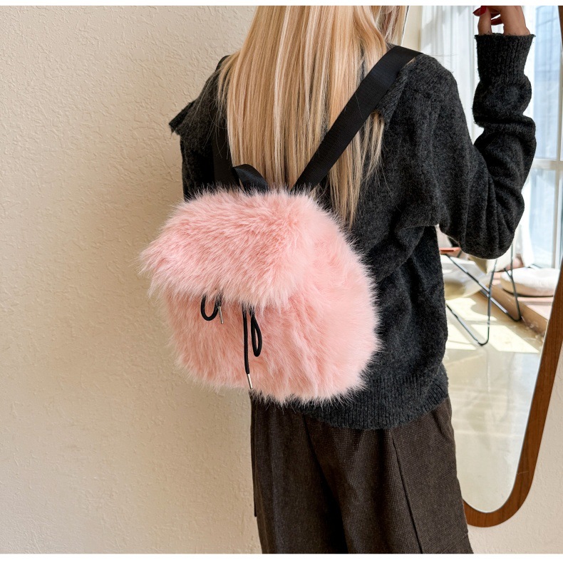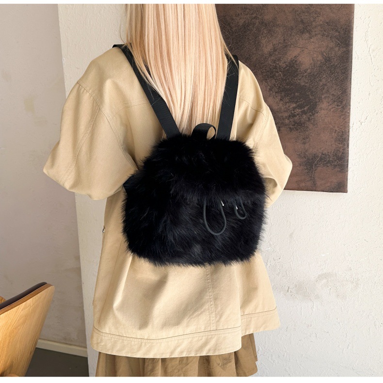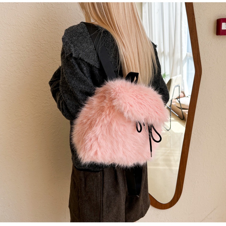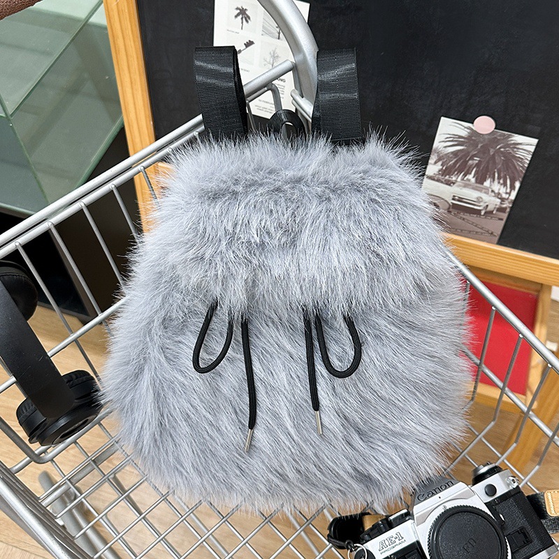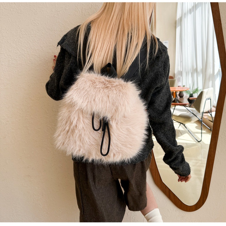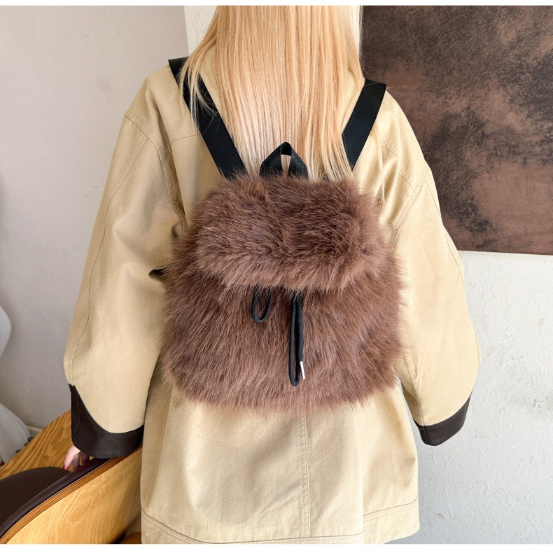 新款仿狐狸毛双肩包女大学生休闲抽绳翻盖磁扣大容量包包女