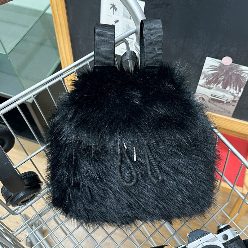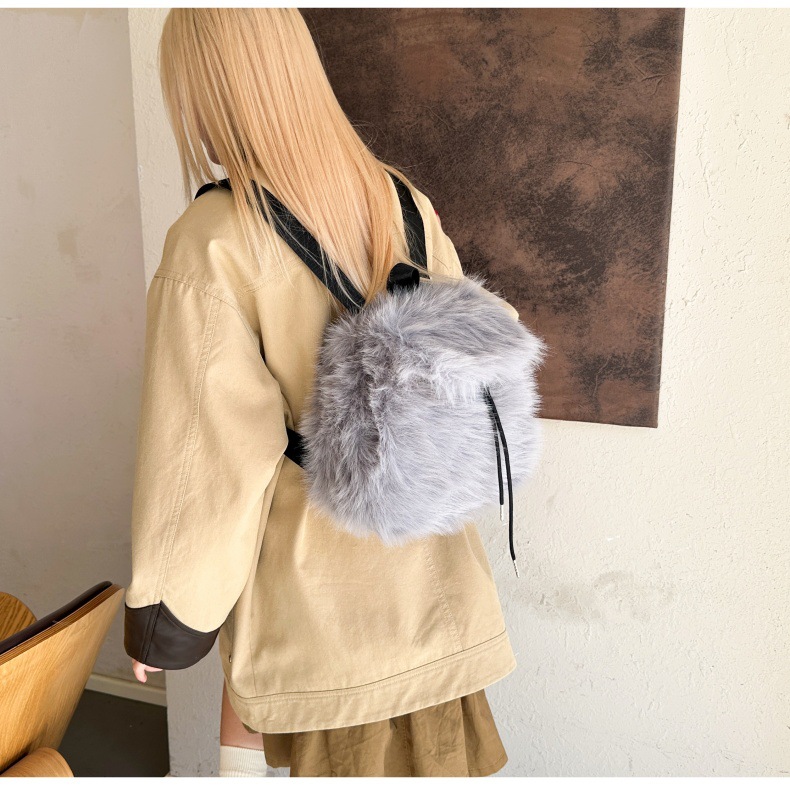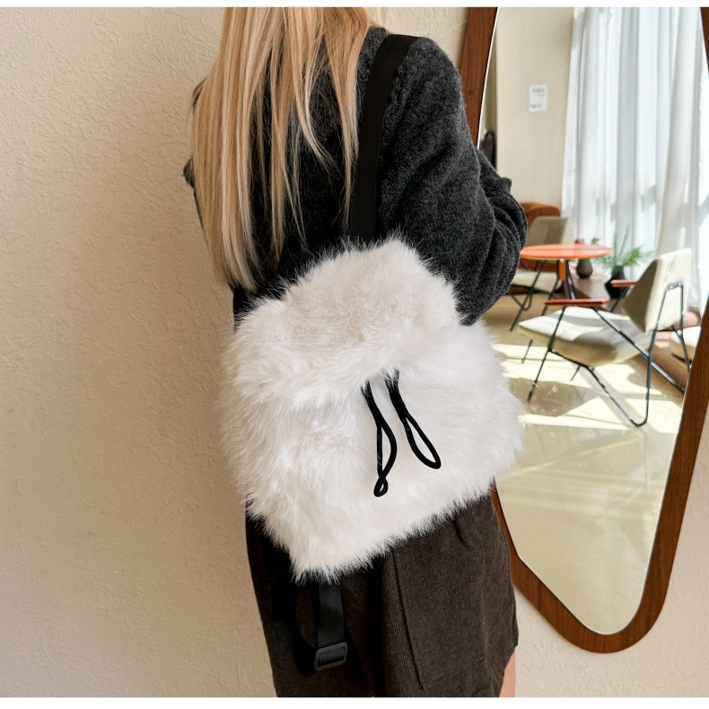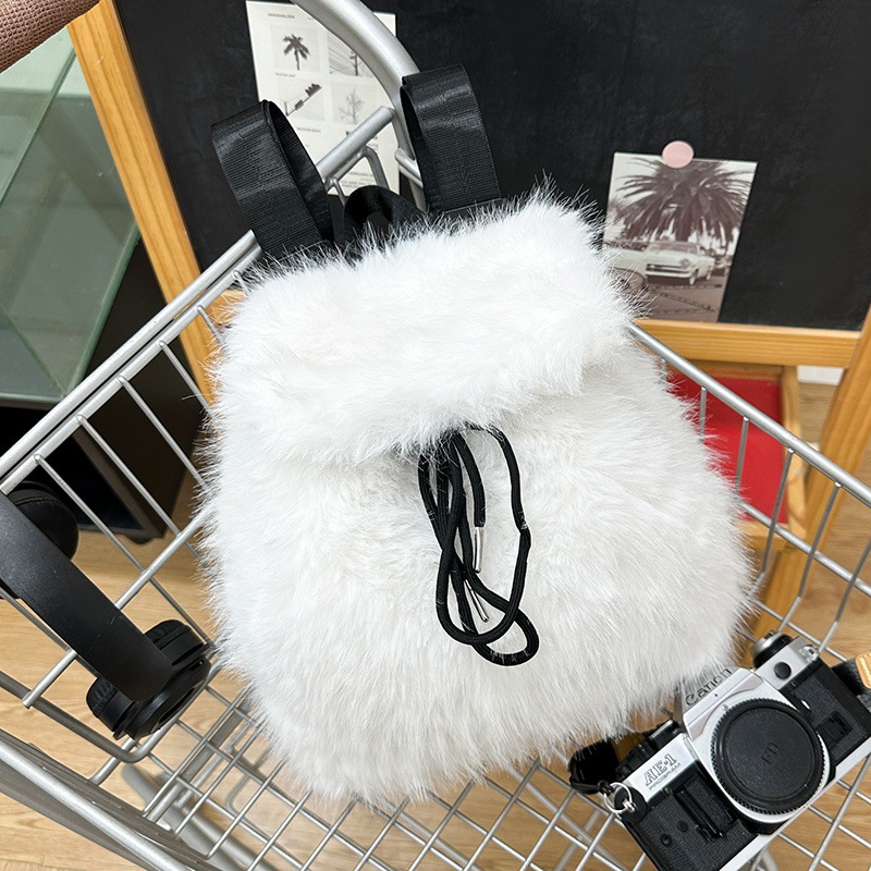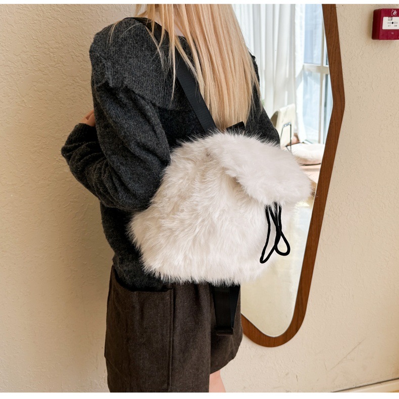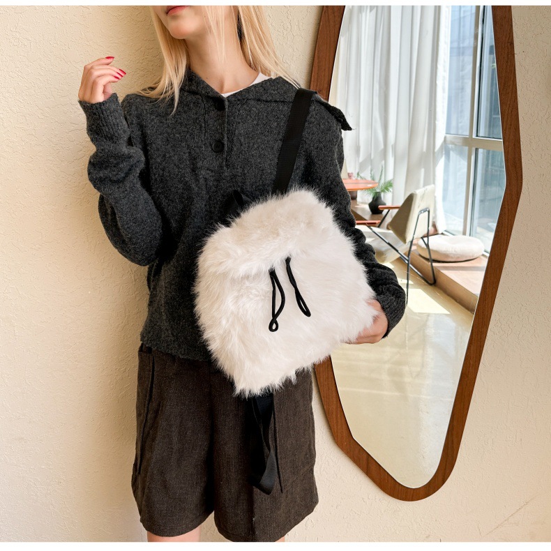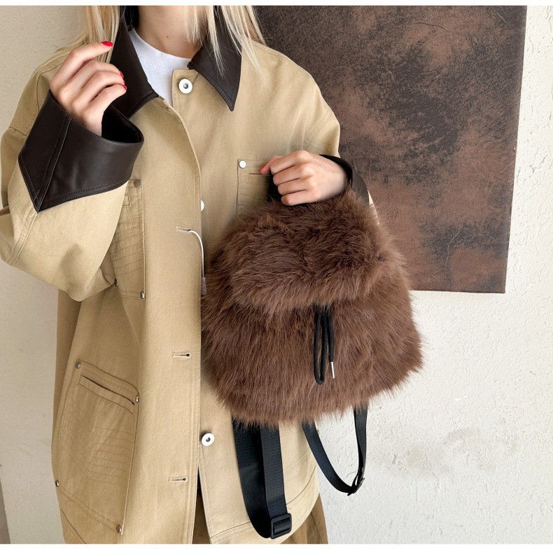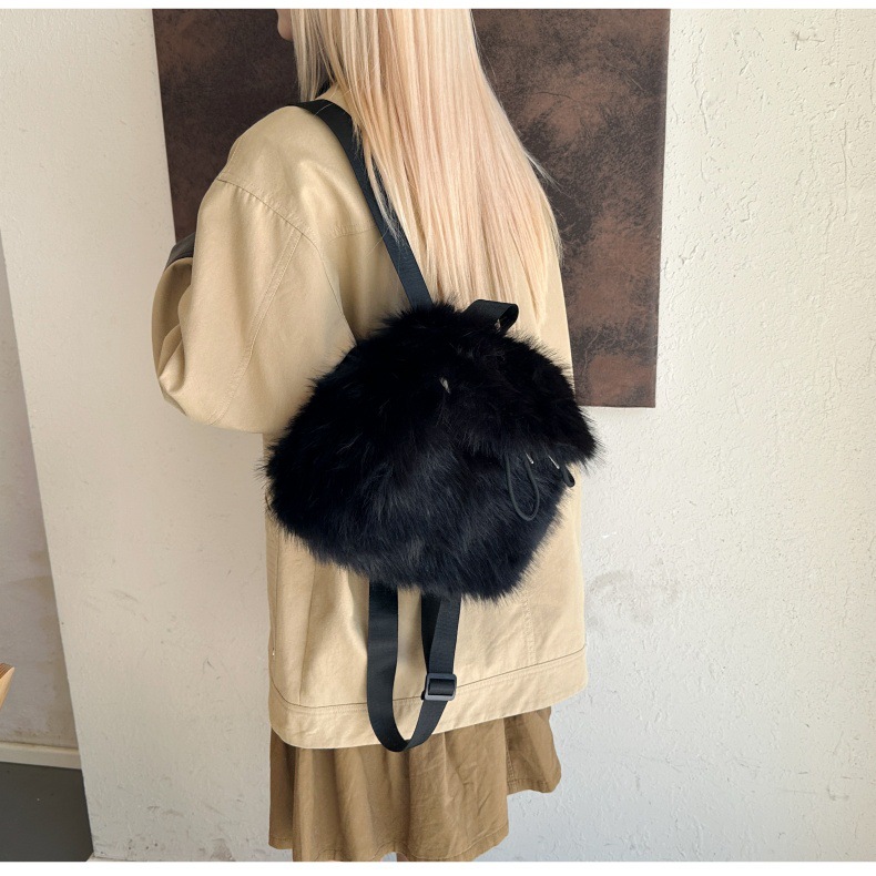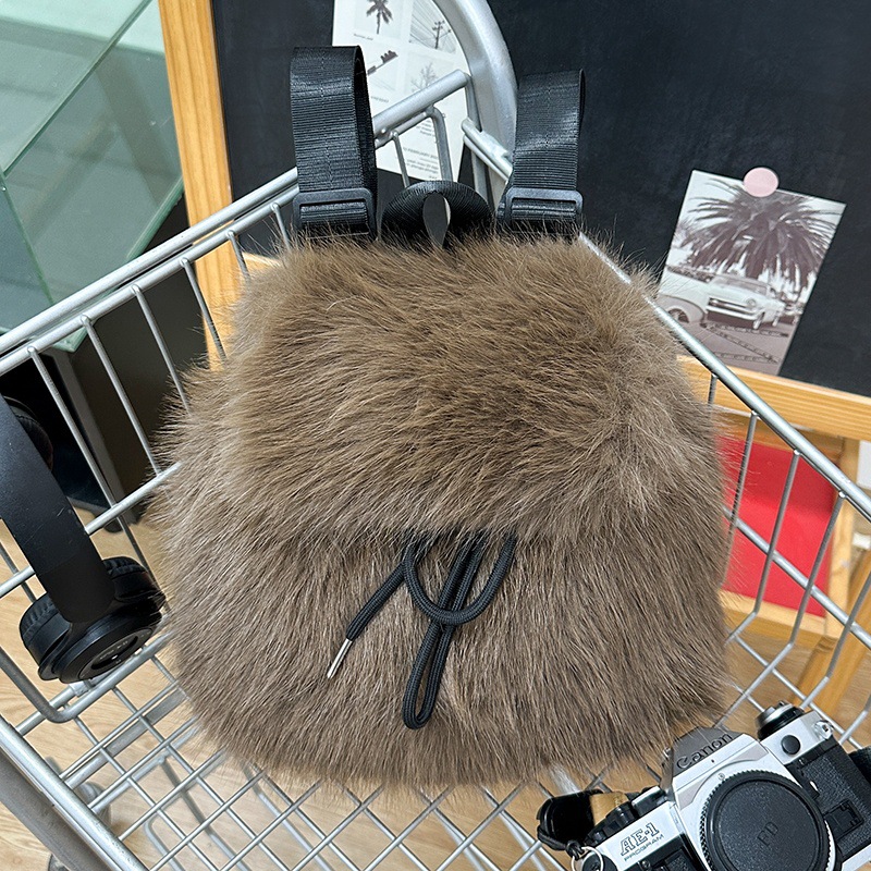 新款仿狐狸毛双肩包女大学生休闲抽绳翻盖磁扣大容量包包女